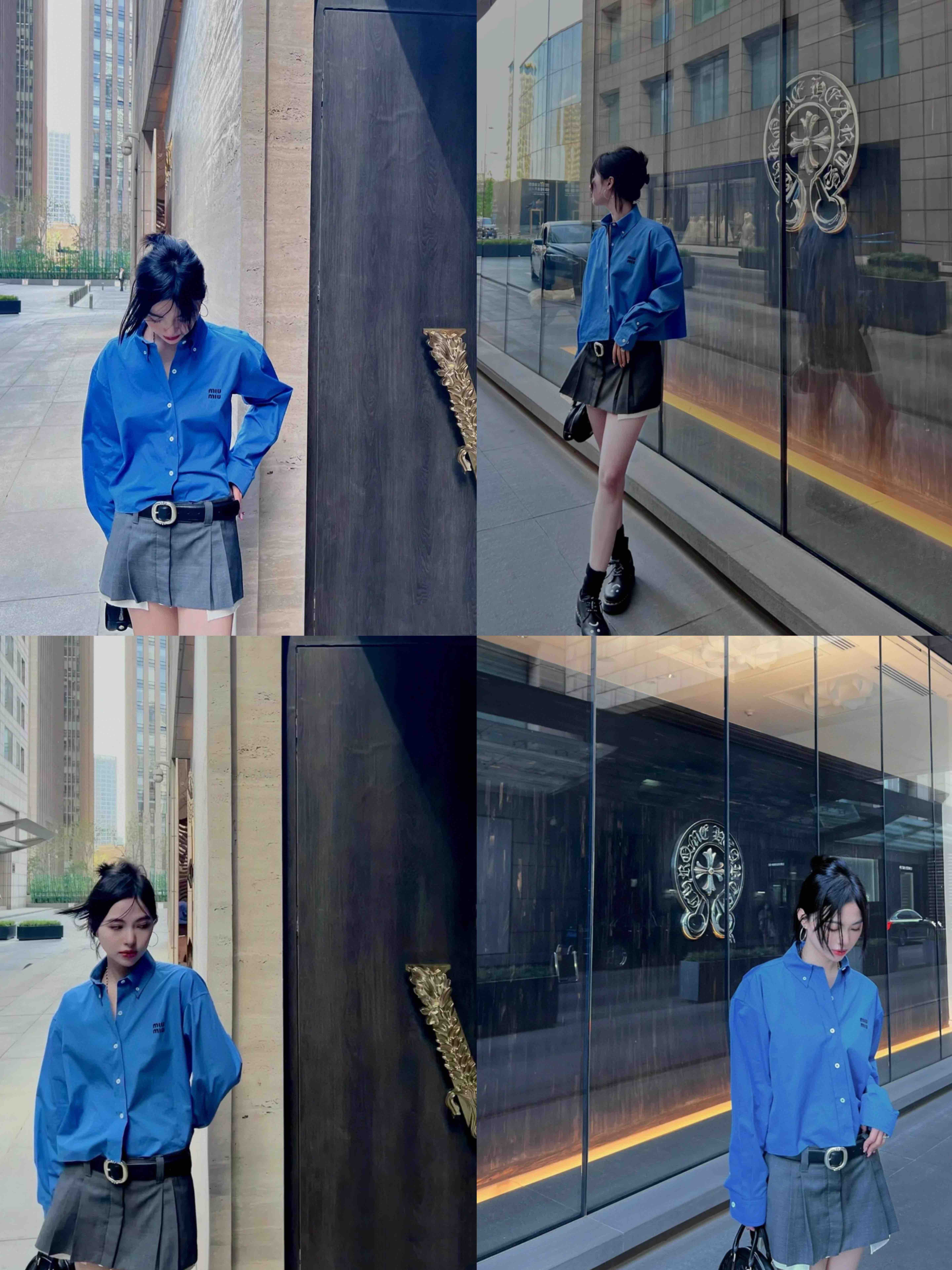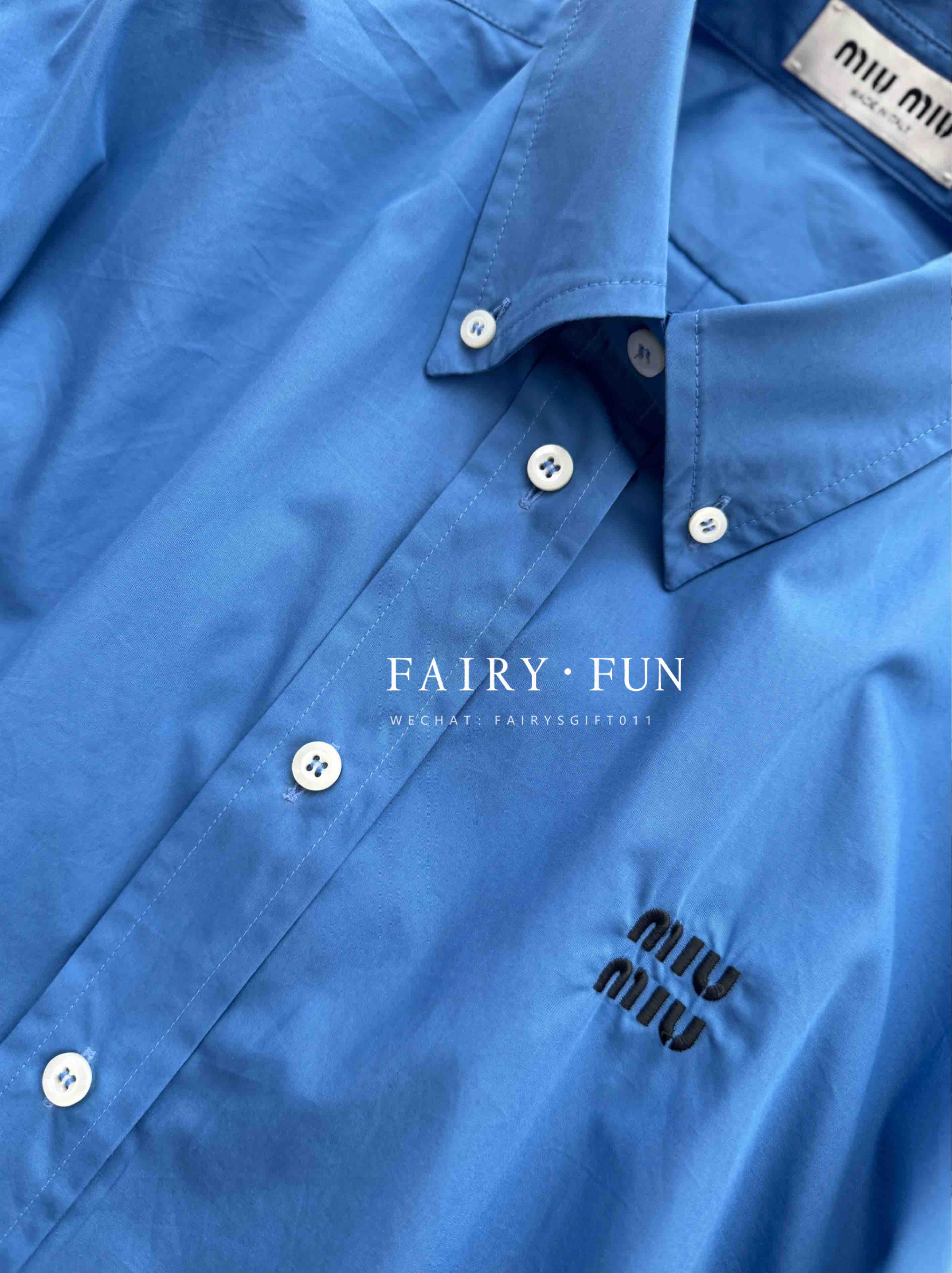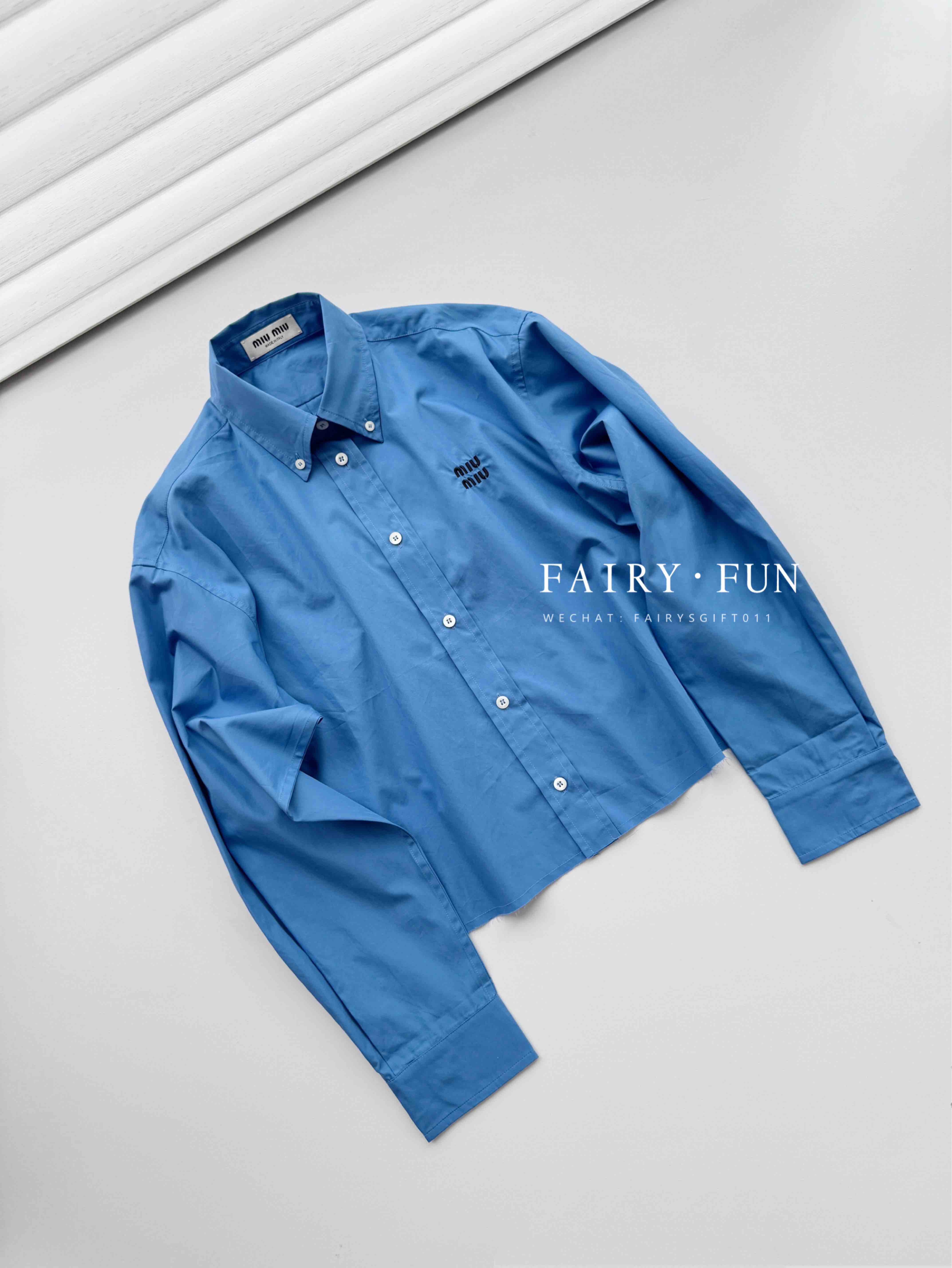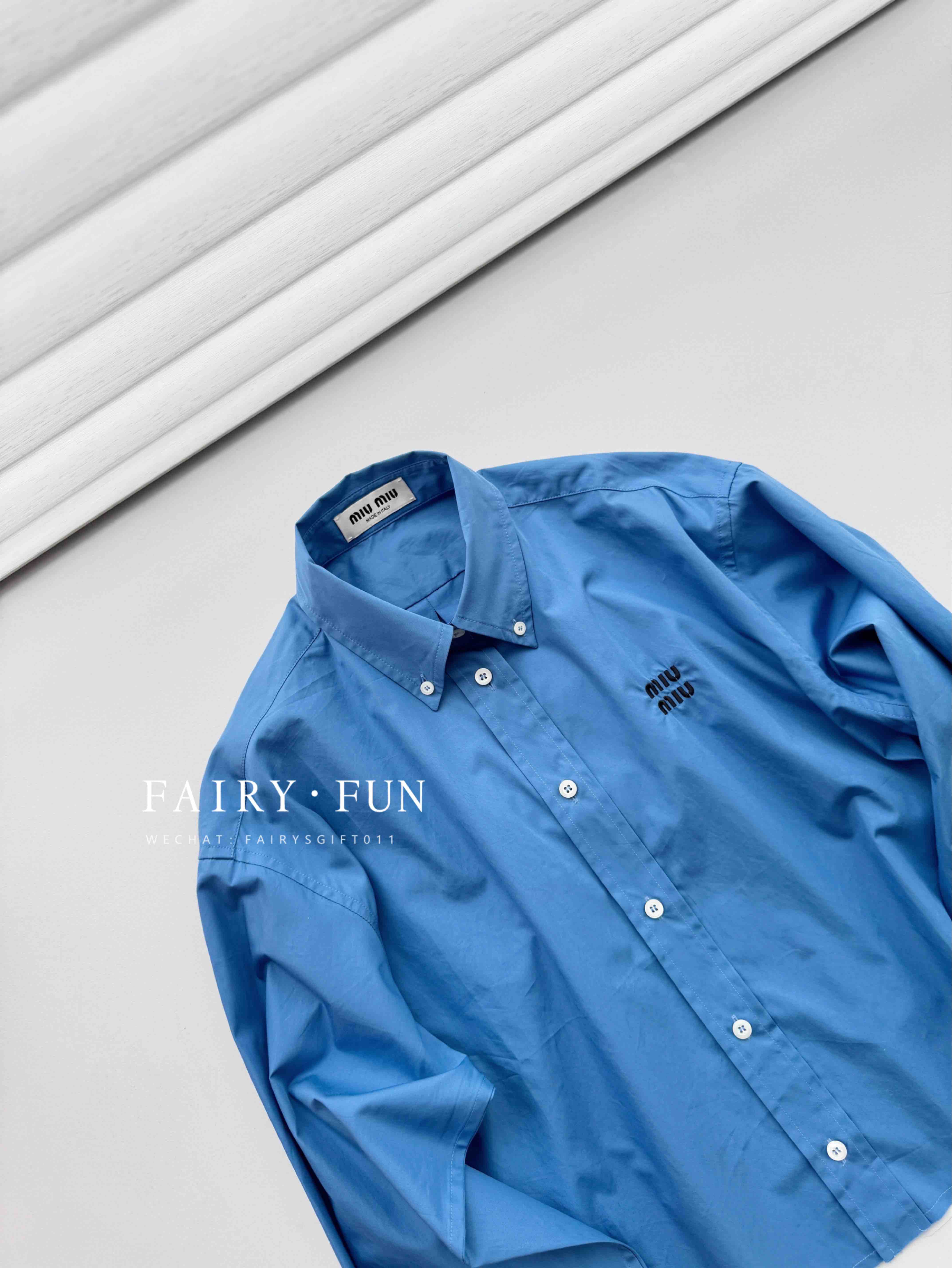 MIU-SK 字母刺绣蓝衬衫