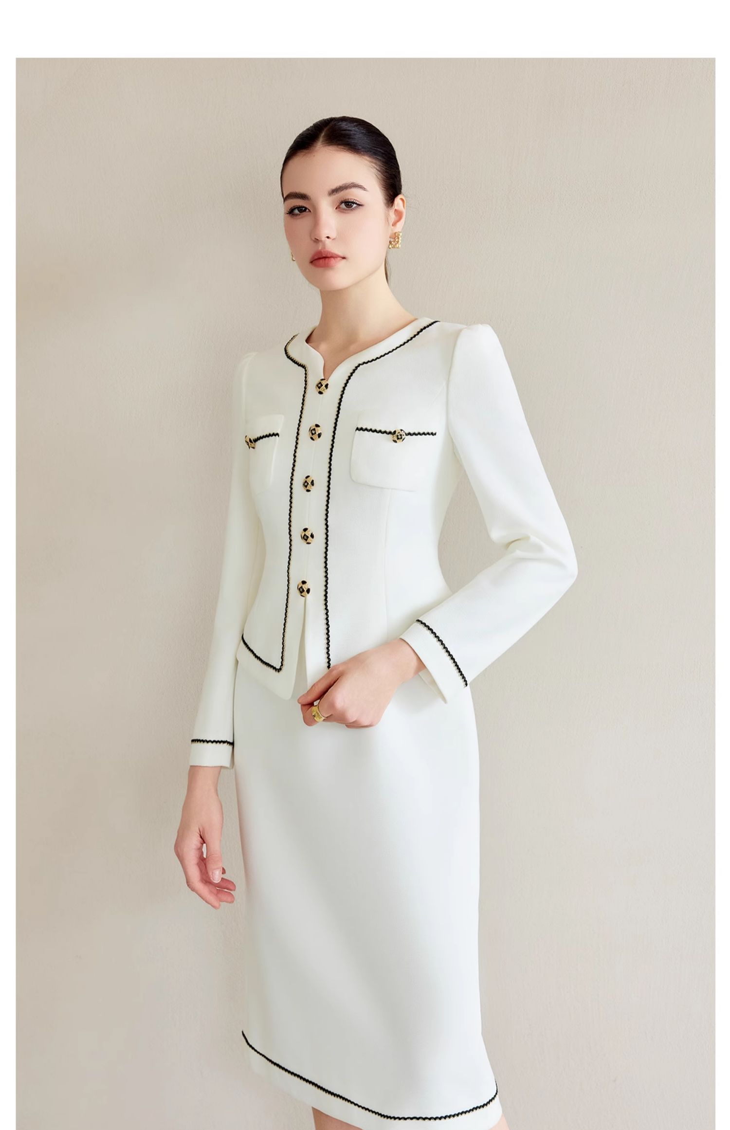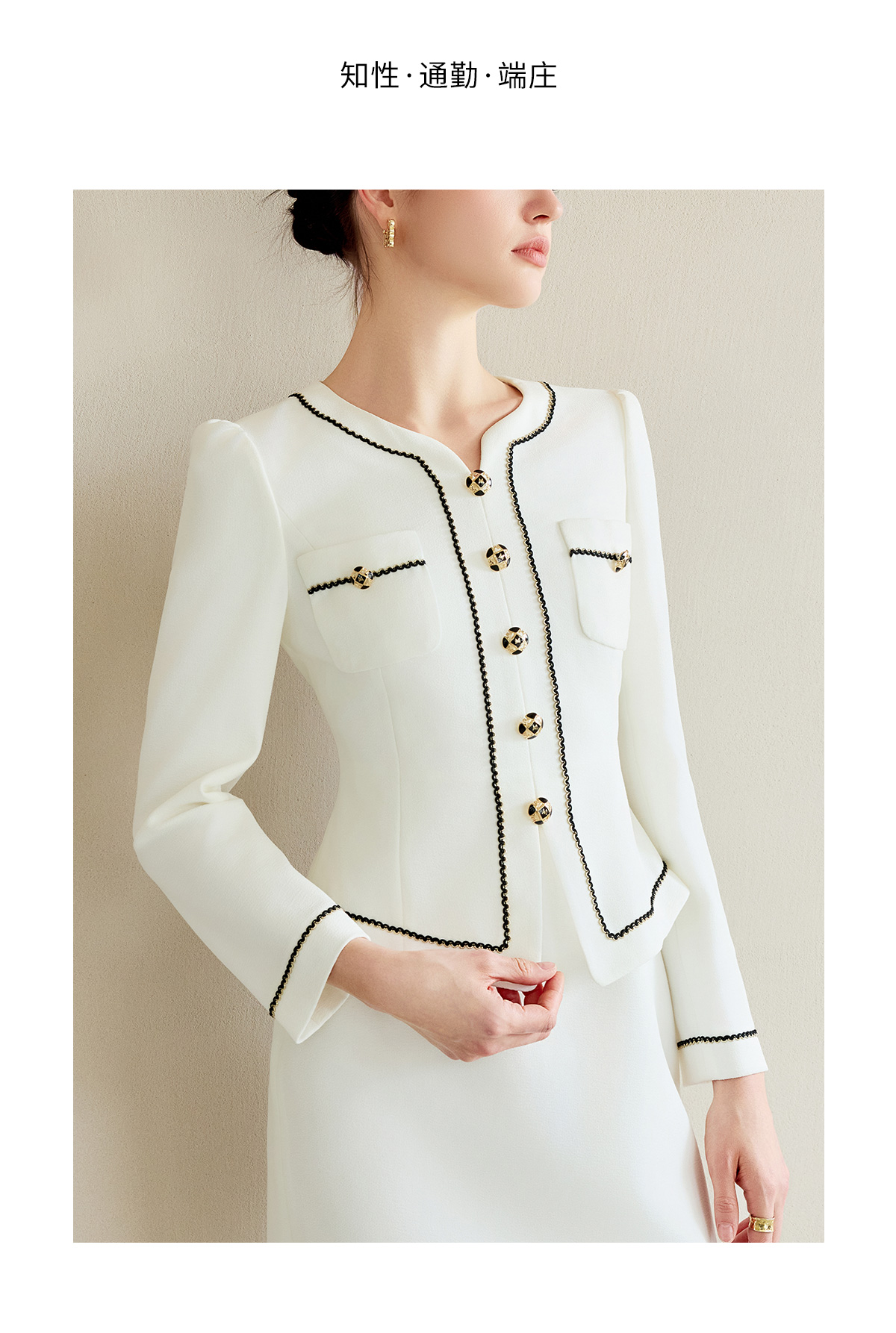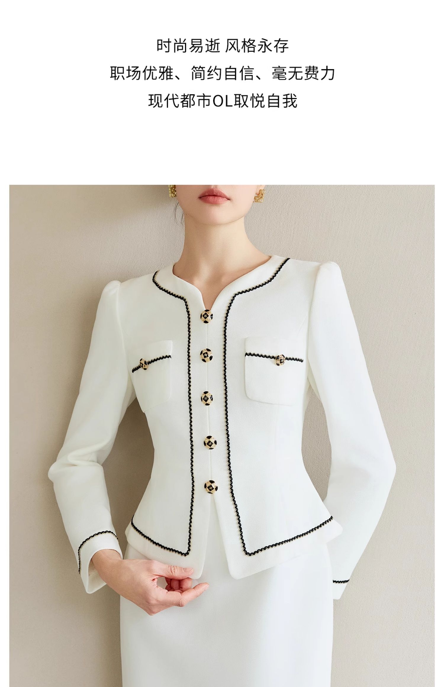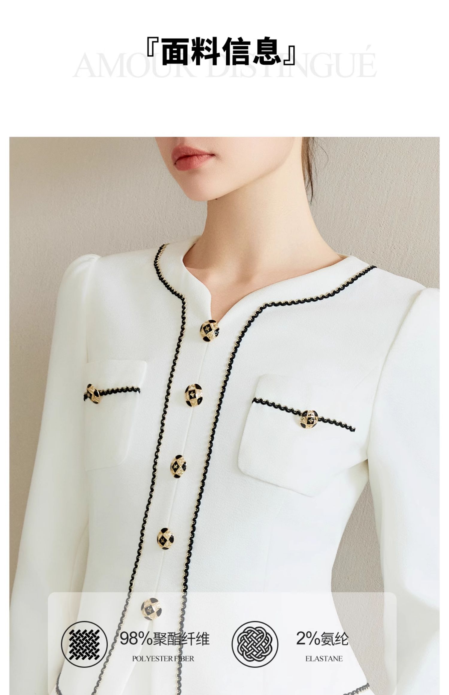 IWY/法式气质连衣裙女小香风套装新款高级感镶边小V领假两件西服裙Q1289