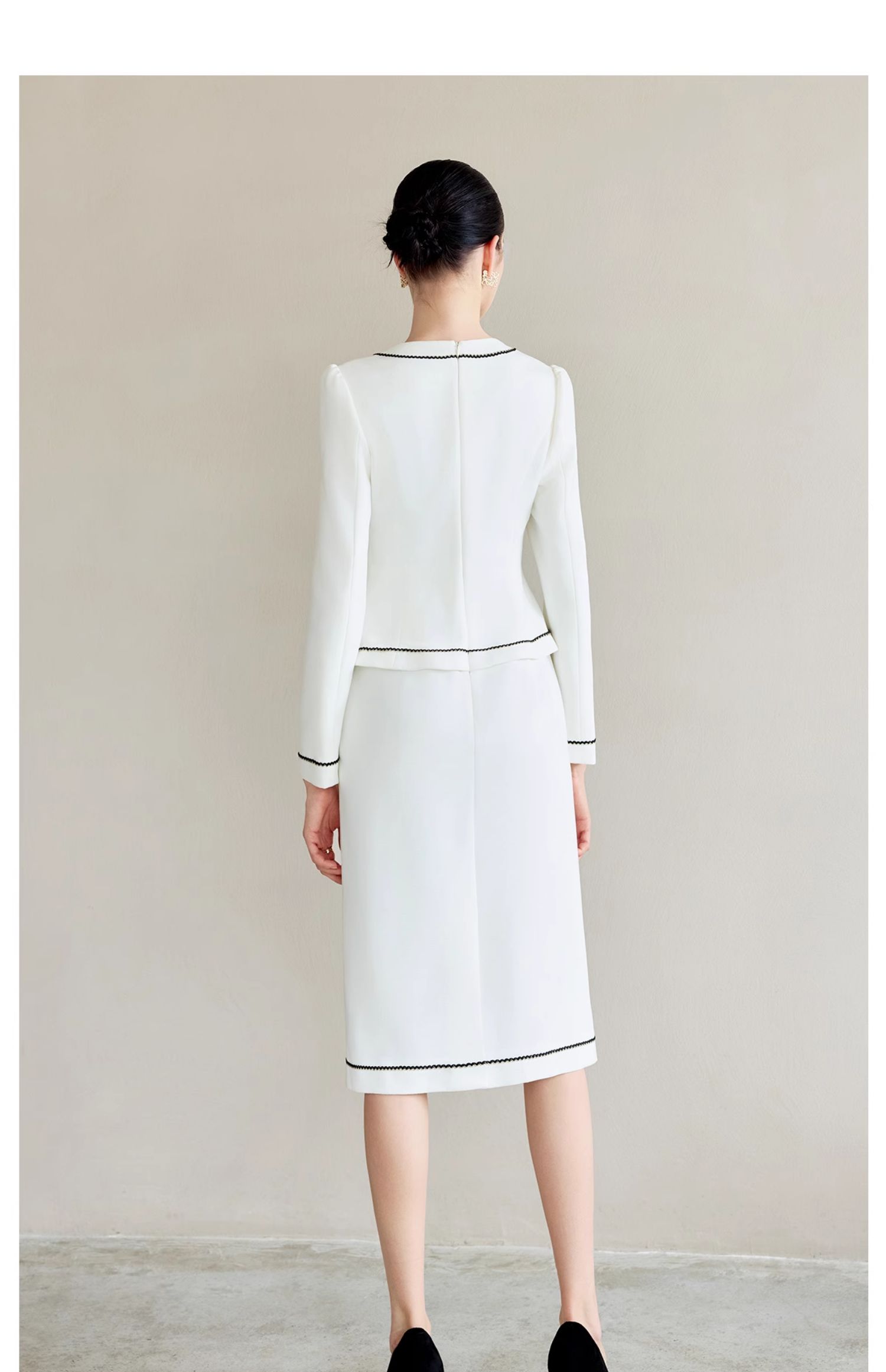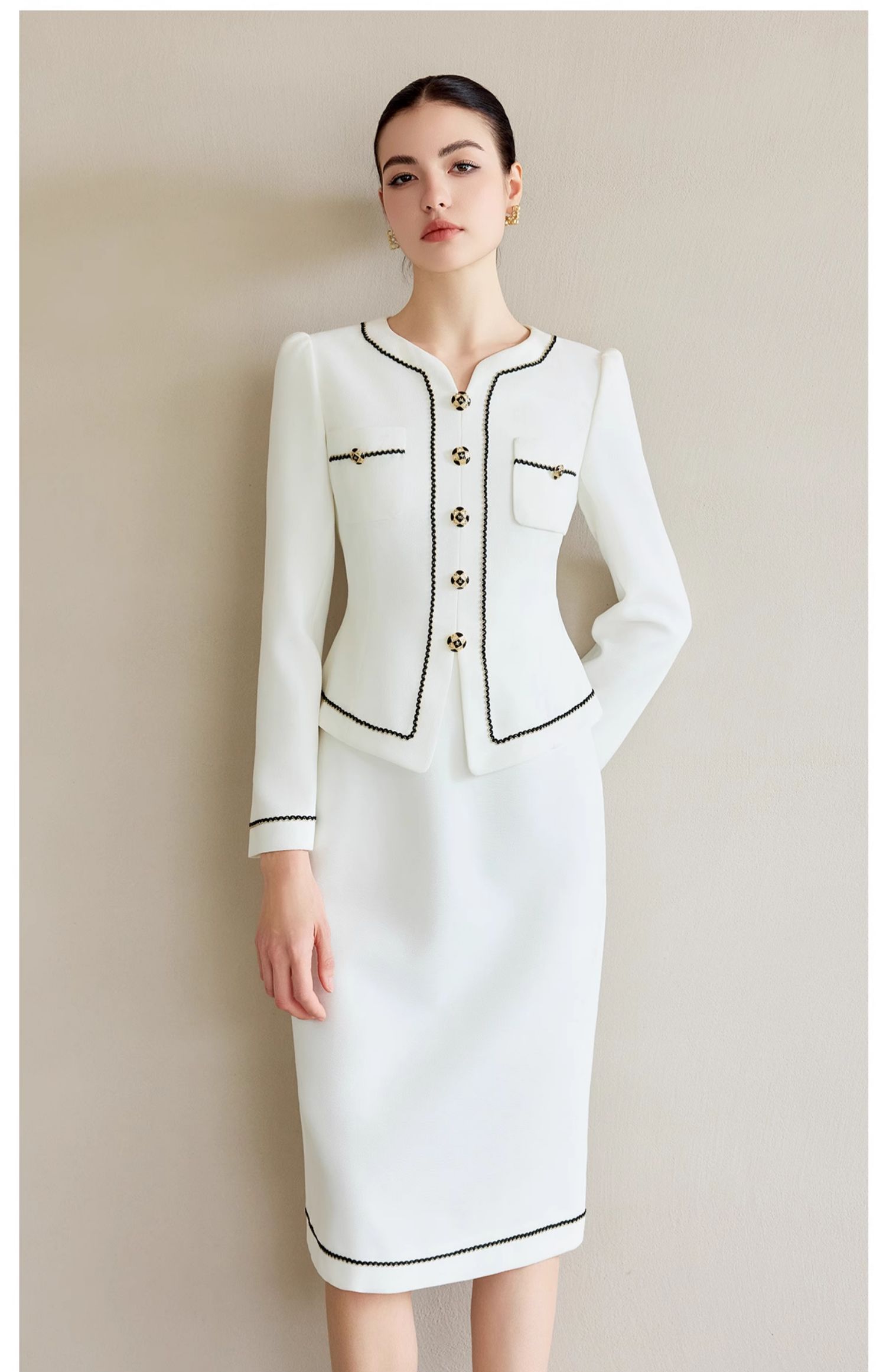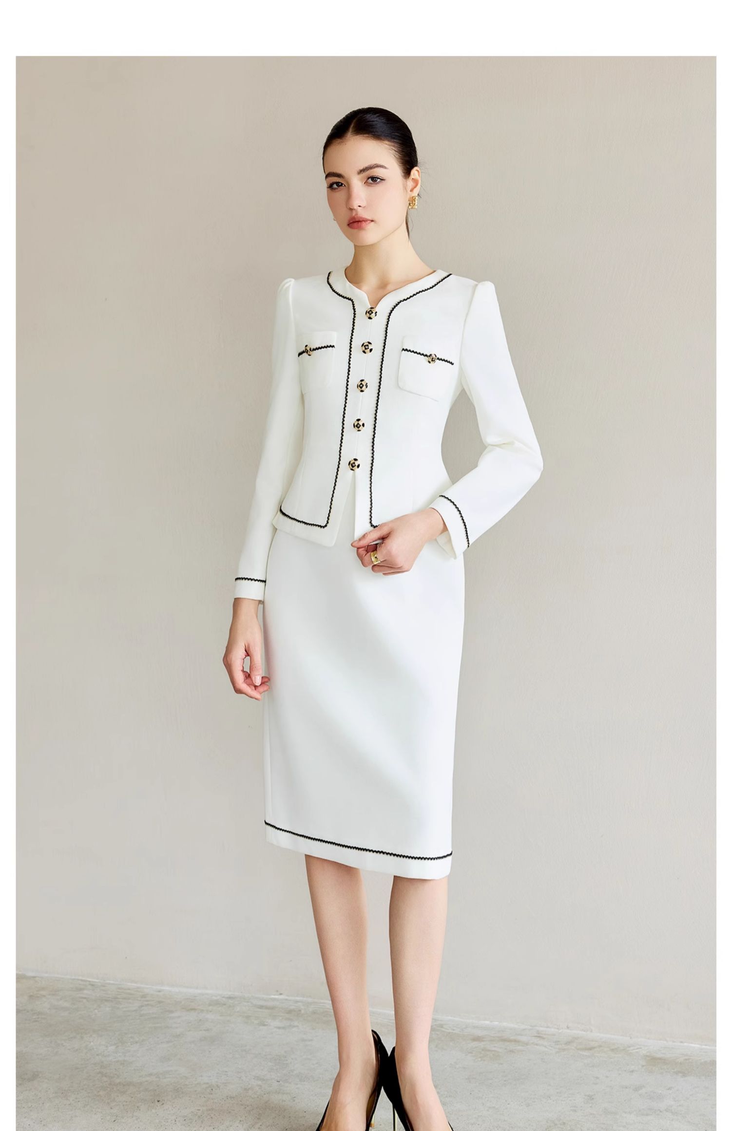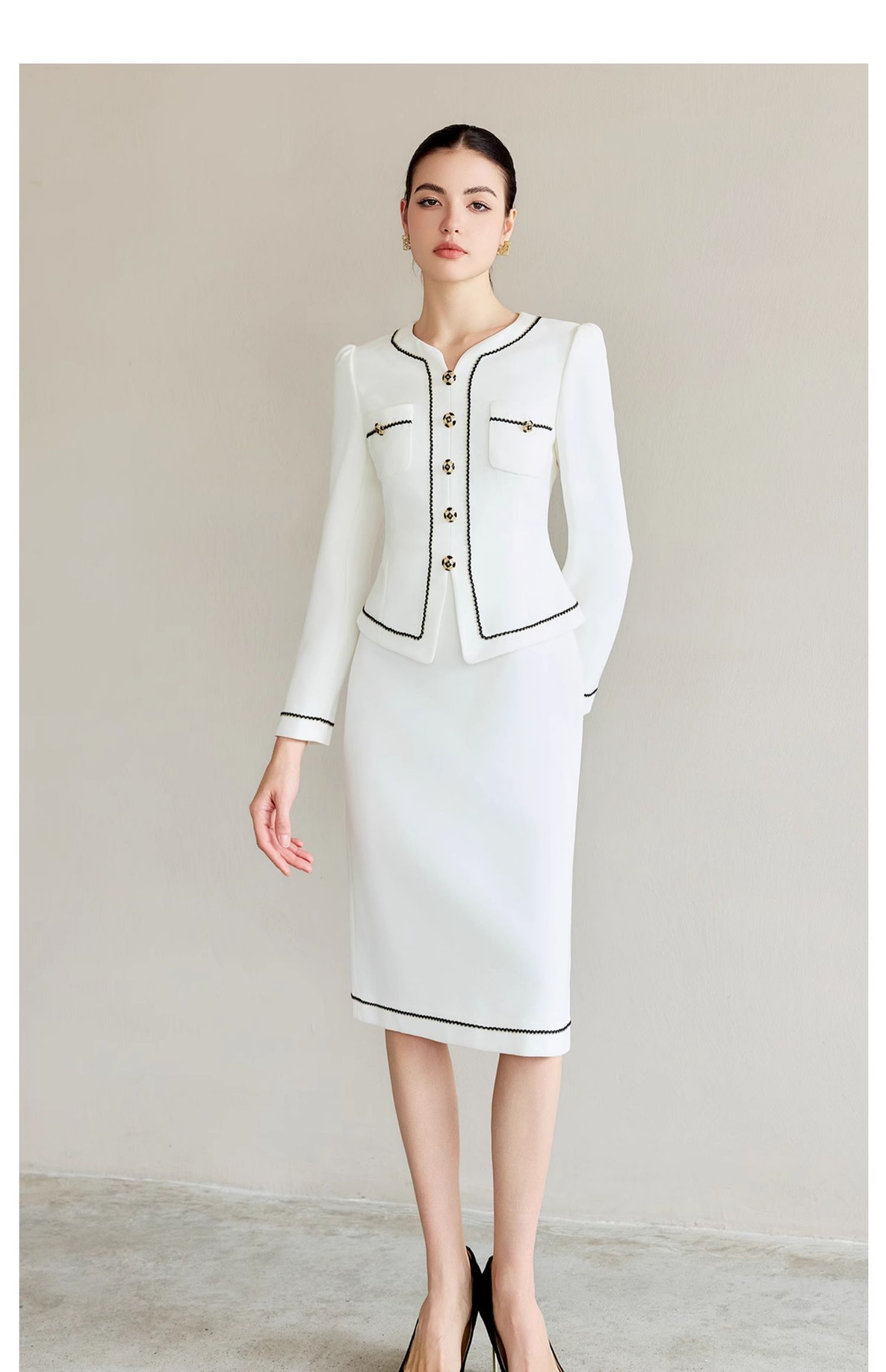 IWY/法式气质连衣裙女小香风套装新款高级感镶边小V领假两件西服裙Q1289