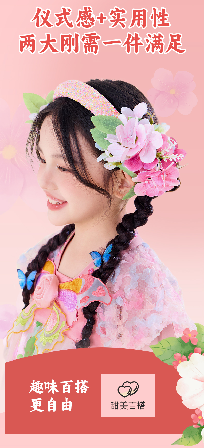 【花鼓隆咚发箍】年衣女童发箍新中式原创头饰新款儿童花花发饰花鼓隆咚发箍