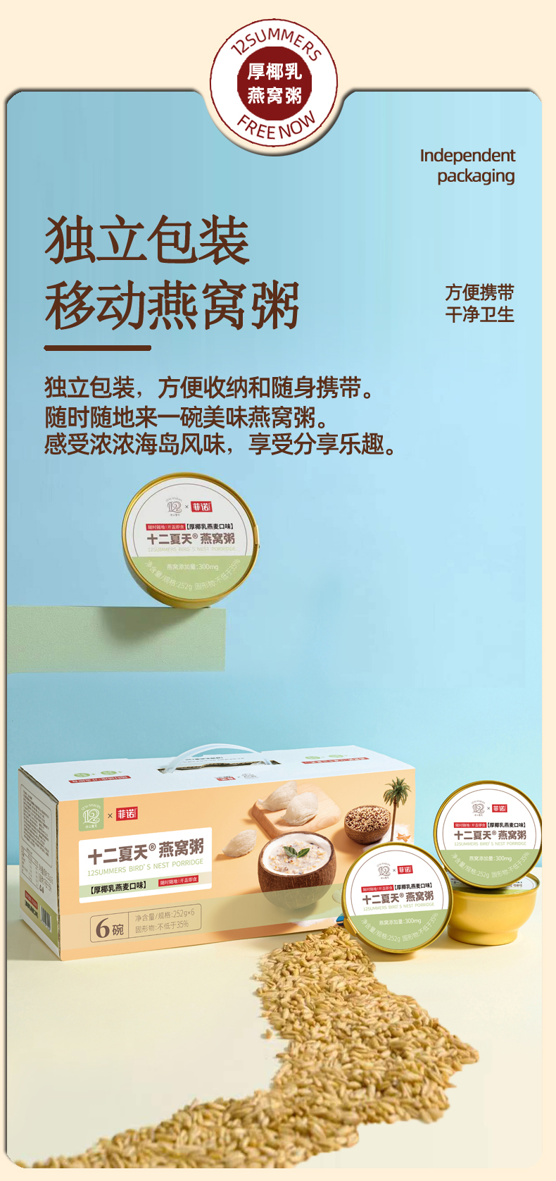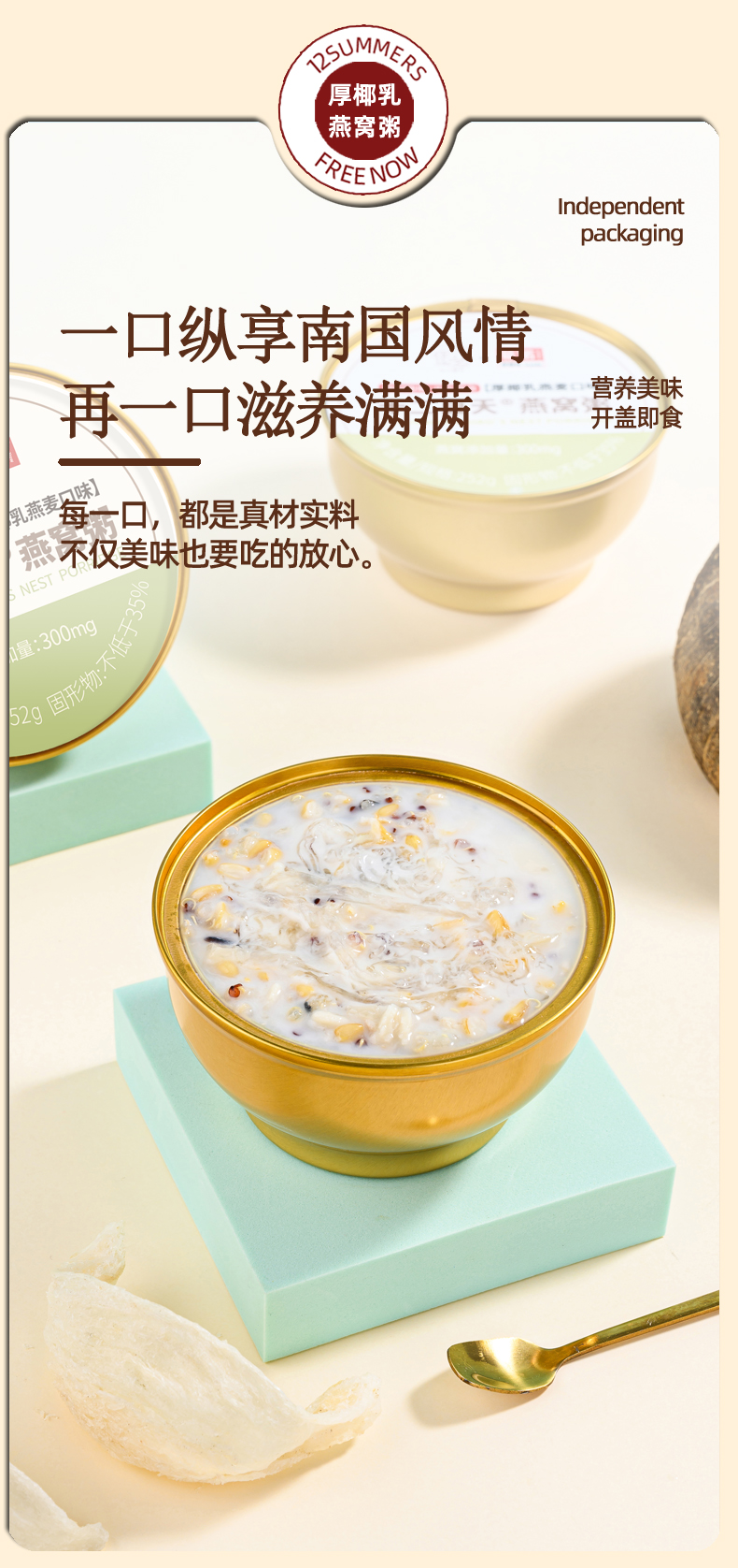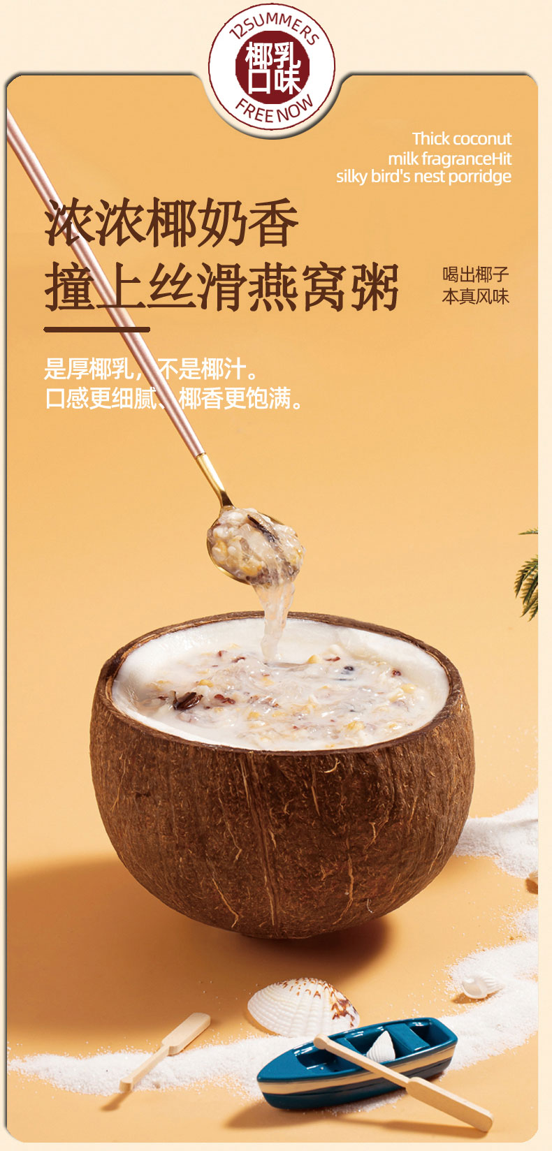 【发出后不支持拦截】十二夏天 厚椰乳燕麦燕窝粥 1512g