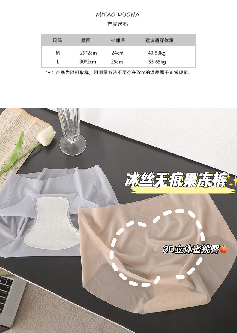 内裤6条装【蜜桃无痕超薄裸感3D艾草底裆面膜裤】立体一片式无痕中腰三角内裤女