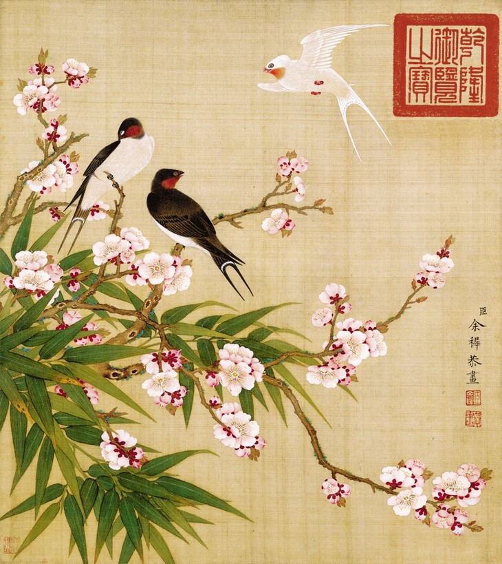 余稺---清代画家,生卒年不详。字南洲,江苏常熟人。余省弟,约于乾隆四年进宫中作画供奉内廷。工花鸟,擅院体画,别出新意。