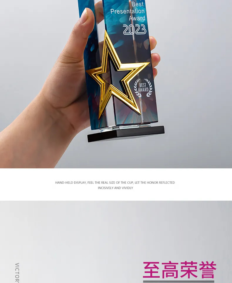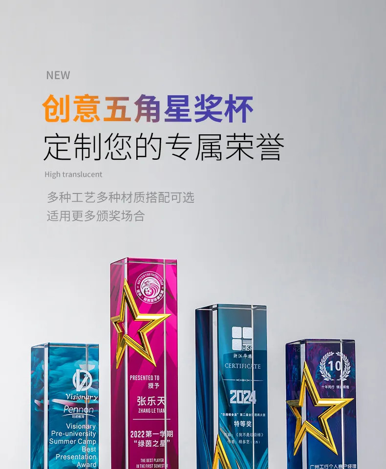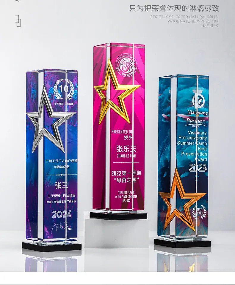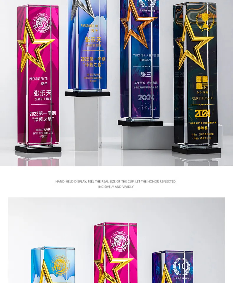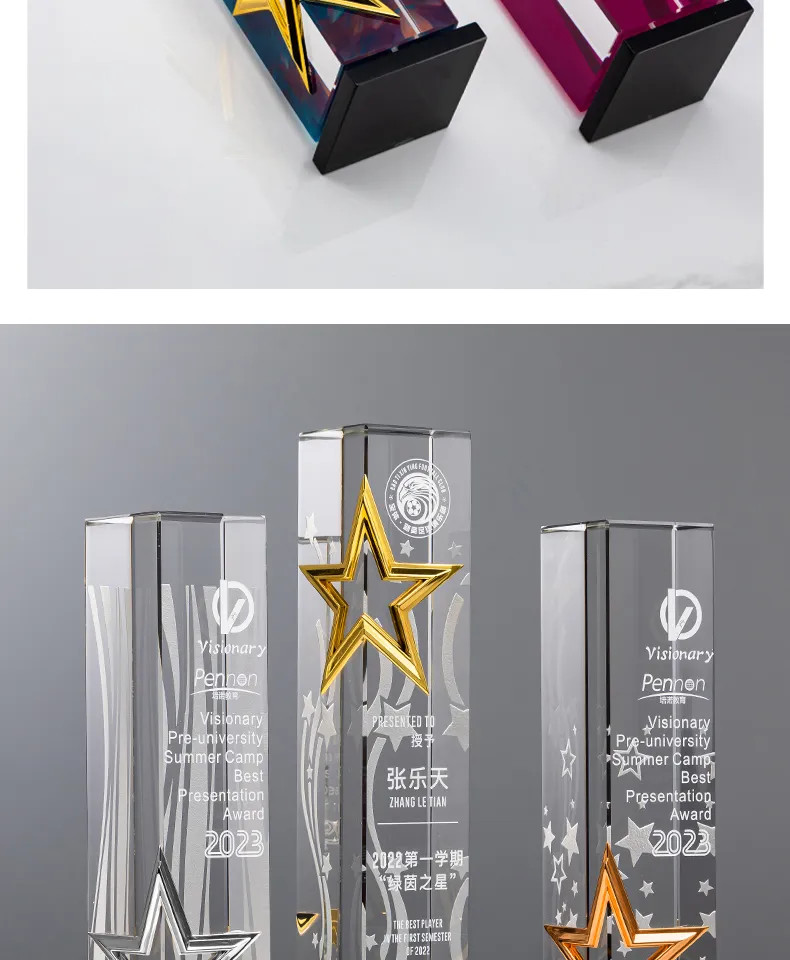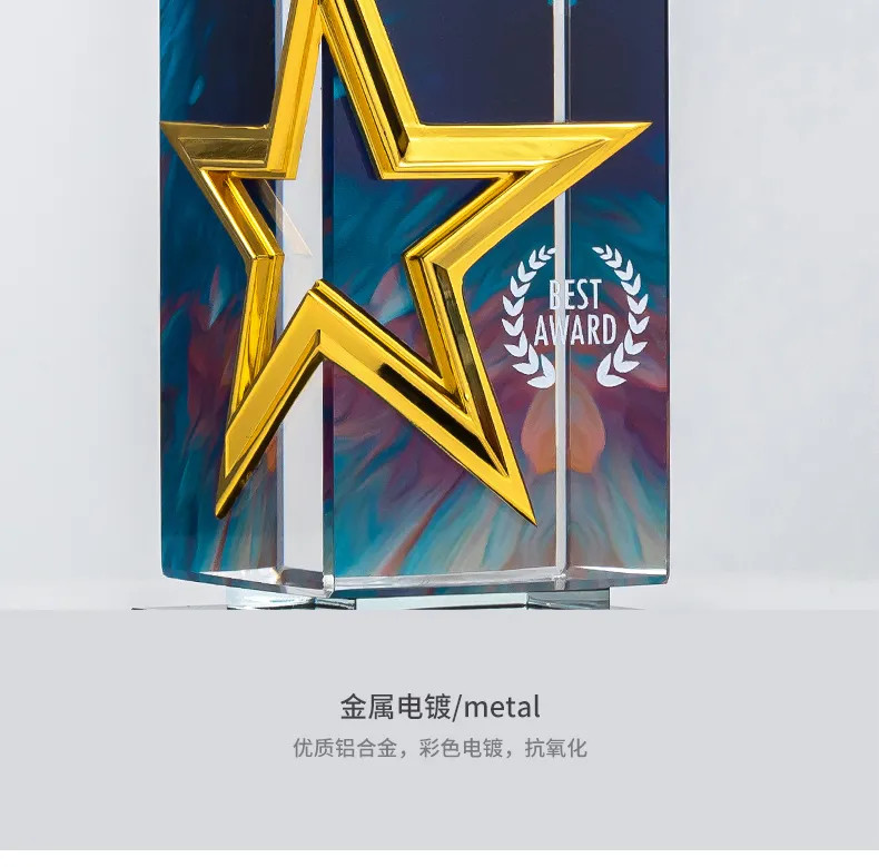 属五角星奖杯定制高档水晶刻字年度颁奖优秀员工荣誉纪念品
