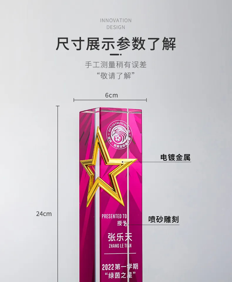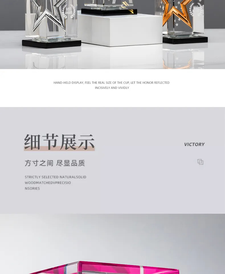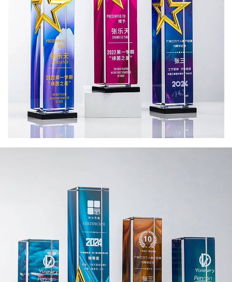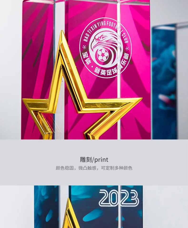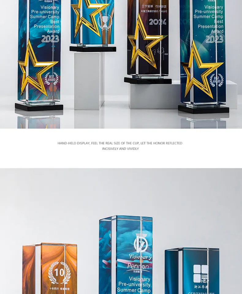 属五角星奖杯定制高档水晶刻字年度颁奖优秀员工荣誉纪念品