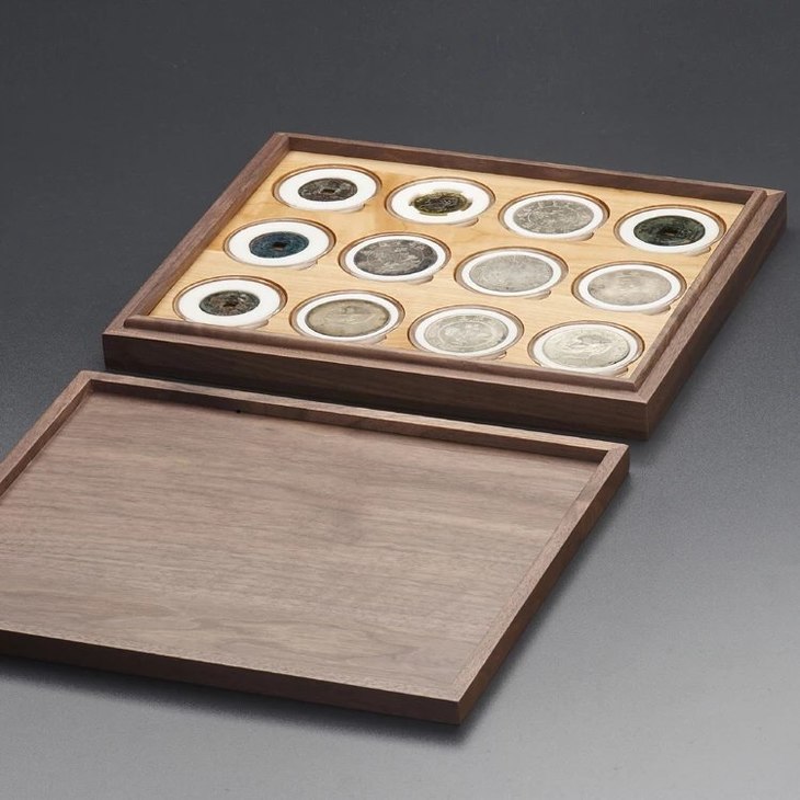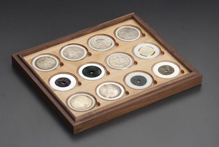 黑胡桃(枫木)单层实木托盘(12枚52mm圆盒)
