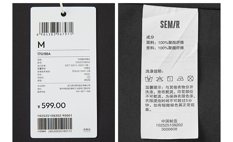 防护外套|商场同款森马冲锋衣男防雨防风夹克情侣款2025秋季新款