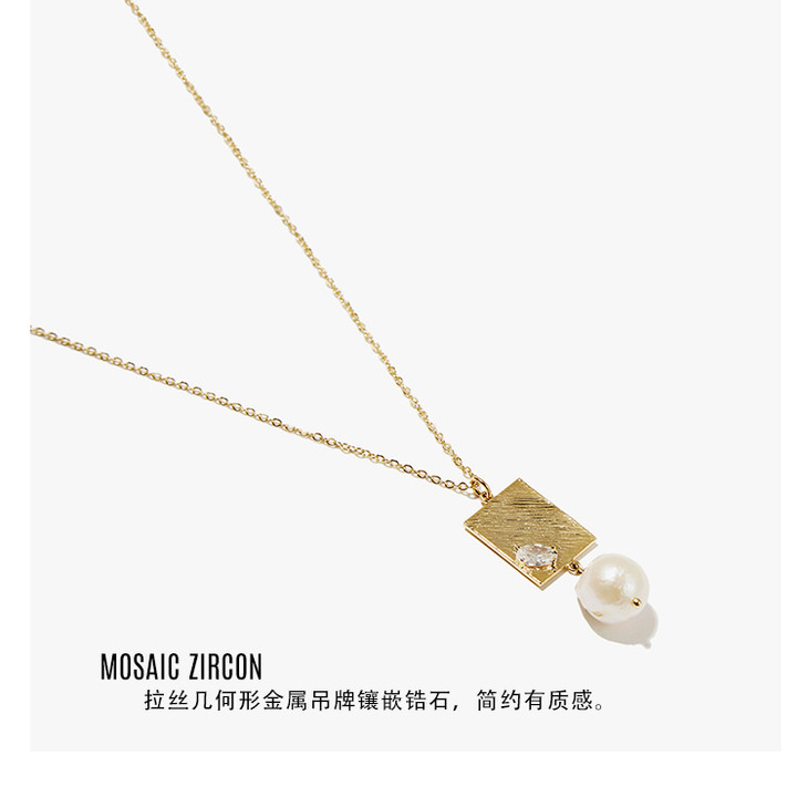 设计师lost in echo 巴洛克珍珠锆石金属吊牌叠戴项链