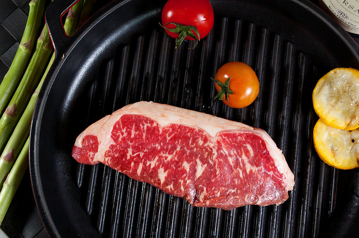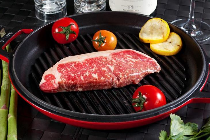 澳洲和牛是当今世界公认的品质非常优秀的良种肉牛。它自日本引入澳洲牧场饲养,在纯天然的大自然环境中,通过严格控制饮水和谷物饲料的摄入,使得肉质多汁细嫩、脂香四溢,富含不飽和脂肪酸,可谓是牛肉中的精品。用双立人staub珐琅烤盘煎,格子花纹漂亮,口味更佳!