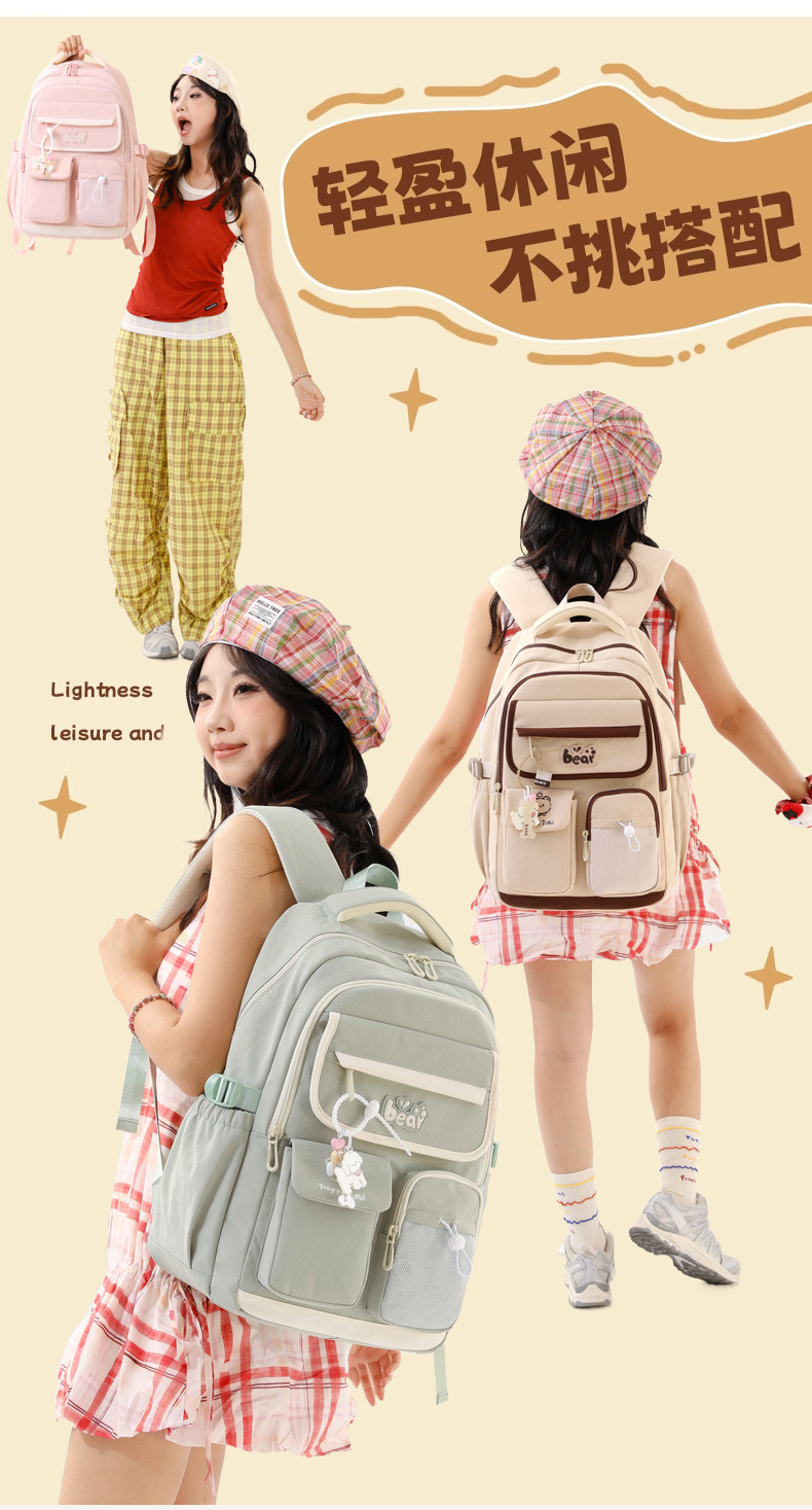 2025新款学生双肩包 大容量减负护脊中学生书包初中青少年背包