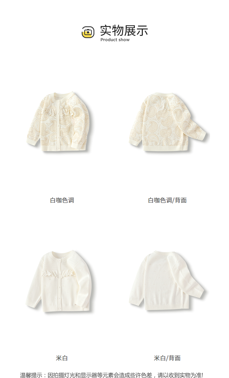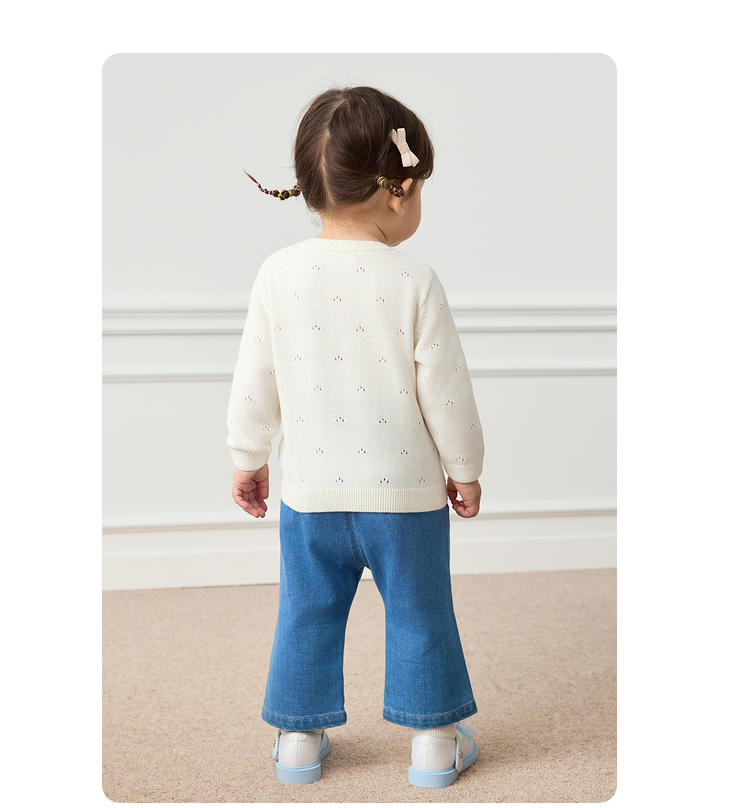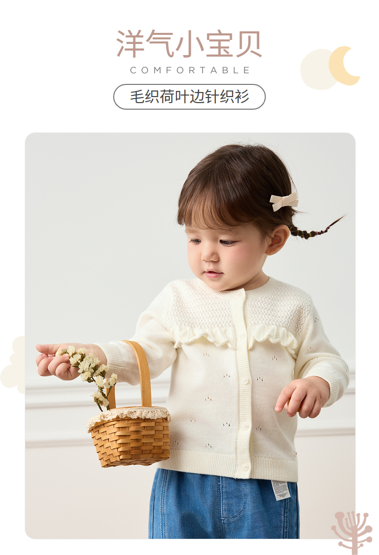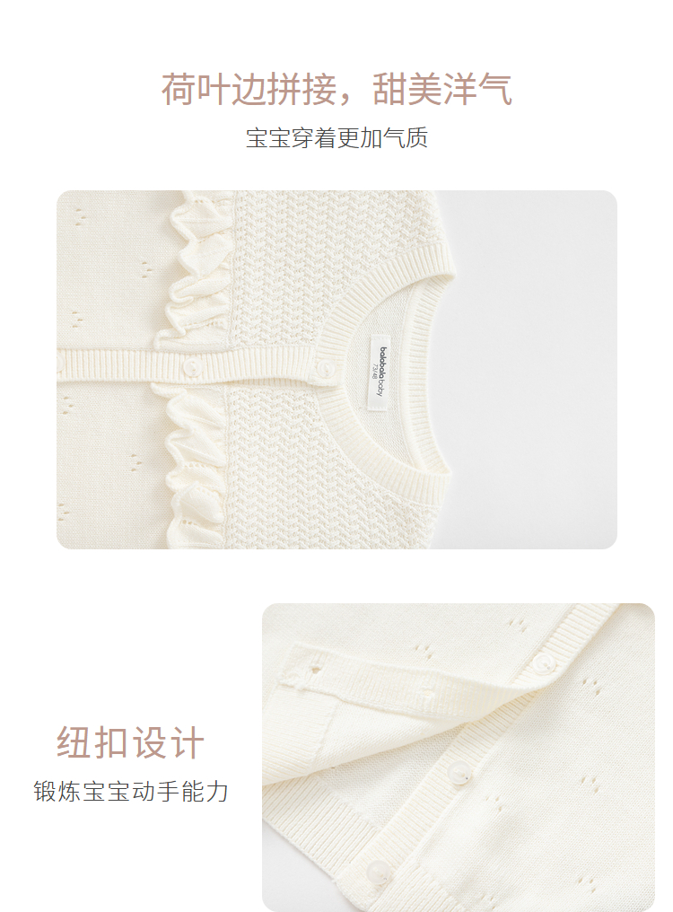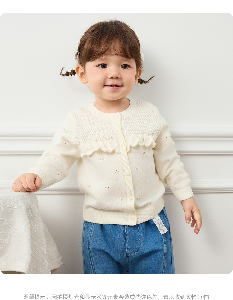 巴拉巴拉宝宝毛衣婴儿针织衫薄开衫女童秋装木耳边拼接甜美气质潮