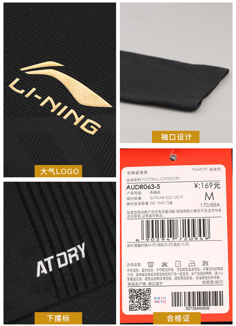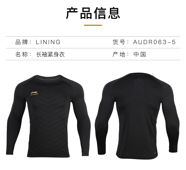 Lining/李宁足球运动休闲长袖训练紧身衣男AUDR0635