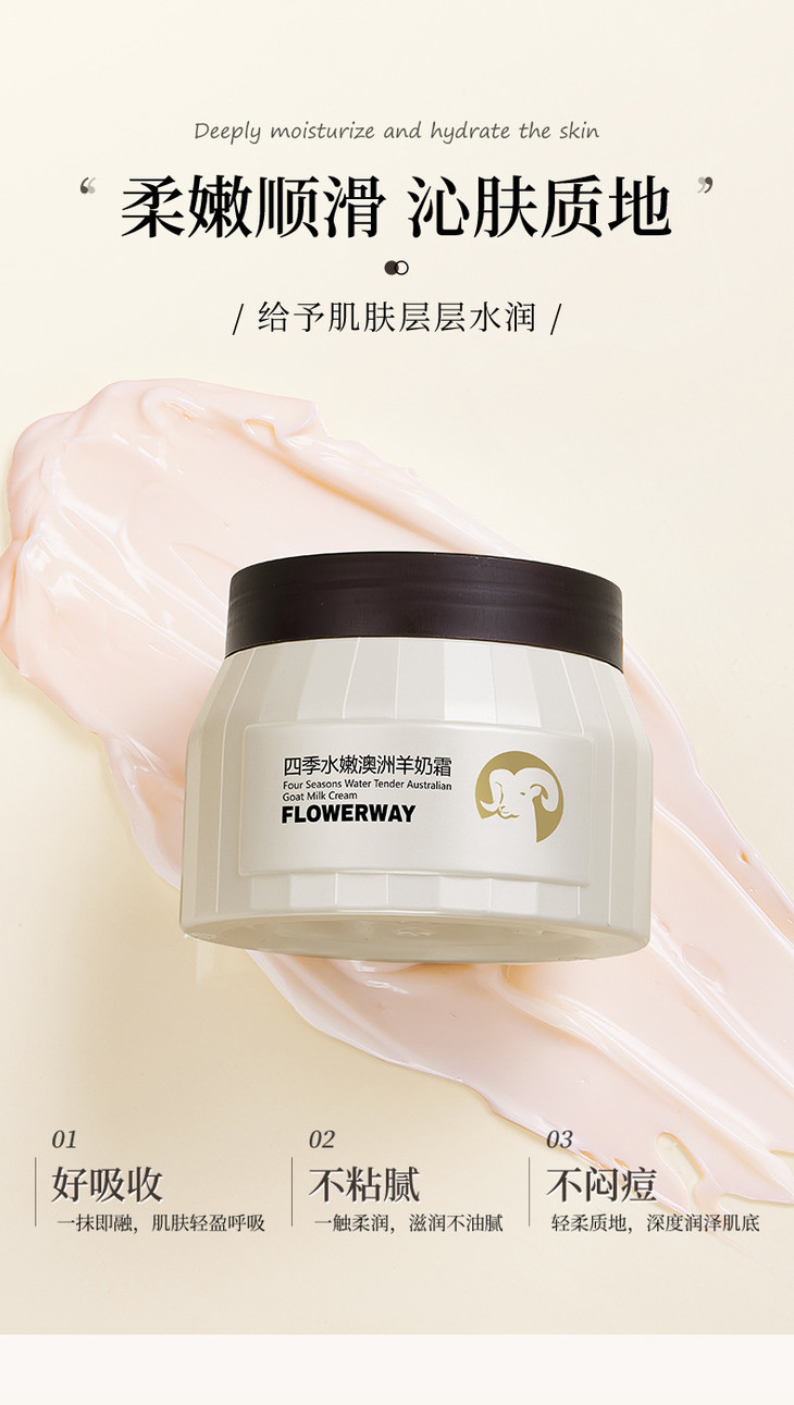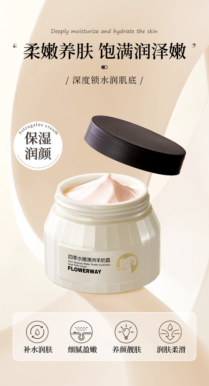 【秋冬修护嫩肤滋润保湿面霜】网红同款FLOWERWAY四季水嫩澳洲羊奶霜补水