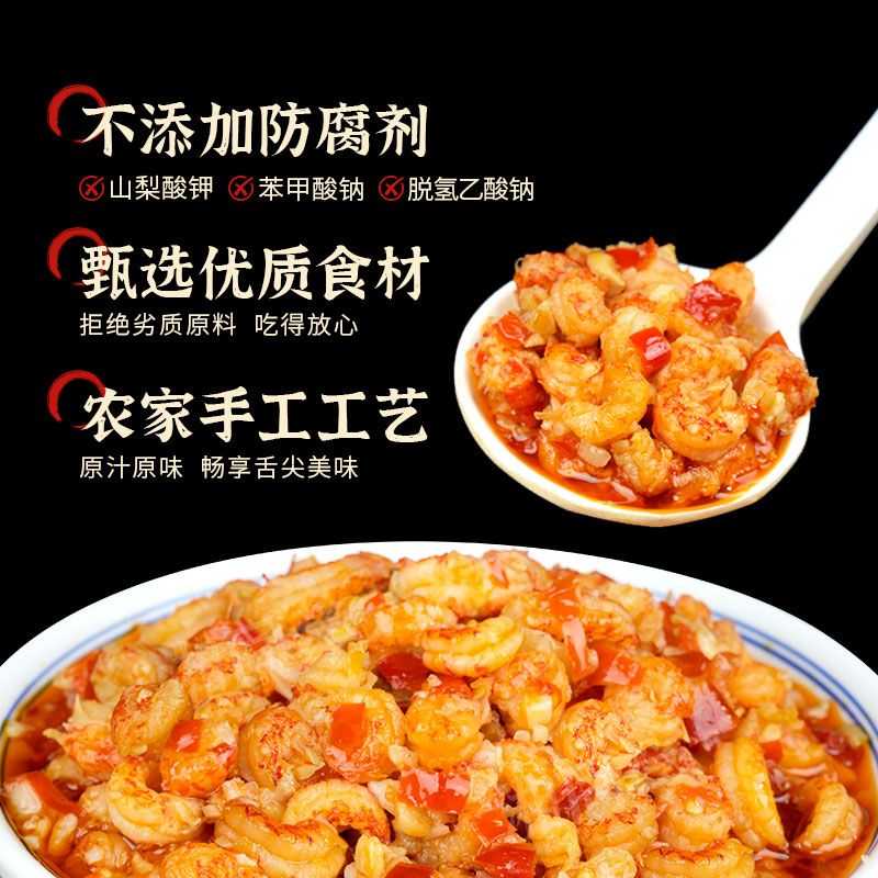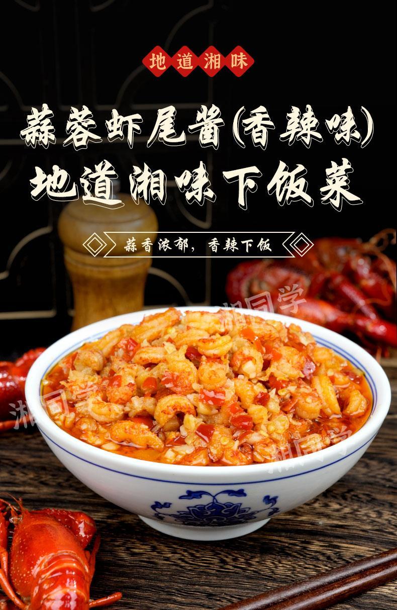 【超过瘾❗️蒜蓉虾尾酱下饭菜】新鲜去壳去头,整颗虾尾,配料只有蒜蓉酱、虾尾、白砂糖、味精、食用盐、香辛料,无其他,干净健康!小龙虾尾香辣湖南特产瓶装拌面拌饭酱-d
