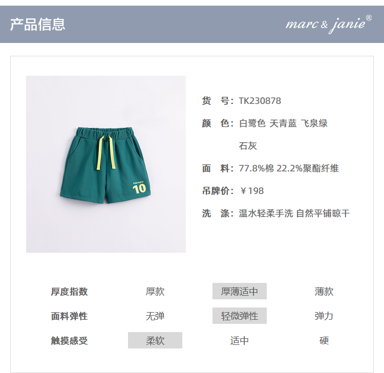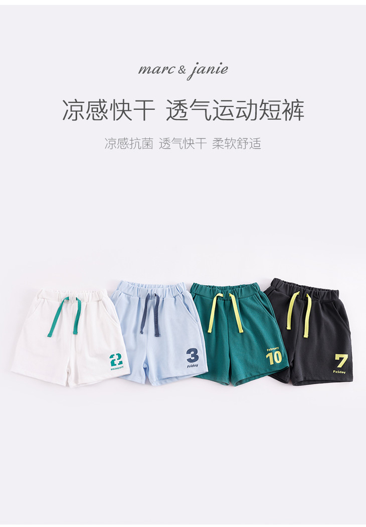 【凉感抗菌】马克珍妮新款夏装 男童字母运动短裤230878