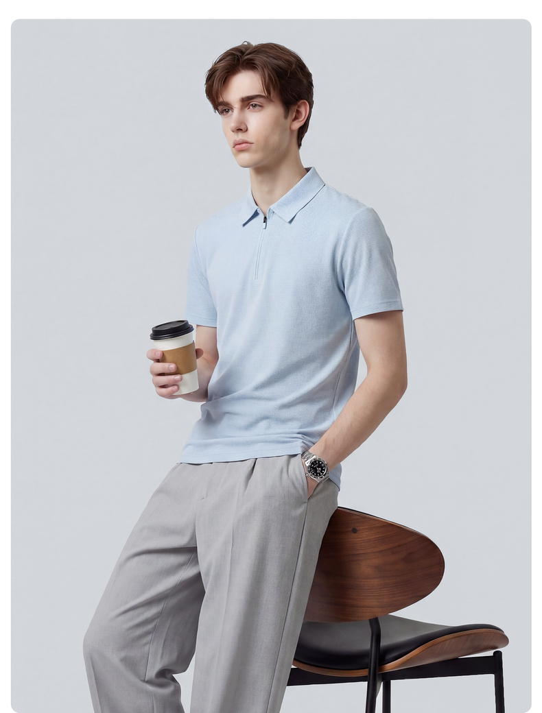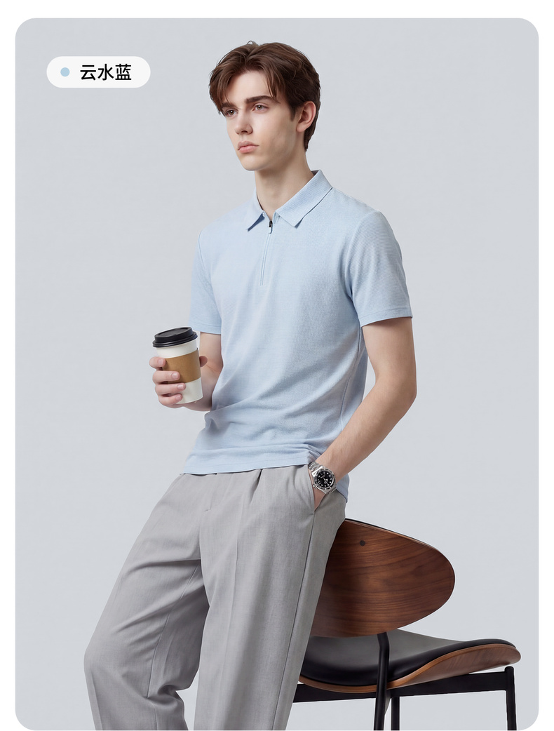【冰感速干&抗菌&透气】圣得西2026春季新款半拉链翻领T恤POLO衫
