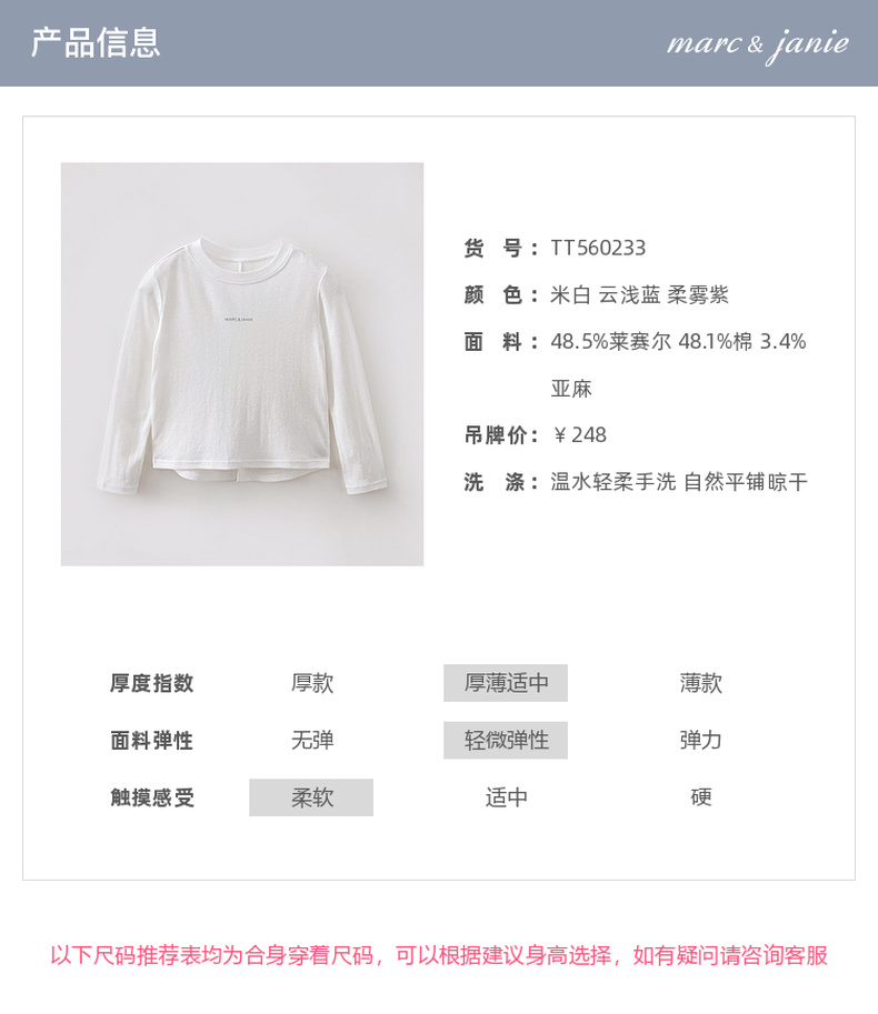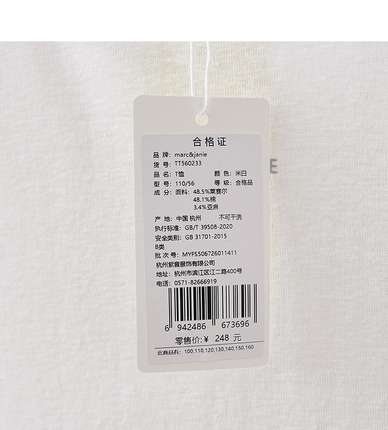 [尖叫薄]马克珍妮网球少女女童两穿棉麻运动T恤2026年春装新款560233