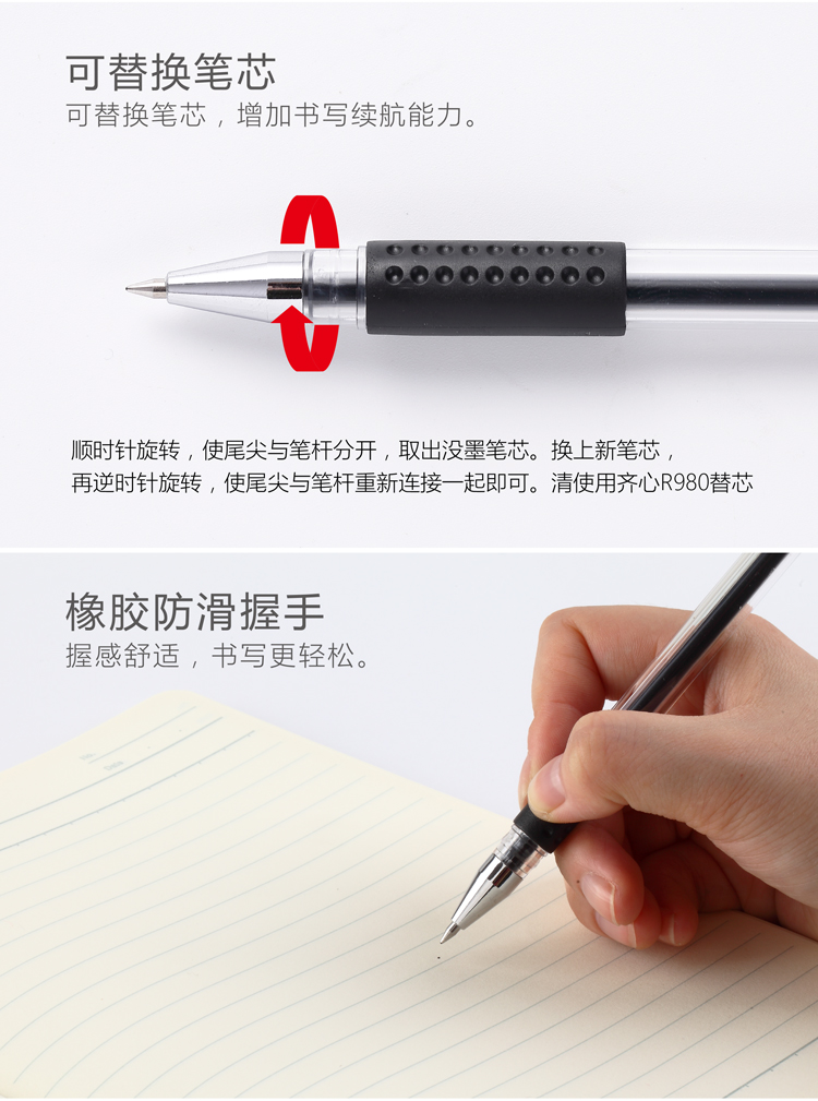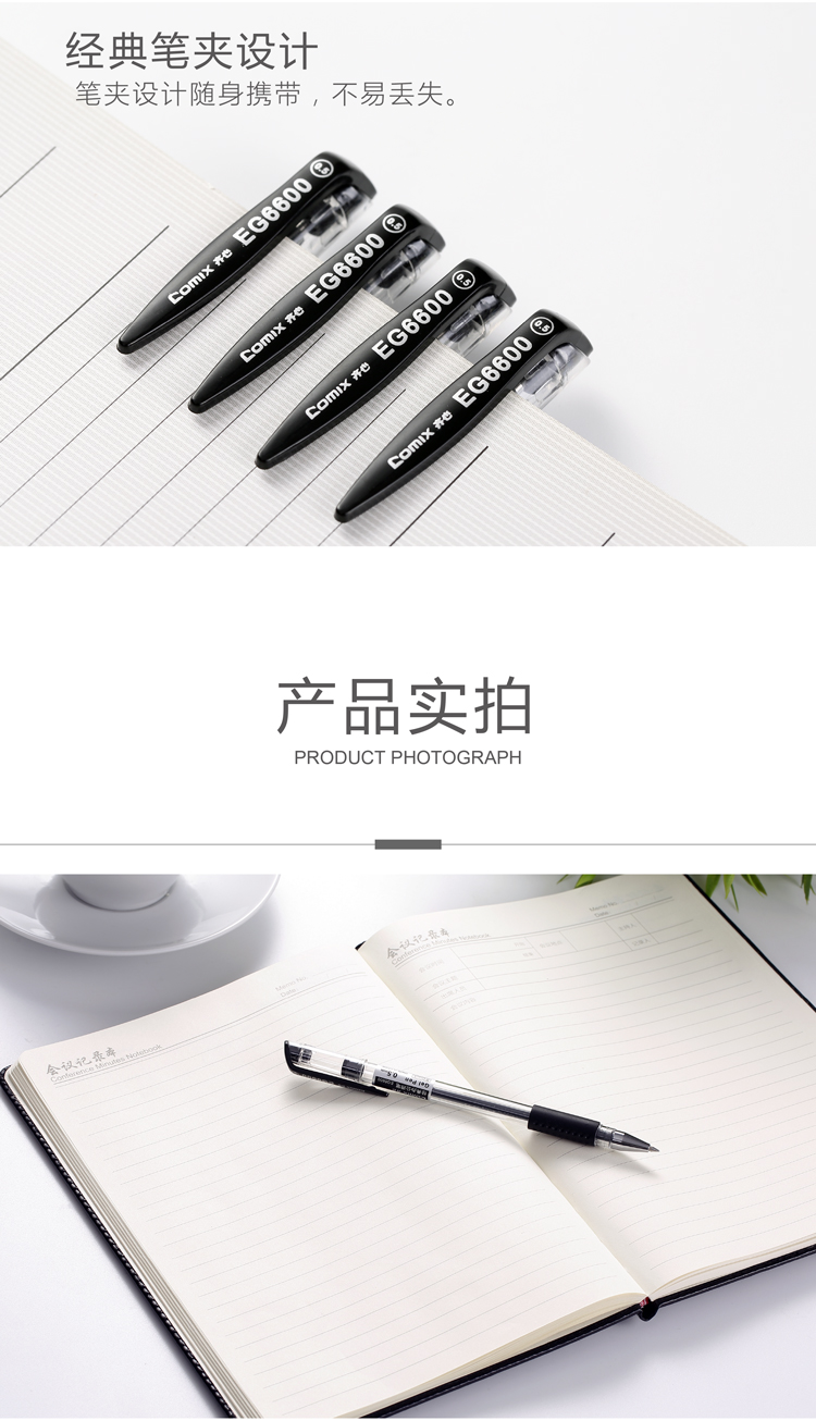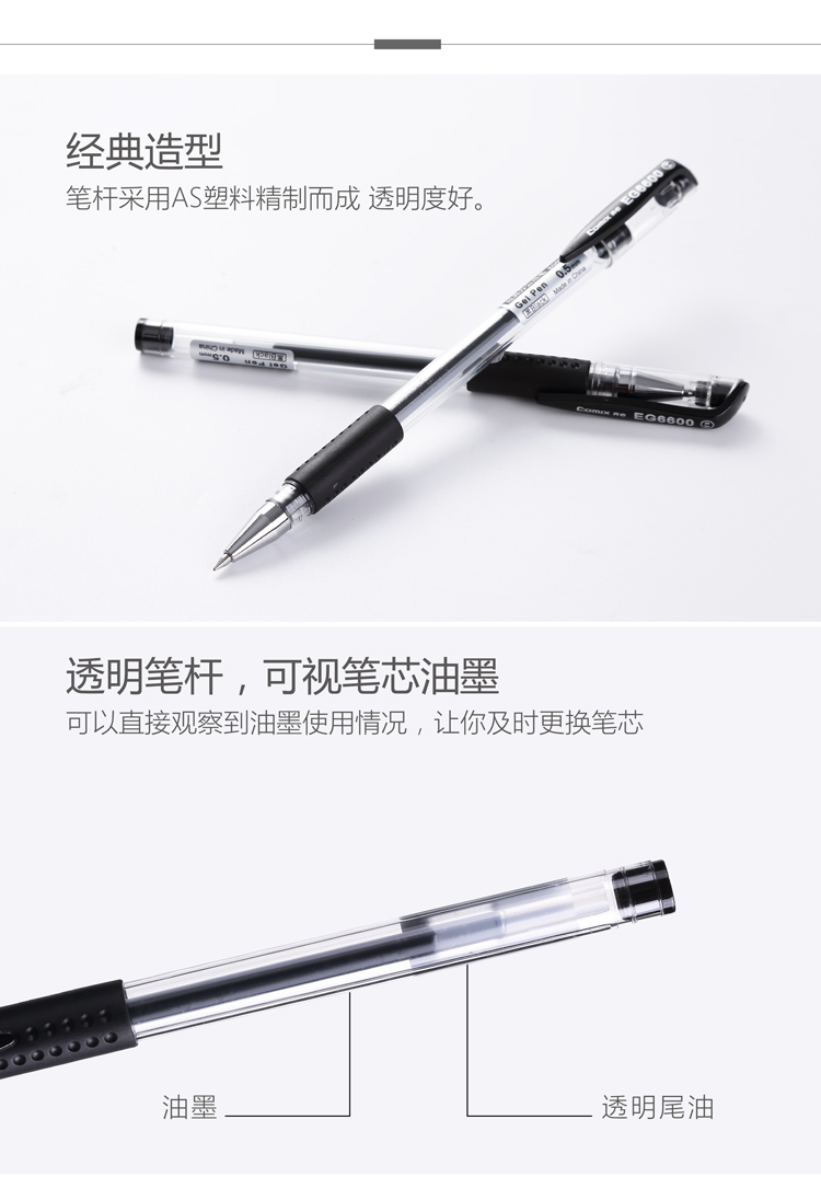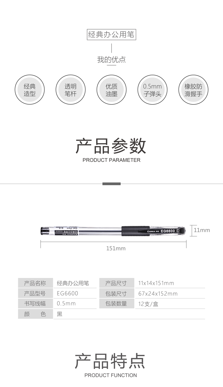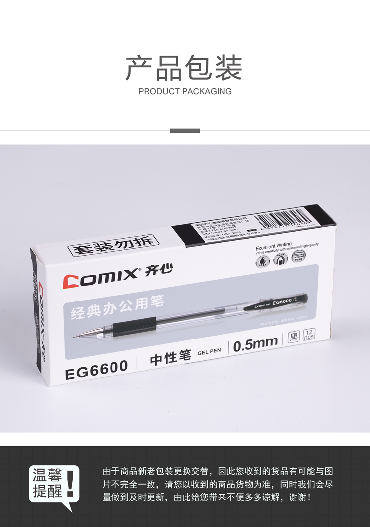 齐心(Comix)经典办公子弹头中性笔/水笔/0.5mm会议签字笔12支/盒黑色 EG6600