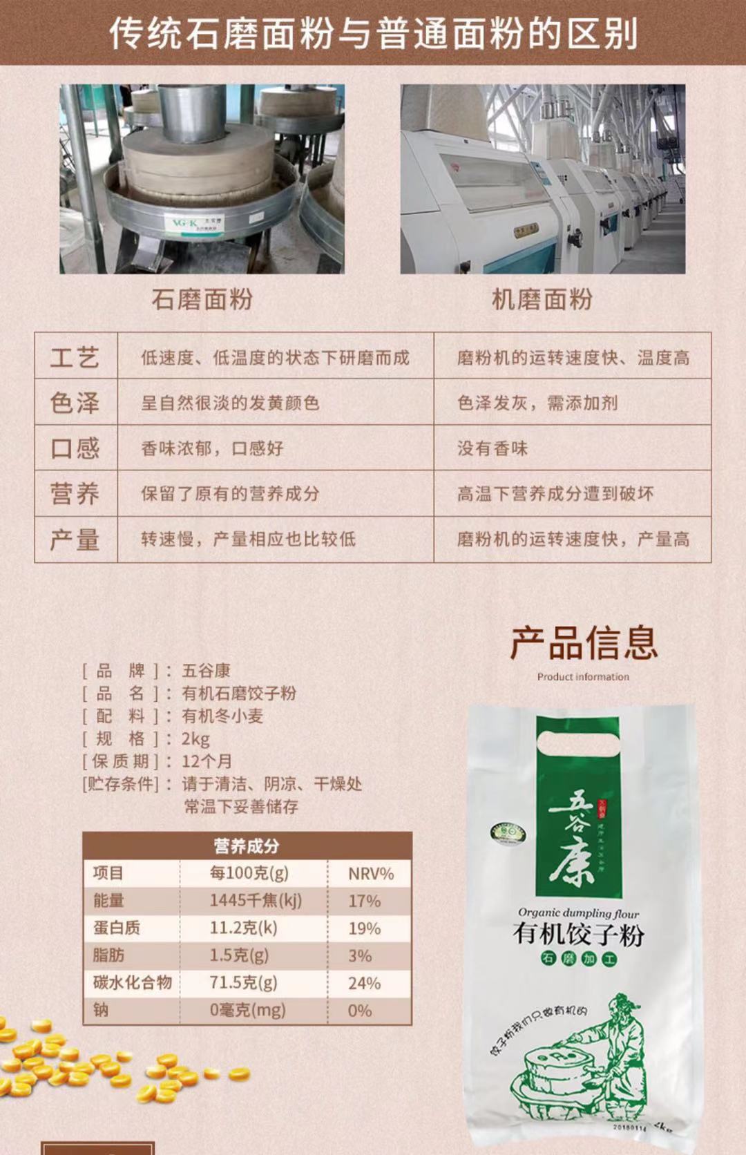 丨有机丨饺子粉2kg 五谷康有机饺子粉 面粉