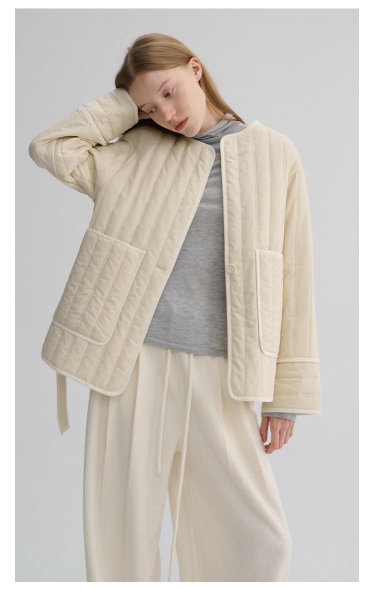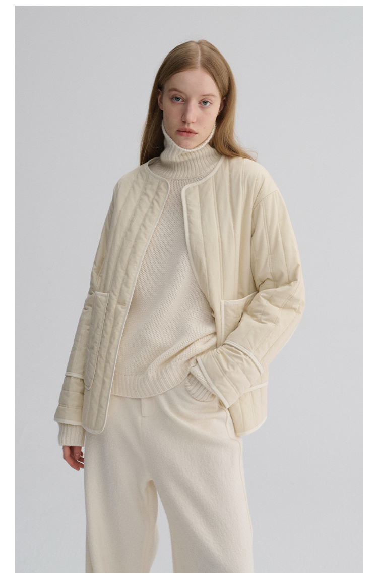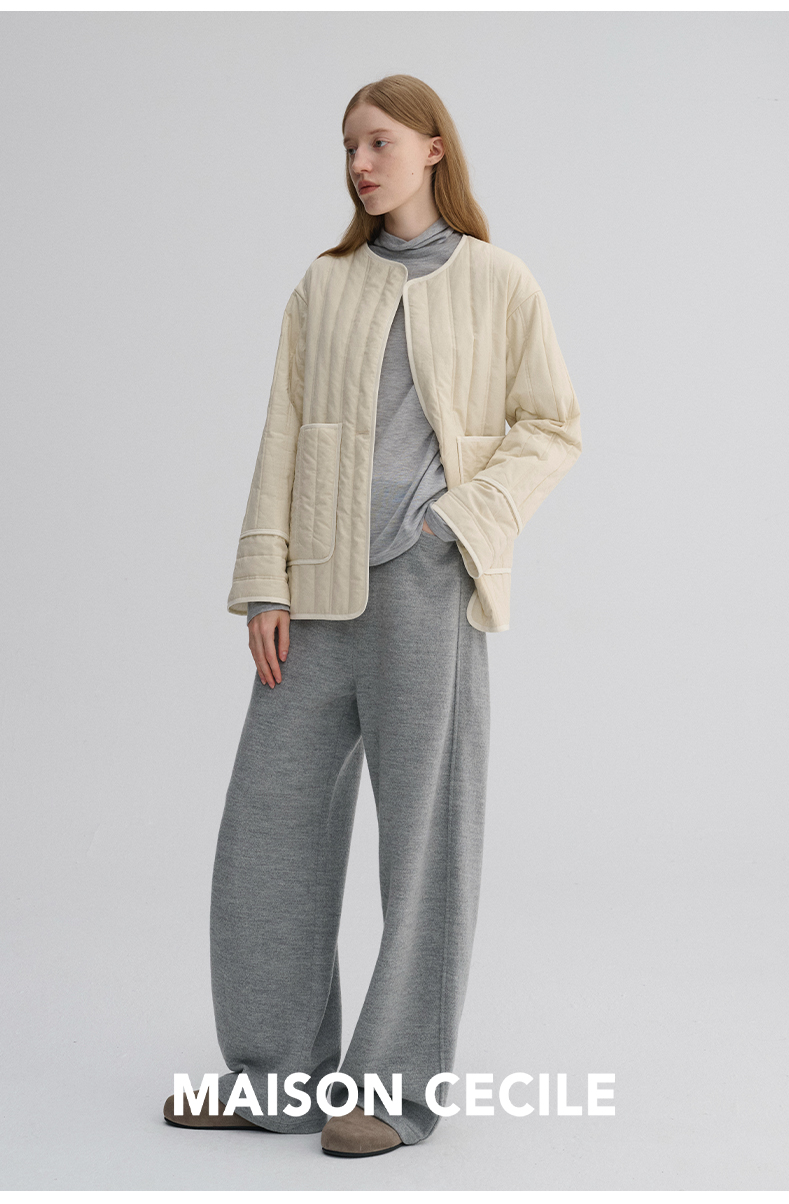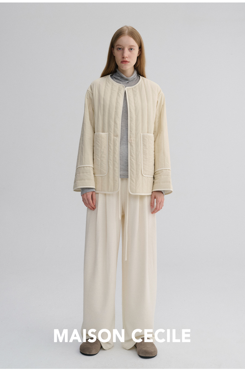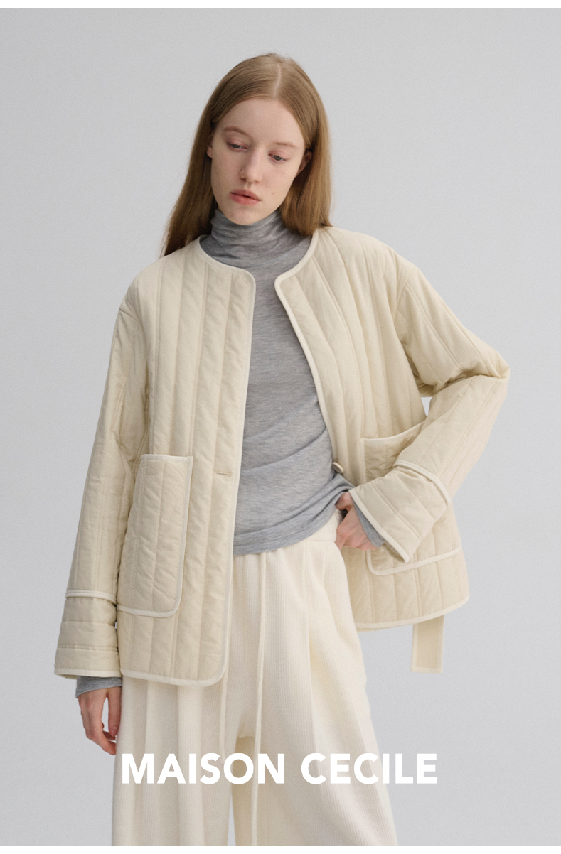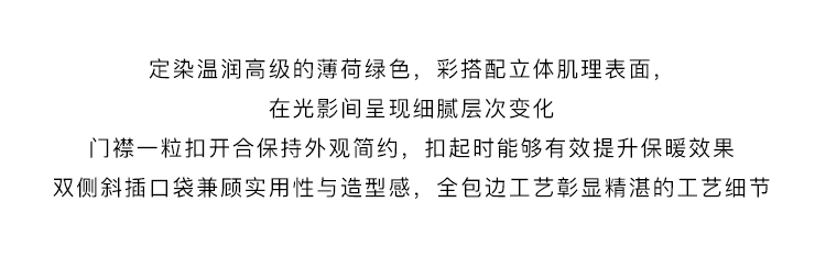 MAISON CECILE 定染薄荷绿秋冬百搭简约立体肌理廓形无领夹克棉服