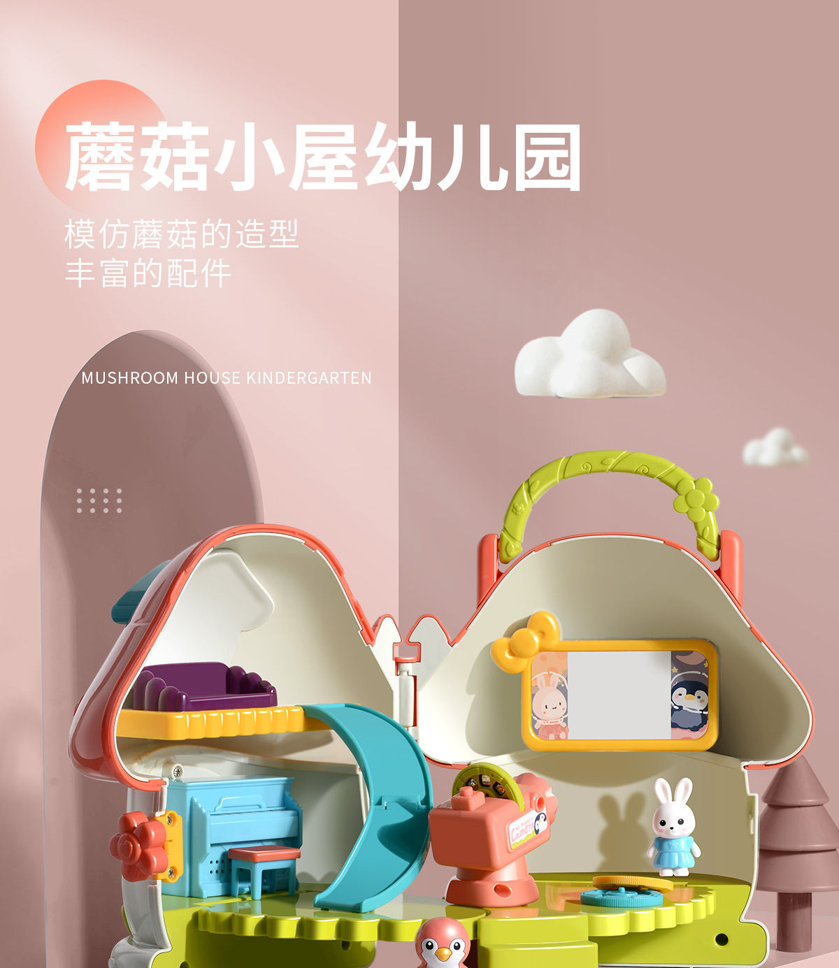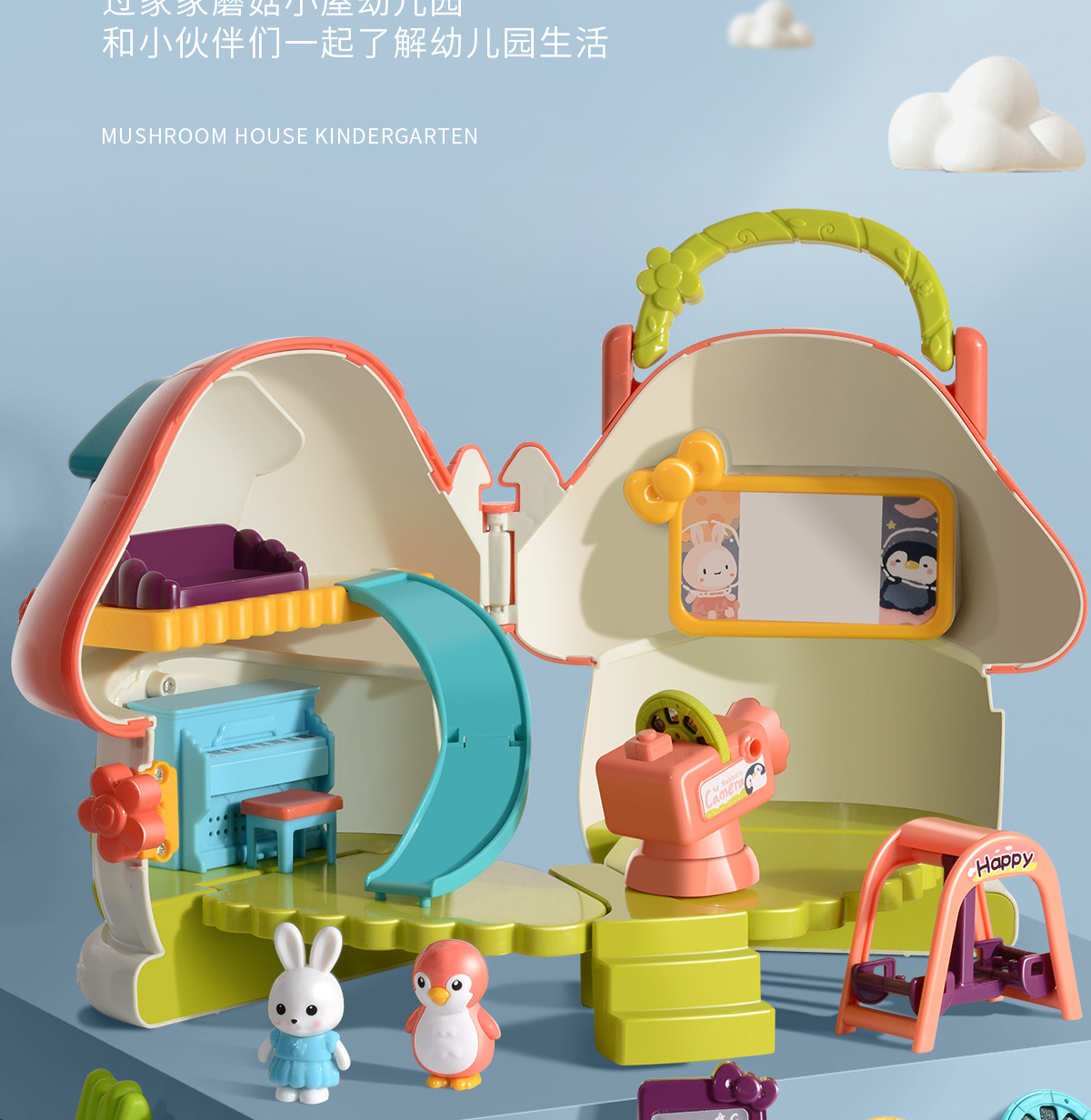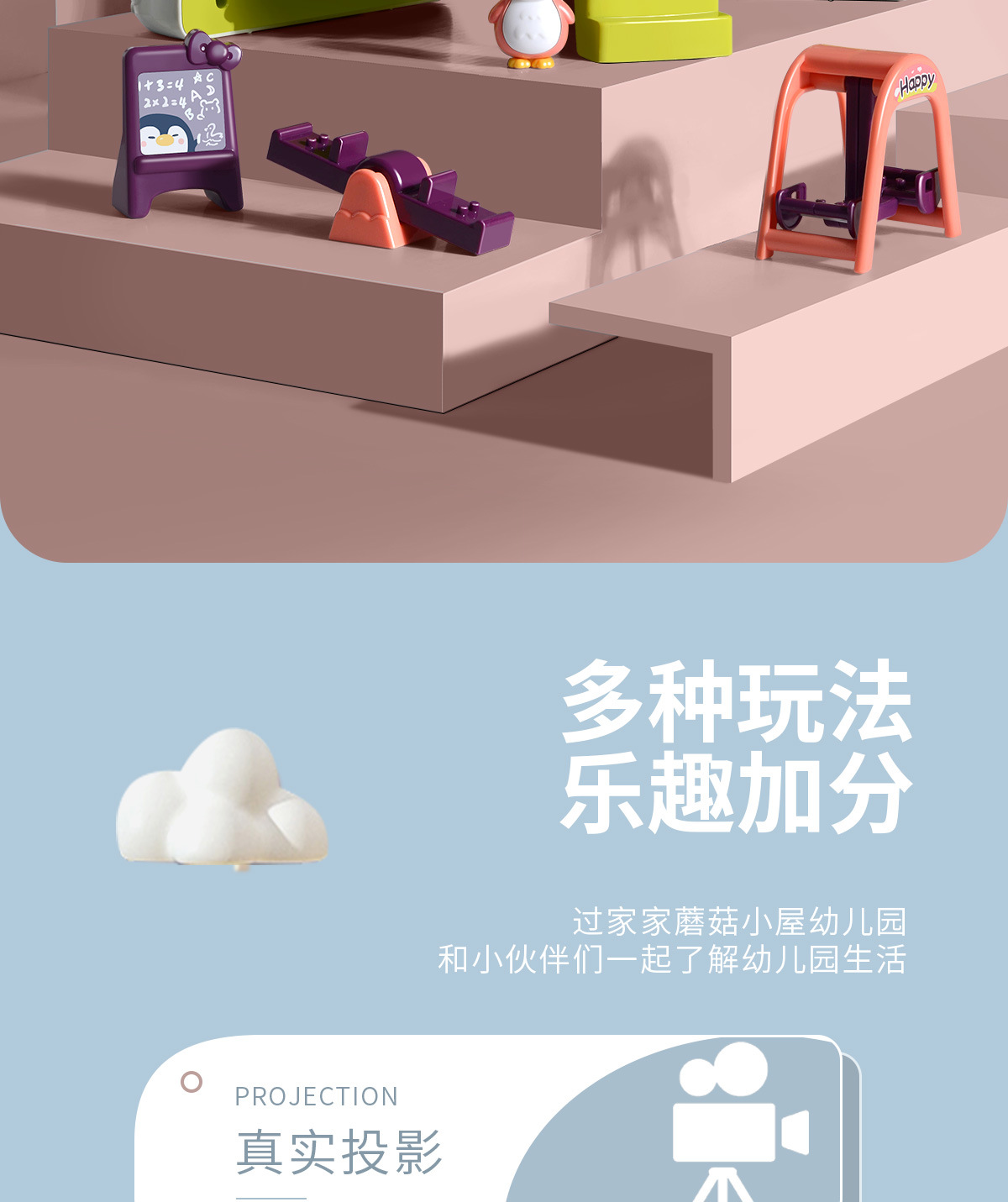 【蘑菇小屋幼儿园 了解幼儿园生活】儿童仿真幼儿园生活 一屋两种模式 24张投影影片 提前引导宝宝上幼儿园