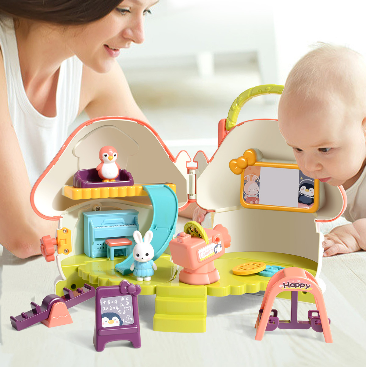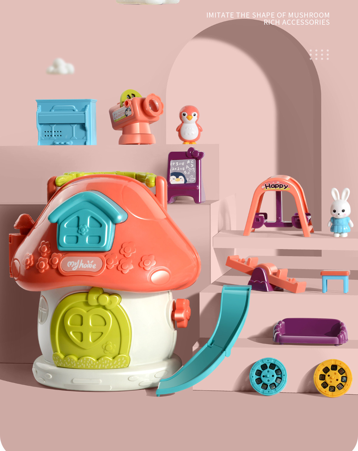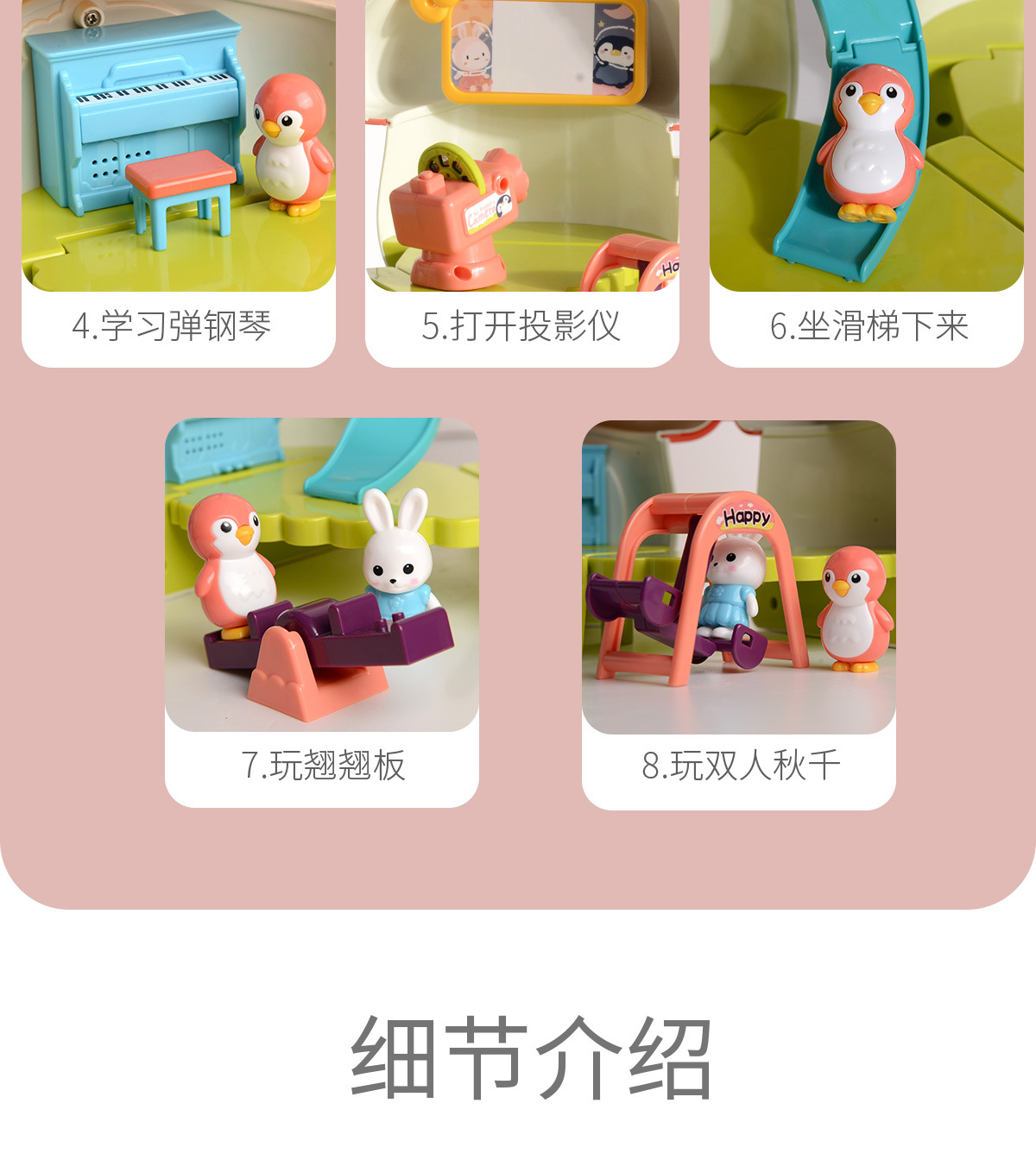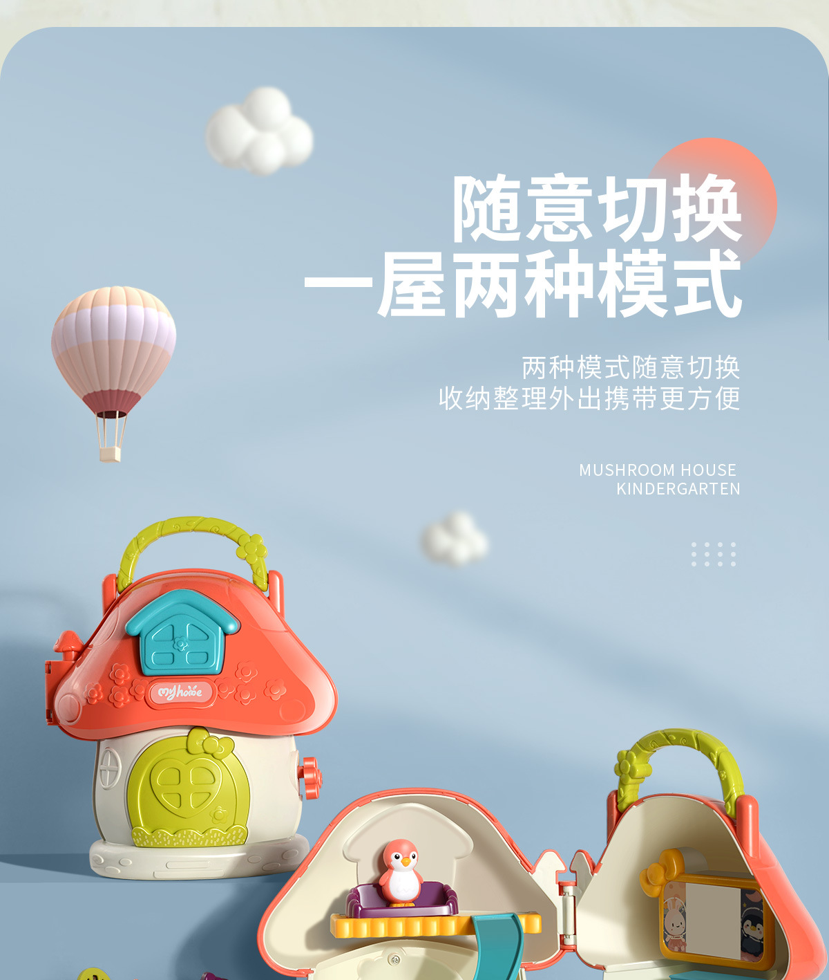 【蘑菇小屋幼儿园 了解幼儿园生活】儿童仿真幼儿园生活 一屋两种模式 24张投影影片 提前引导宝宝上幼儿园