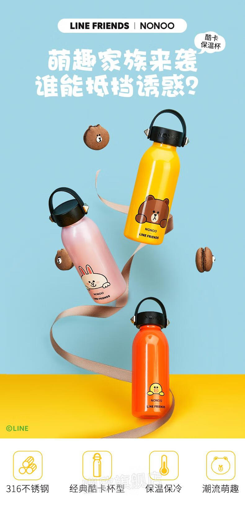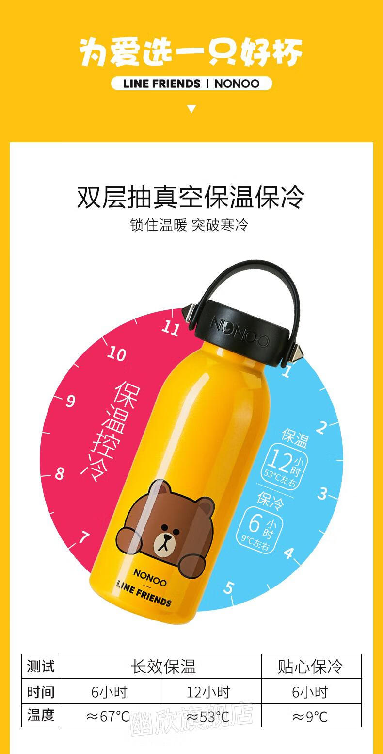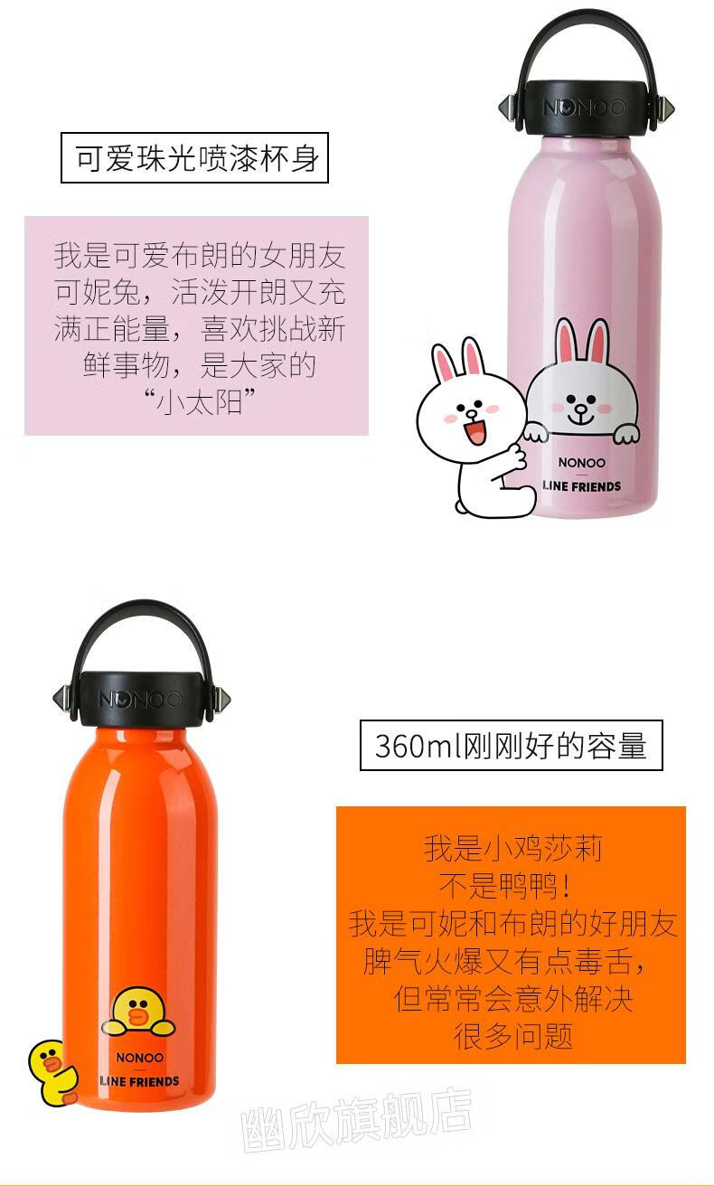 NONOO萌趣酷卡保温杯可爱可妮兔布朗熊水杯便携情侣保温杯