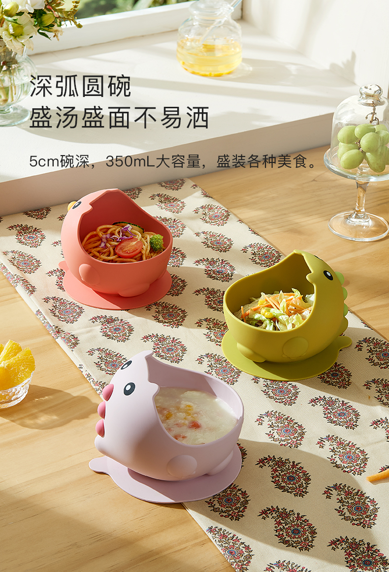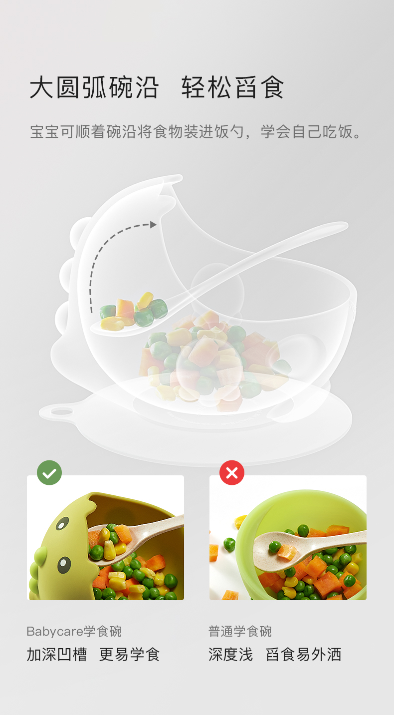 【新品】babycare宝宝辅食碗可蒸煮防摔防烫吃饭训练硅胶吸盘碗儿童餐具