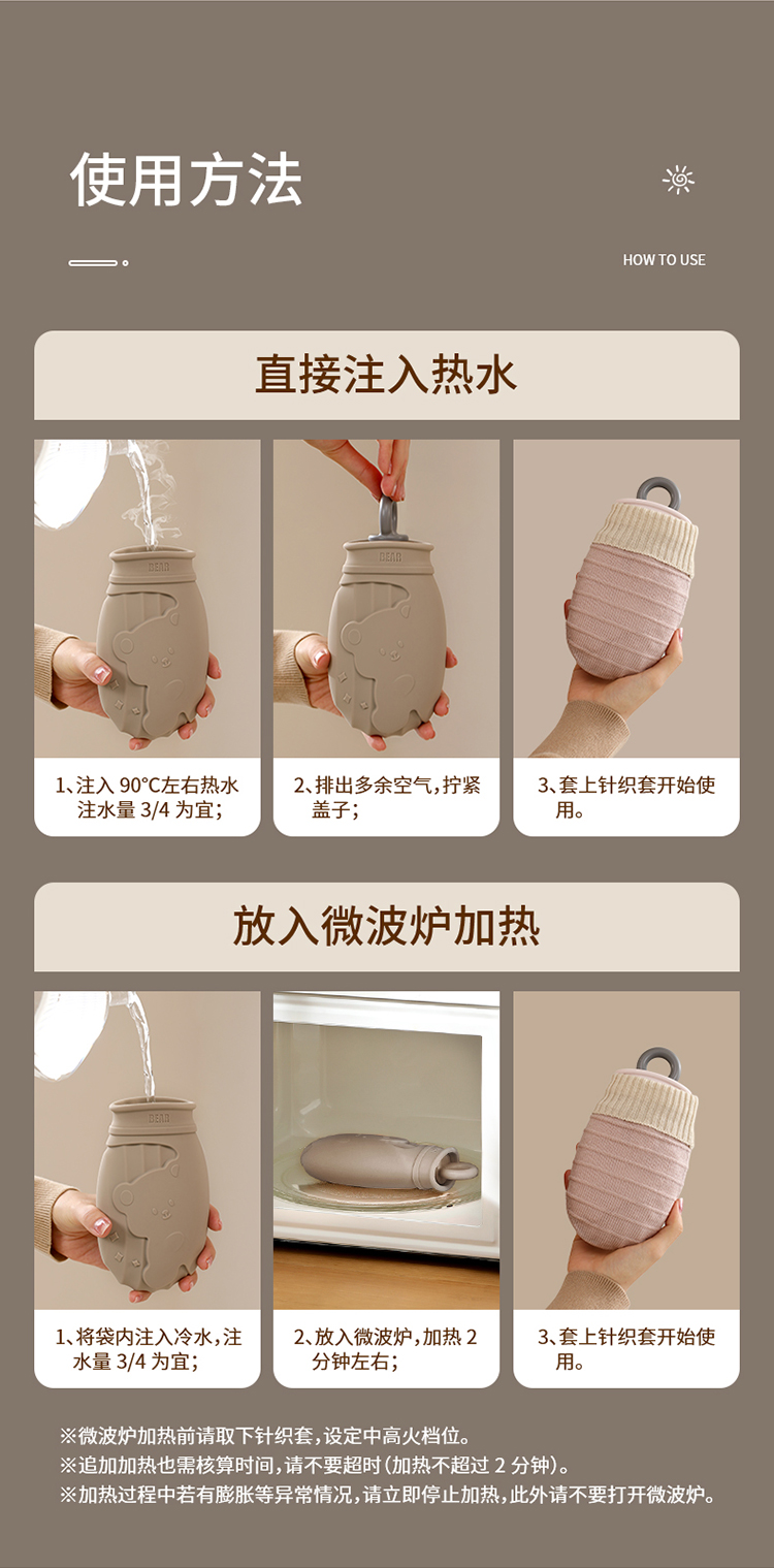 FaSoLa硅胶热水袋迷你小号热敷专用防爆注水暖水袋暖手暖被窝神器