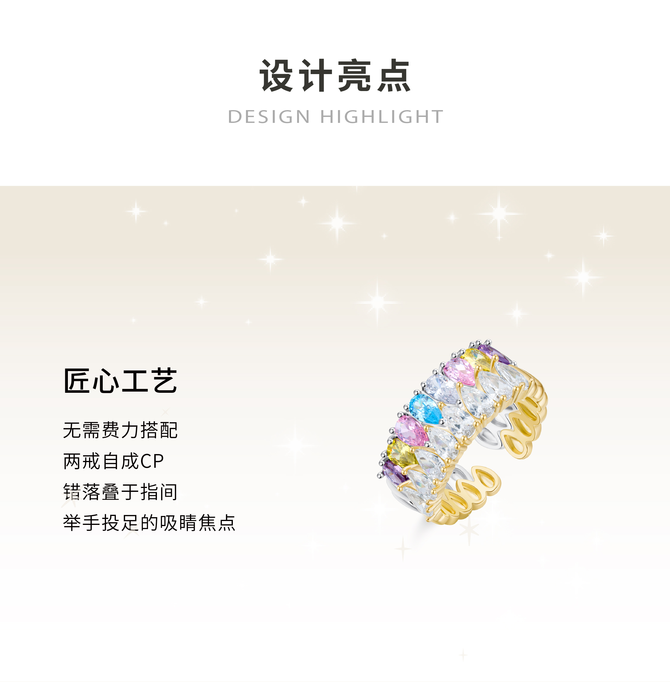 【小雨滴】双色双拼多戴法戒指