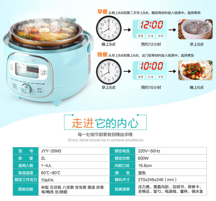 南5 九阳(Joyoung)电压力锅JYY-20M3 黄晶内胆