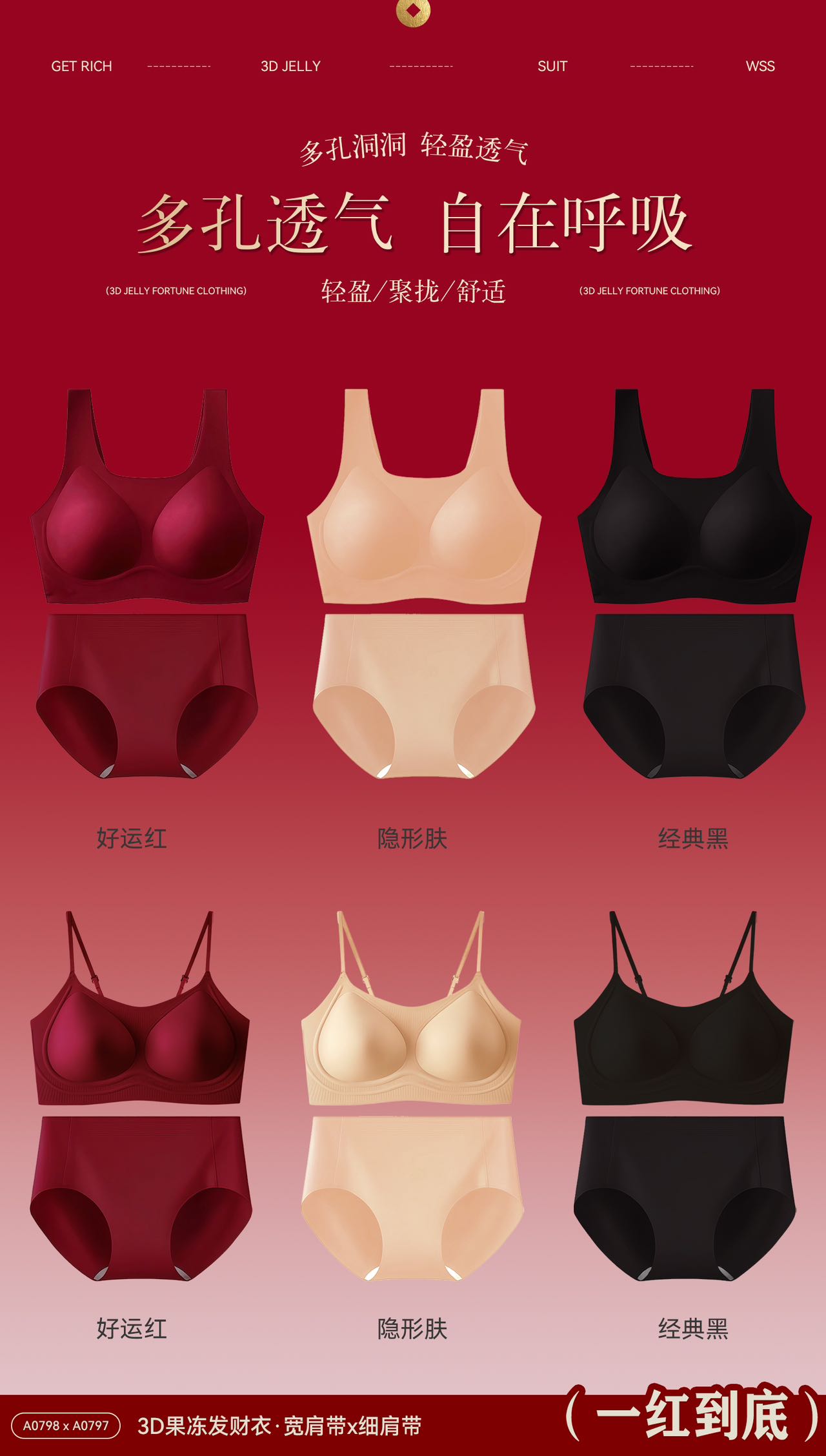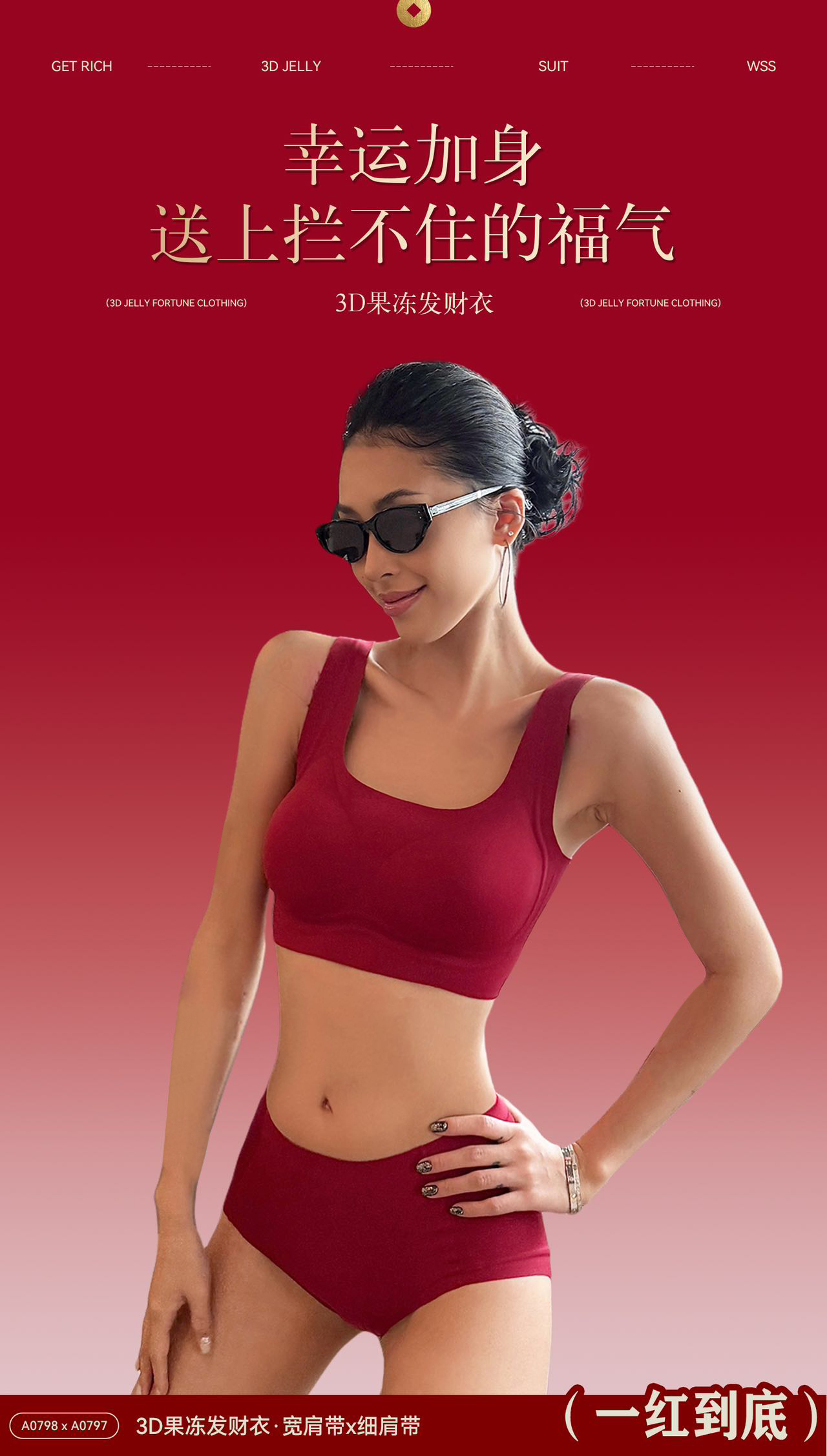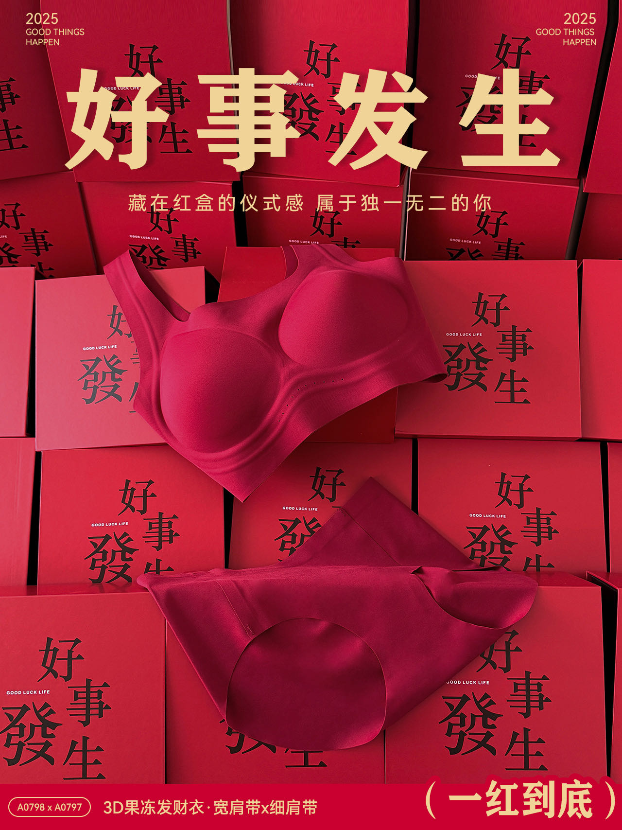 【百图lulu好物】【果冻发财内衣套装】新年红 半固定杯 乳胶垫 无痕内衣 桑蚕丝内裤 套盒