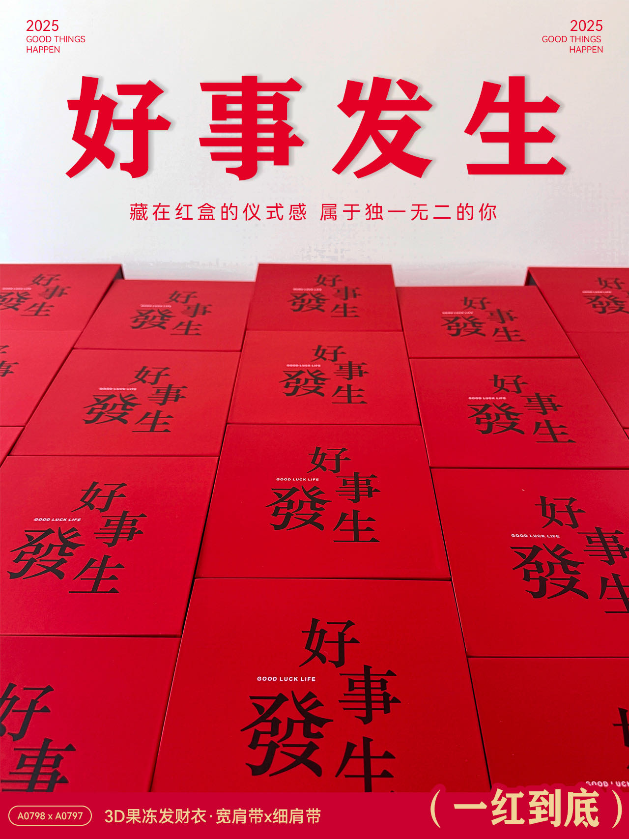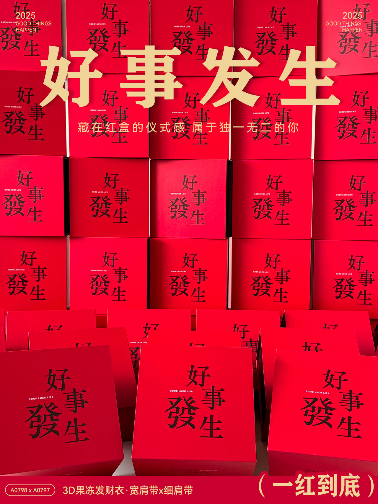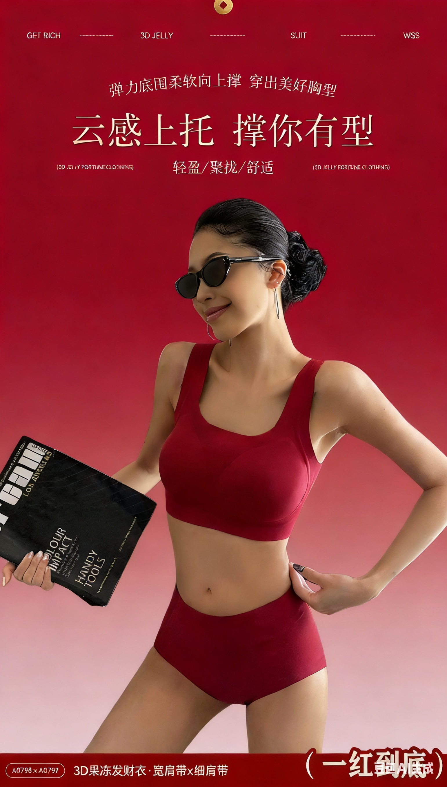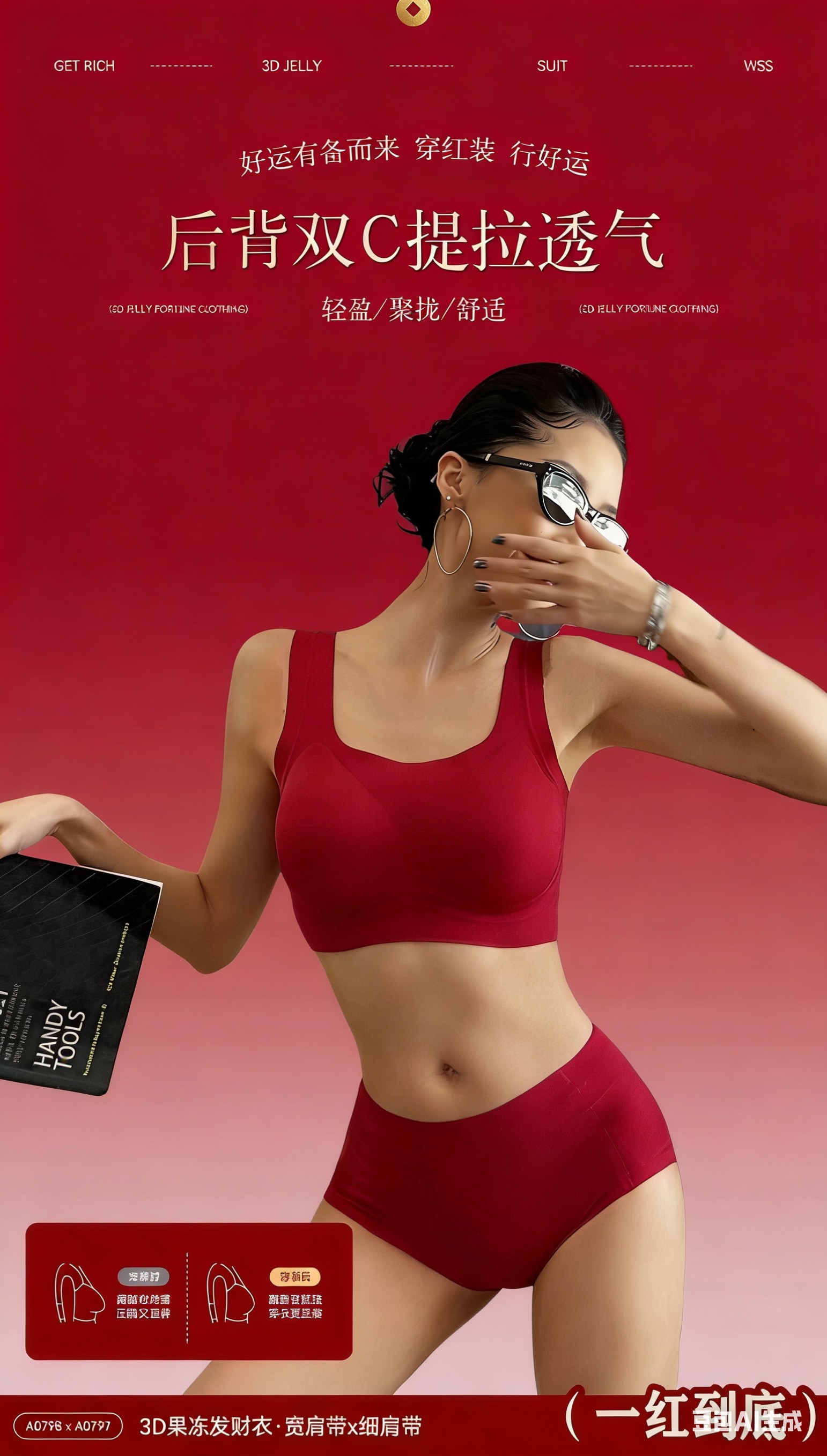 【百图lulu好物】【果冻发财内衣套装】新年红 半固定杯 乳胶垫 无痕内衣 桑蚕丝内裤 套盒