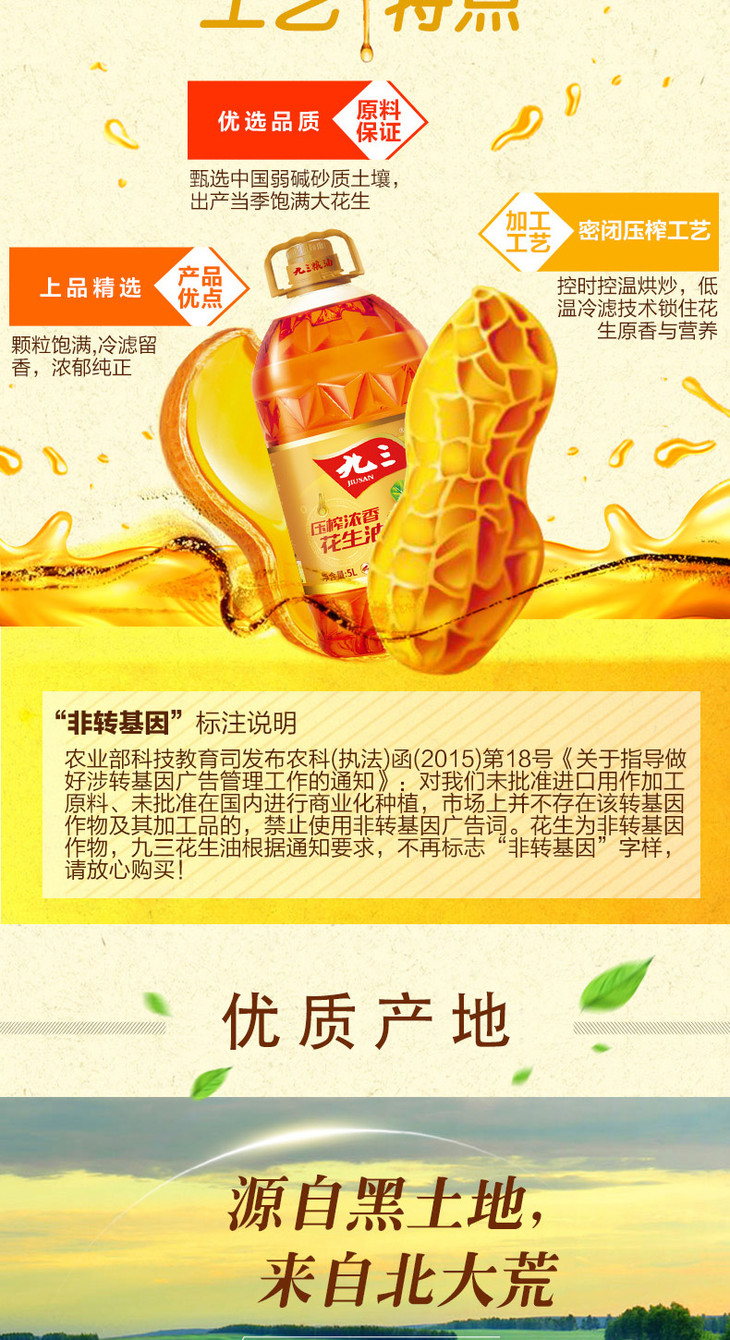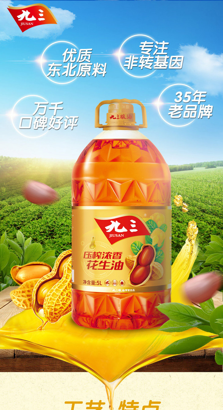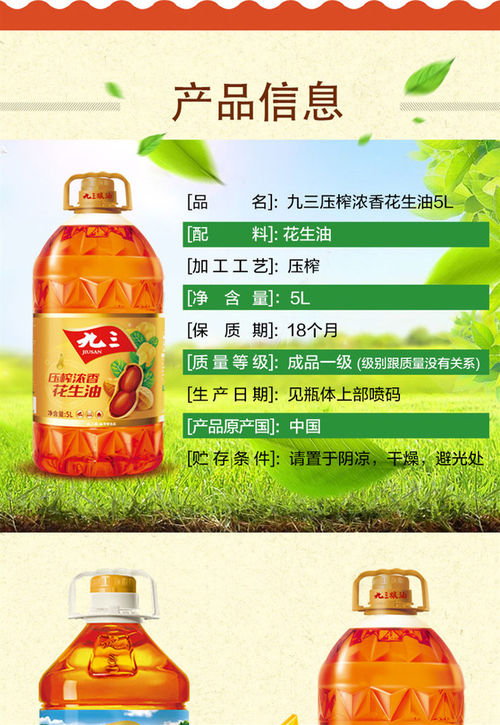 九三花生油食用油压榨浓香 5L 送 芽土哥1.8升玉米油