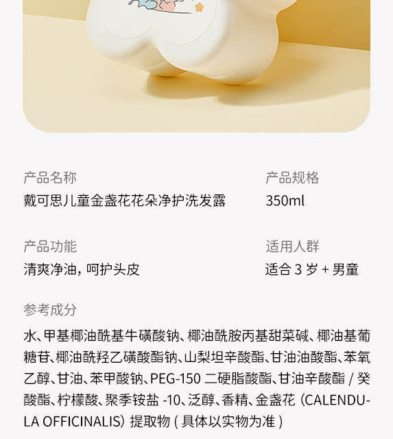 戴可思儿童花朵洗发露金盏花宝宝专用洗发水男女童洗头膏♥
