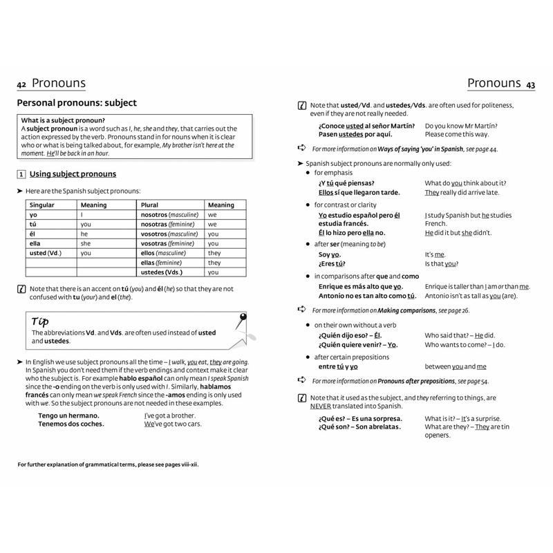 Hundreds of examples of real Spanish illustrate clearly the grammatical points being made.