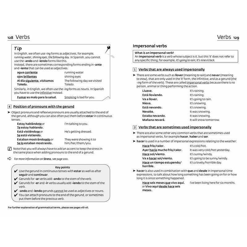 Designed for all those learning Spanish at school, at work or at home. It provides easily accessible information in an attractively presented layout. Key grammatical points are highlighted throughout as a means of reinforcement. In addition, a full glossary gives clear explanations of grammatical terminology.
