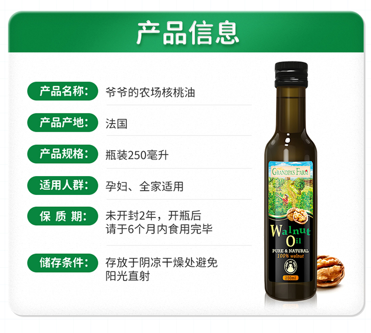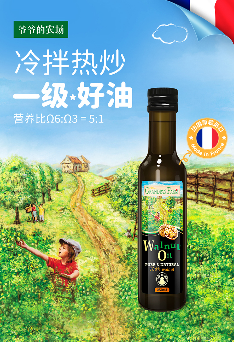 【阶梯满减】 Grandpa's Farm爷爷的农场核桃油90ml 瓶