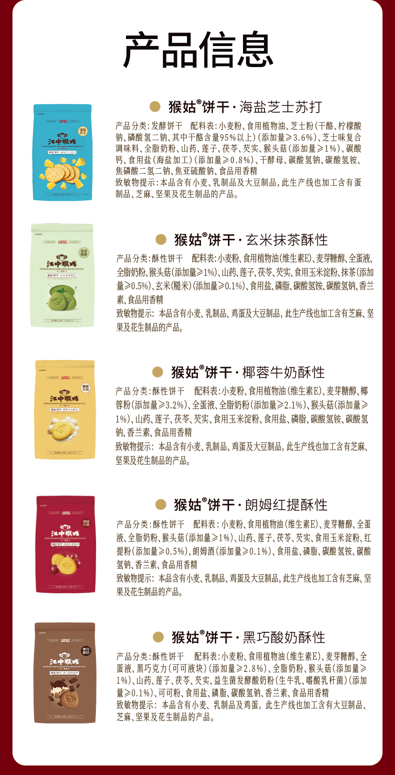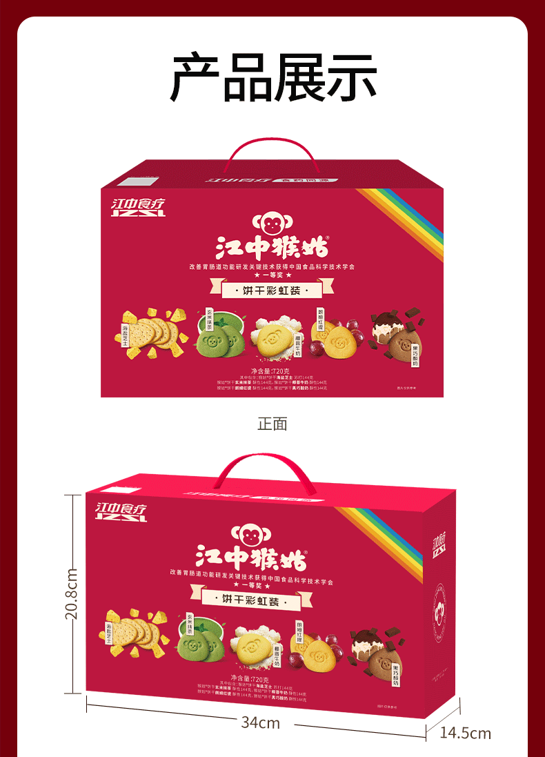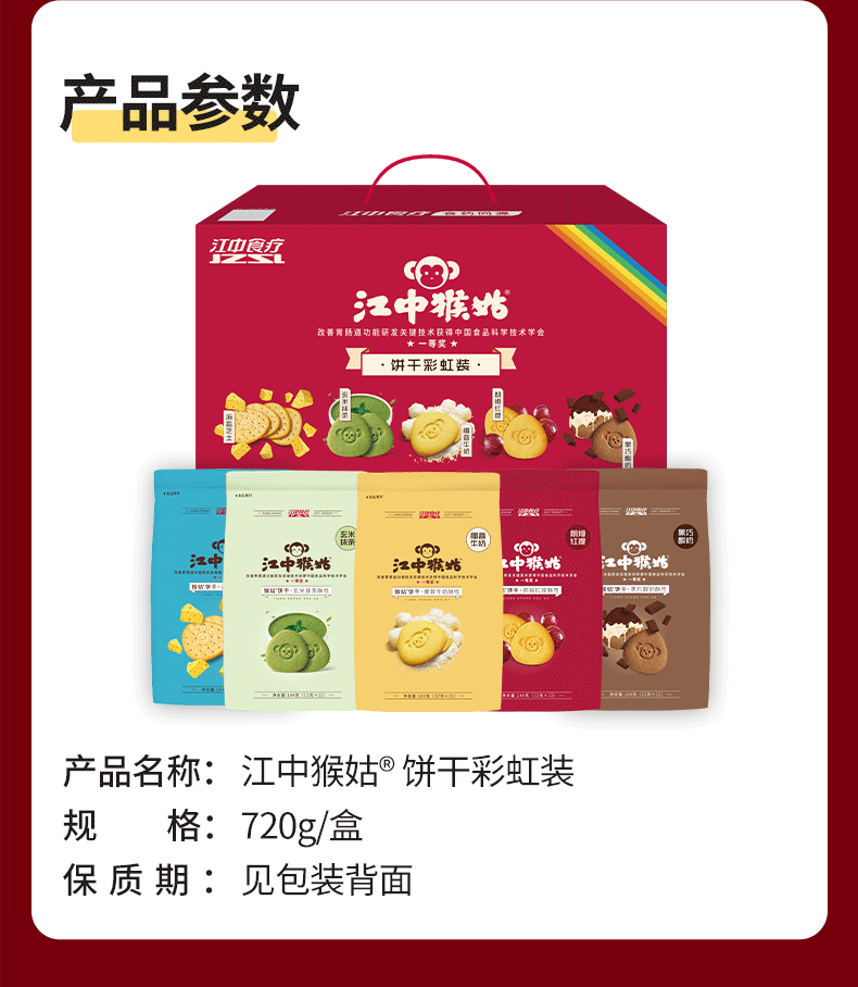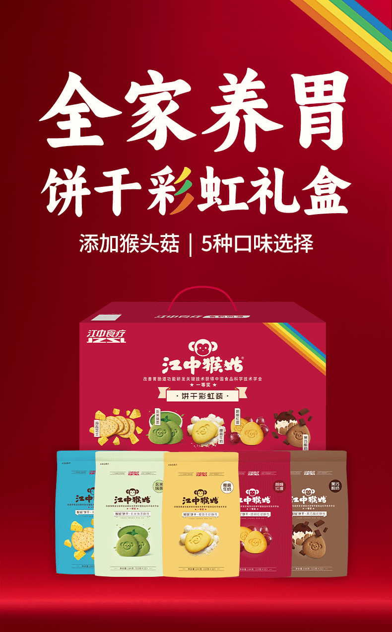 江中猴姑·彩虹饼干礼盒 5袋/720克/盒 5种口味养胃代餐礼盒饼干 144g/袋 2025年9月生产/保质期12个月 饼干易碎 介意慎拍