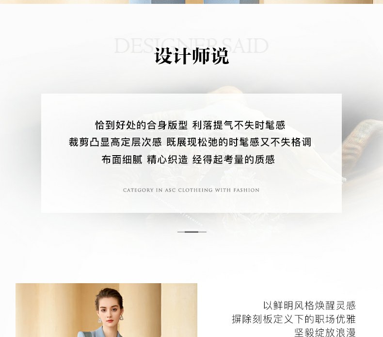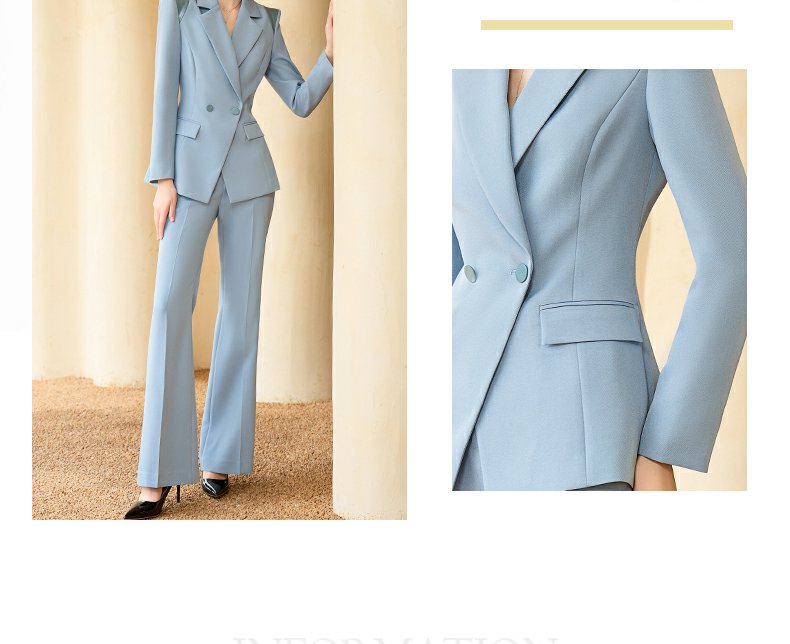 IWY/高端设计感灰蓝色西装套装秋冬阔腿裤珠宝设计师工作服美容院正装233001C1+P3