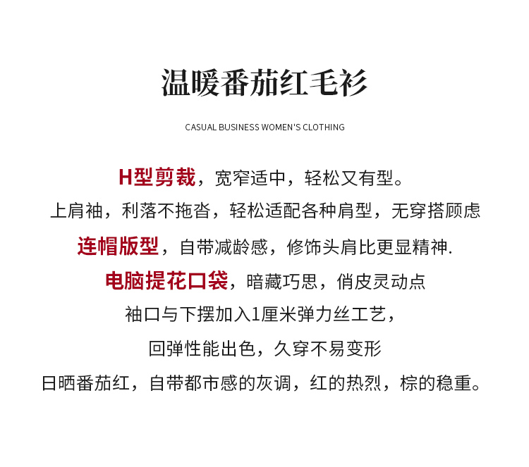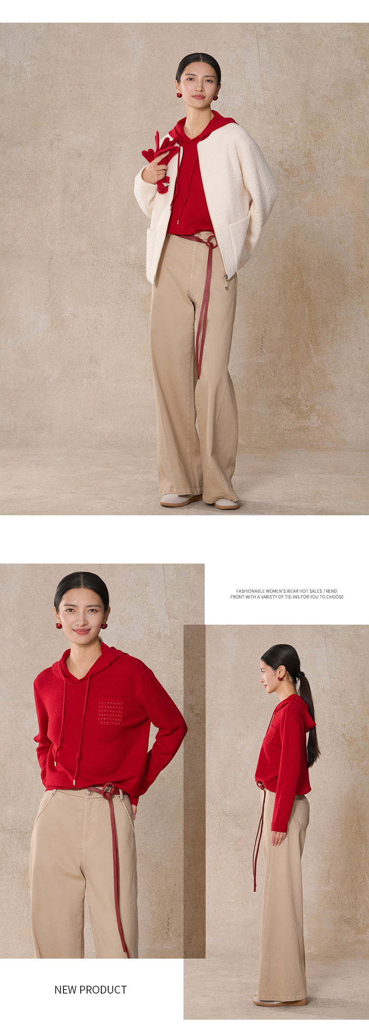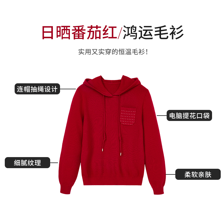 【商场同款】CNK5B84 “ 鸿运毛衫 ” 纯羊毛番茄红连帽毛衫 温暖有质感 喜悦好看