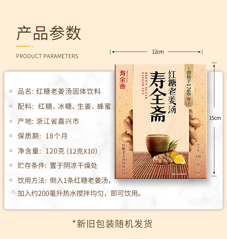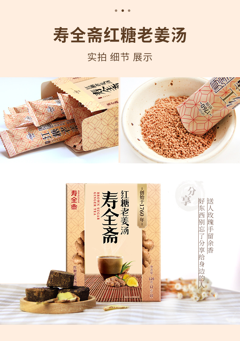 【女神节】【中华老字号】寿全斋 红糖老姜汤 2盒装 120g*2