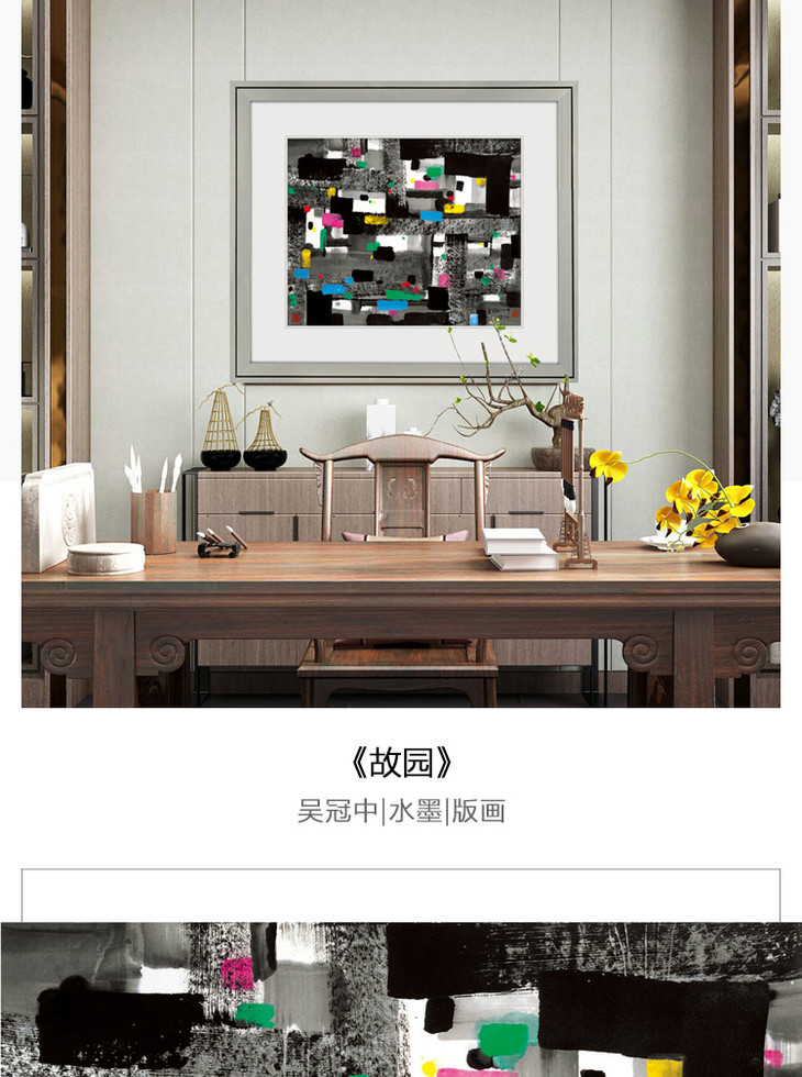 吴冠中综合版画《崂山松石》 装裱尺寸:100cm×82cm