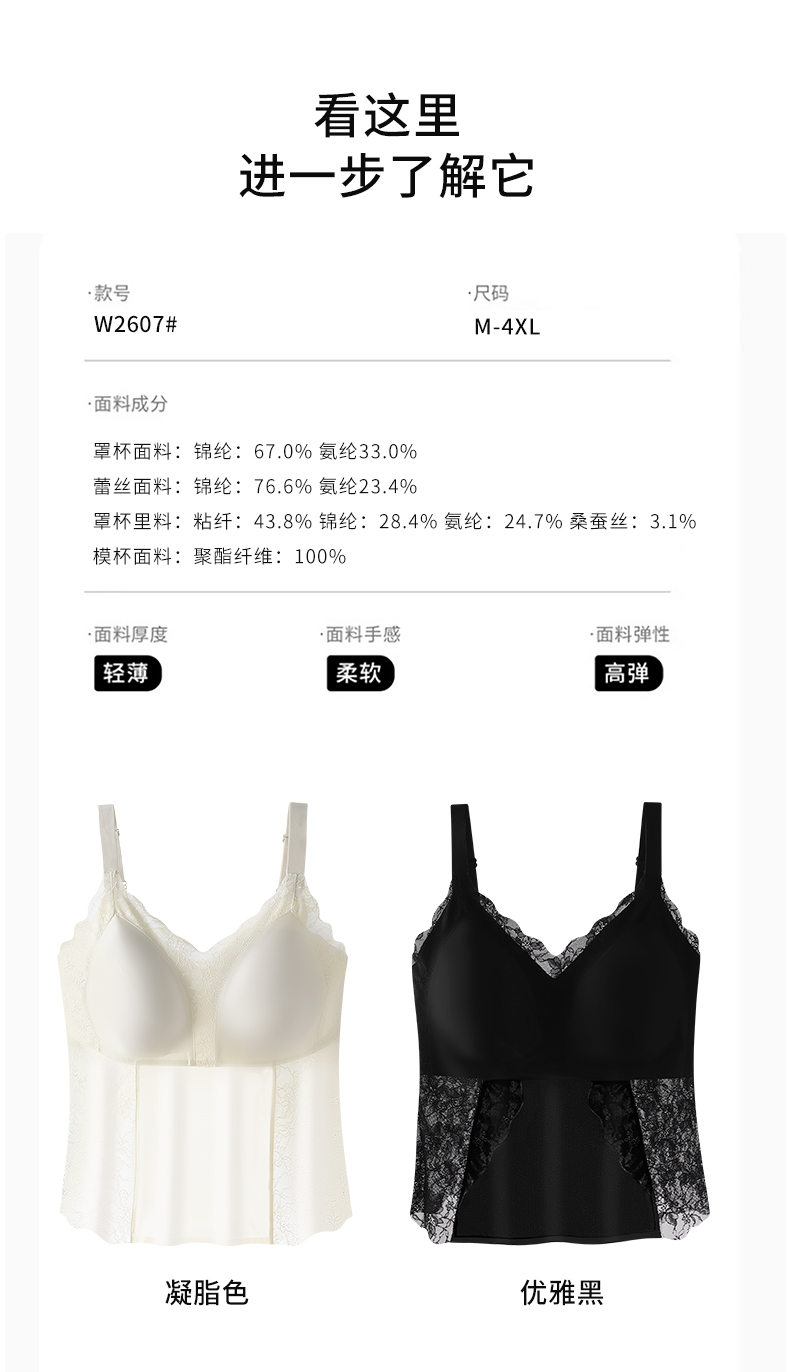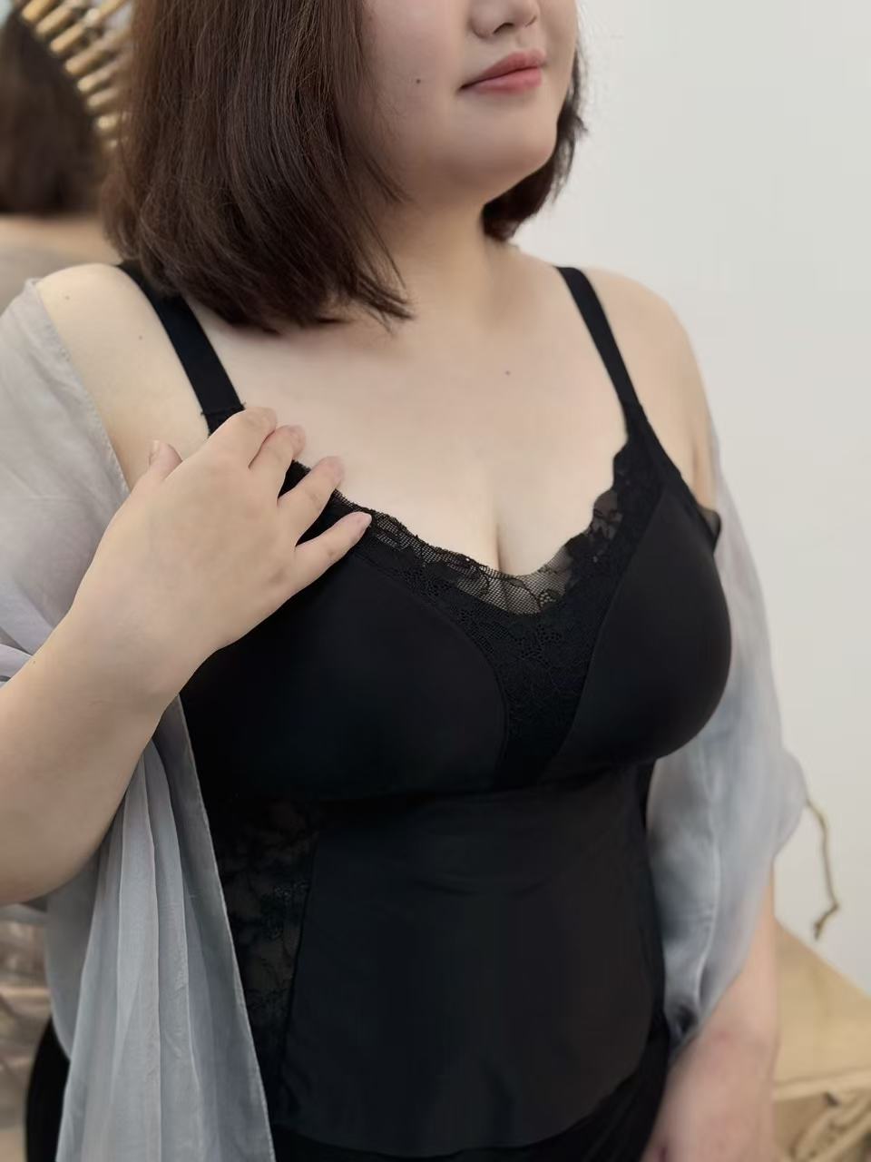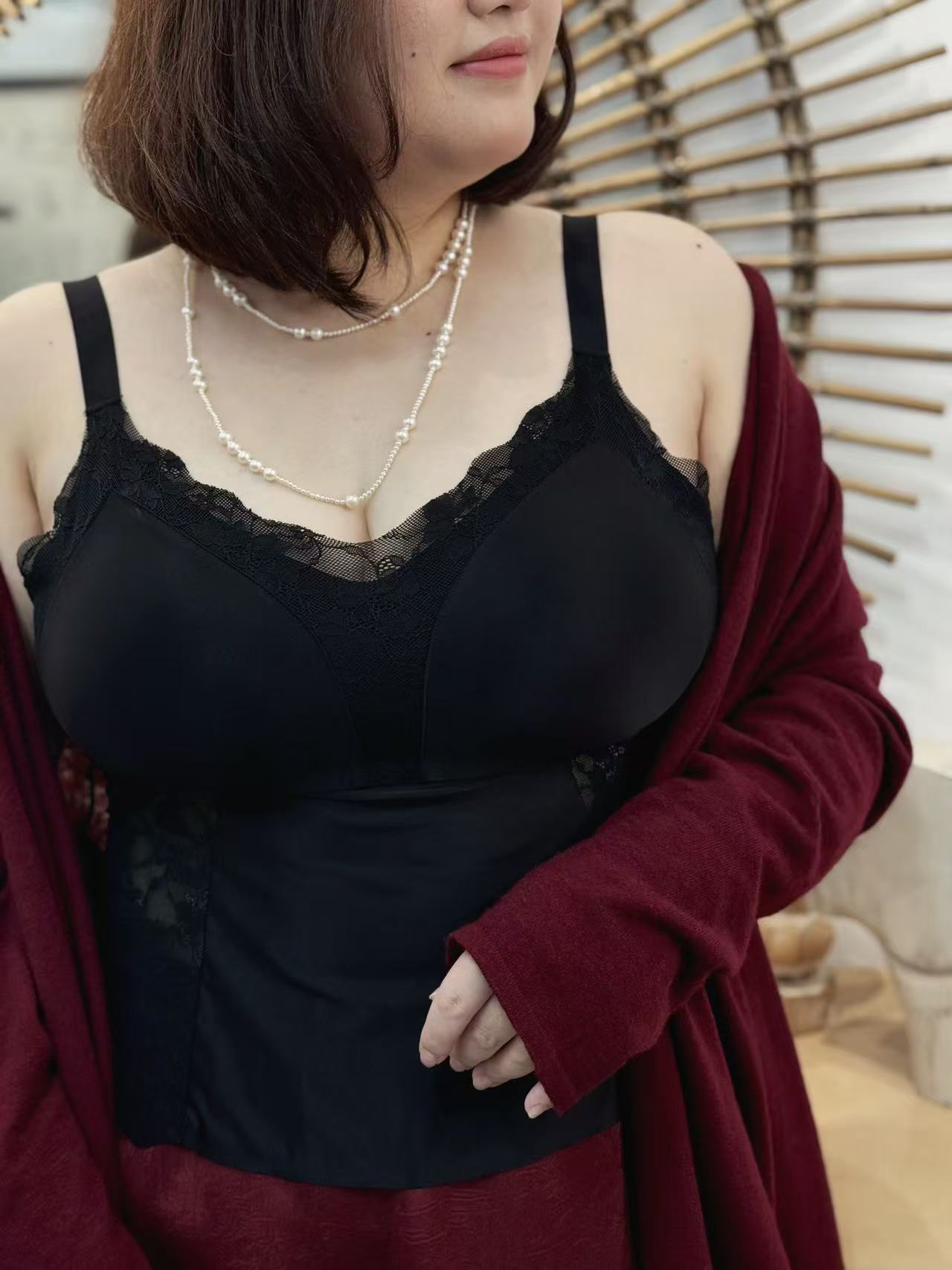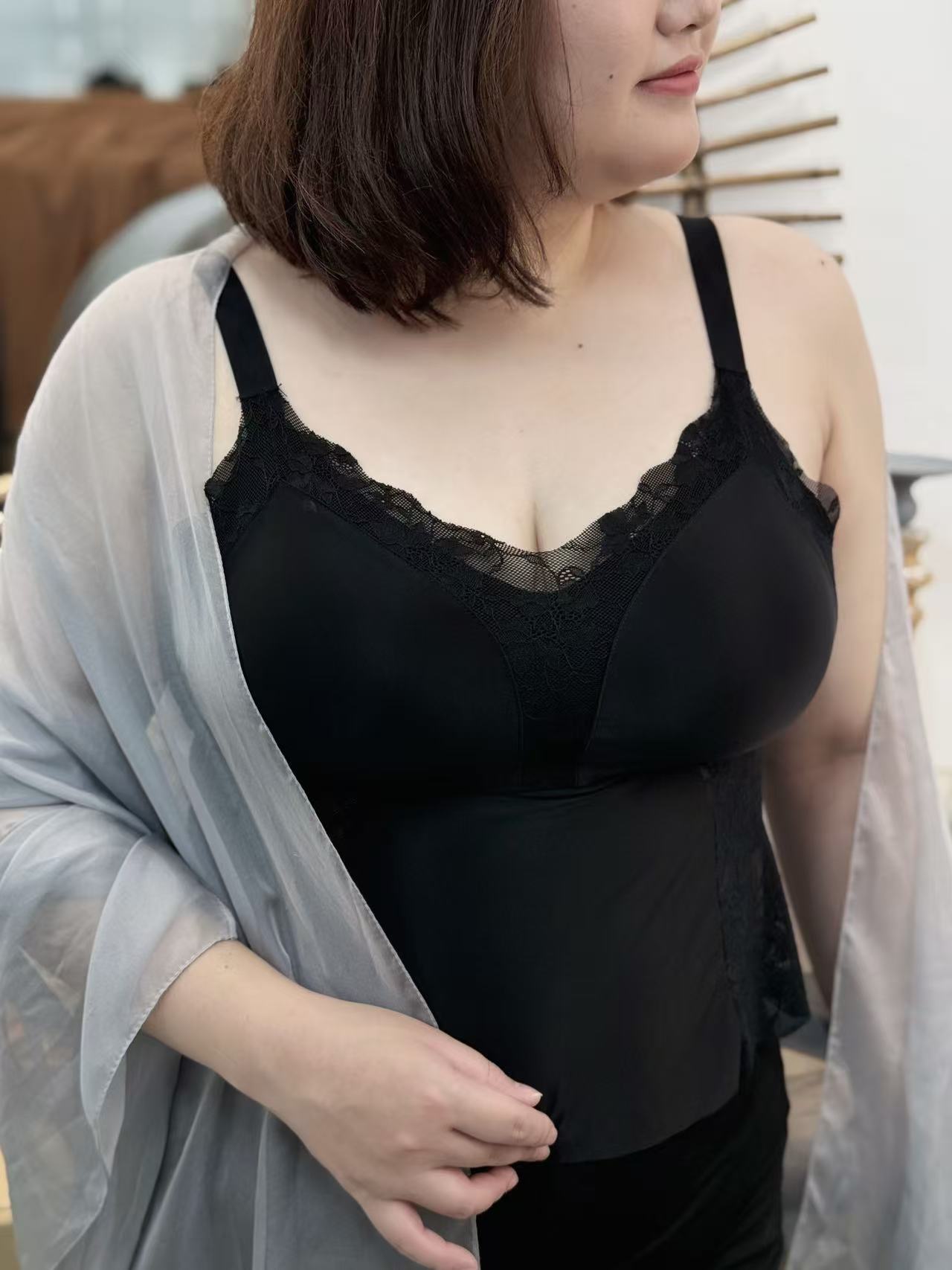 一周内发货!💓【桑蚕丝 蕾丝美背】薄胸垫,可拆卸!不溜肩。大码定制款~免穿文胸!大码吊带背心!黑白两色,可当内衣,可当美背搭配打底穿