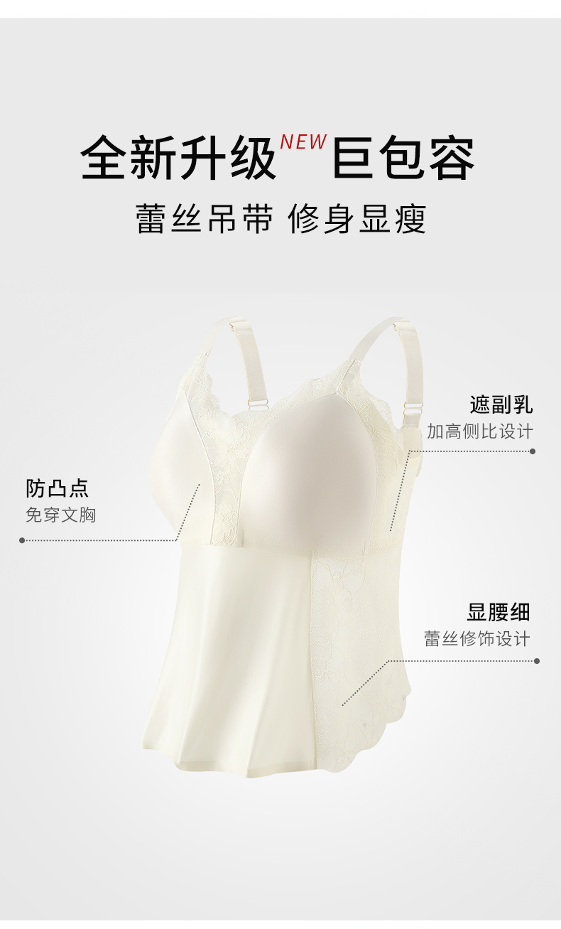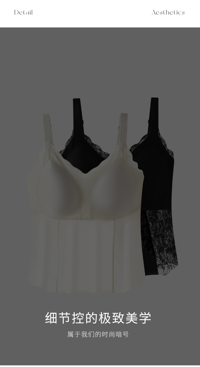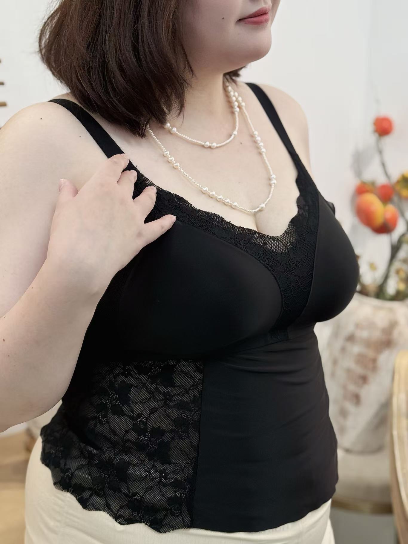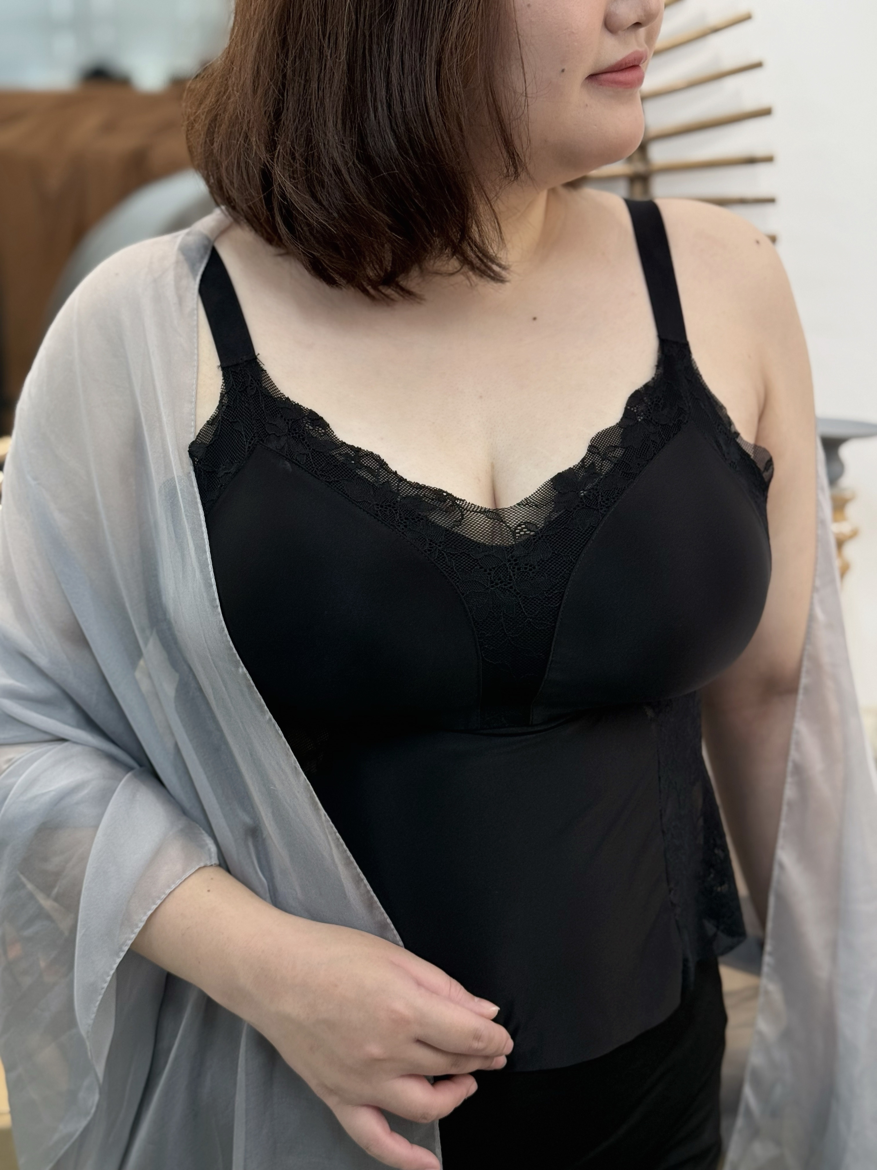 一周内发货!💓【桑蚕丝 蕾丝美背】薄胸垫,可拆卸!不溜肩。大码定制款~免穿文胸!大码吊带背心!黑白两色,可当内衣,可当美背搭配打底穿