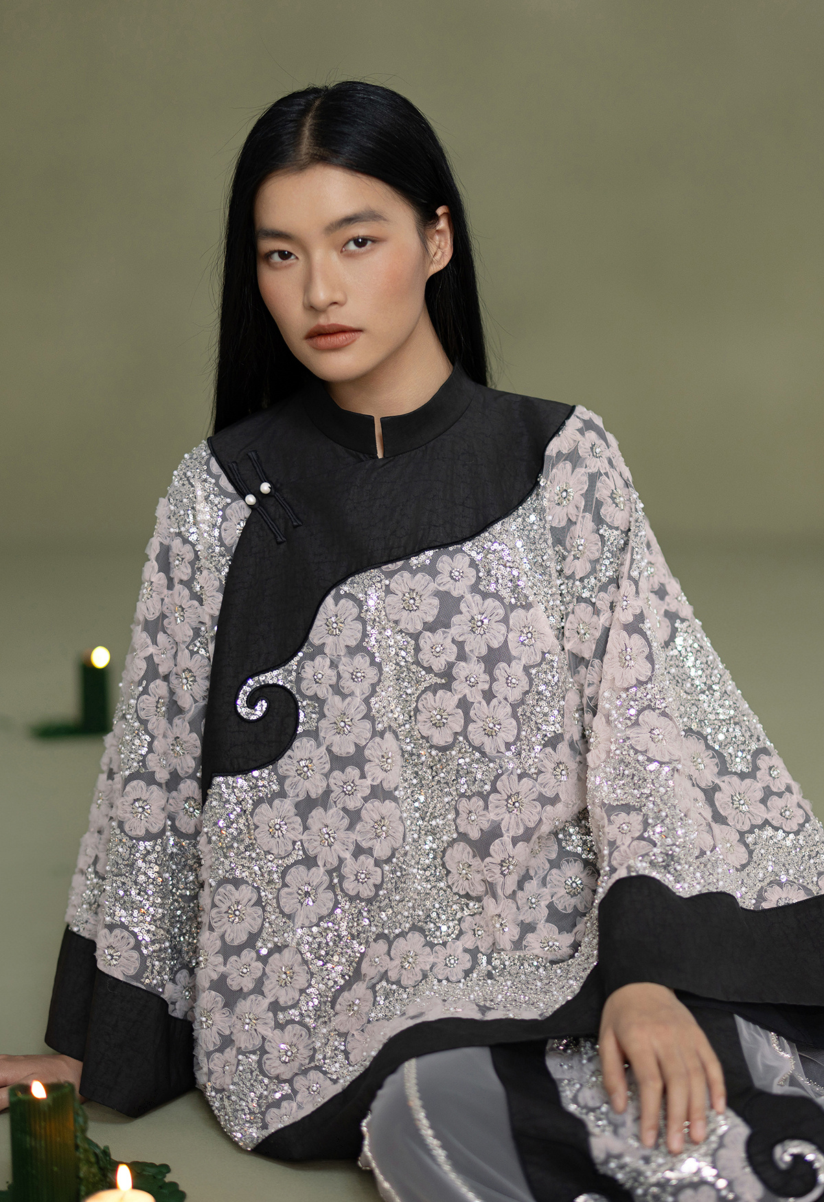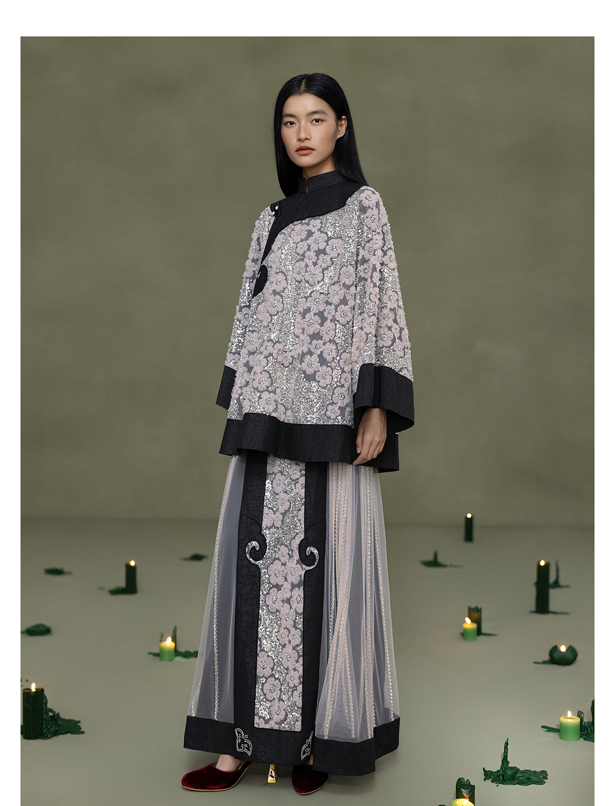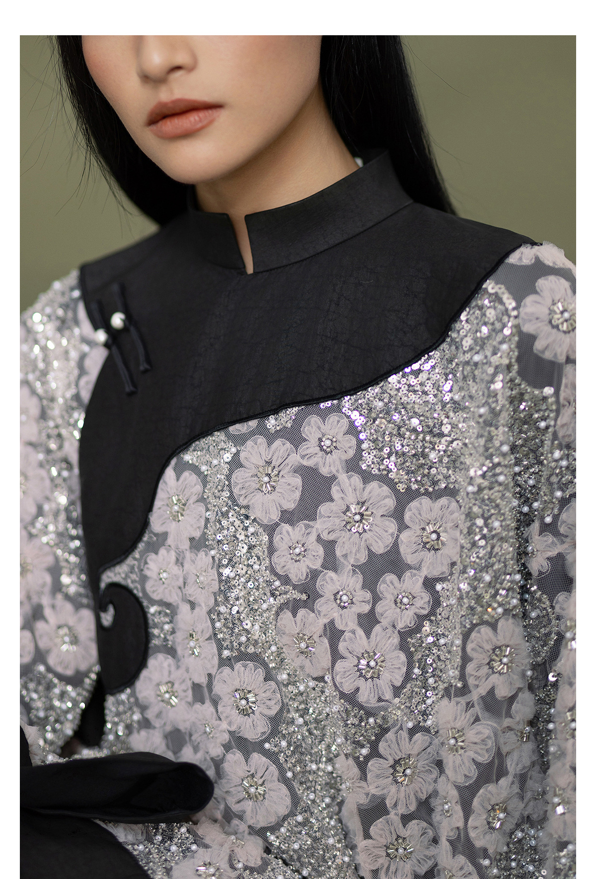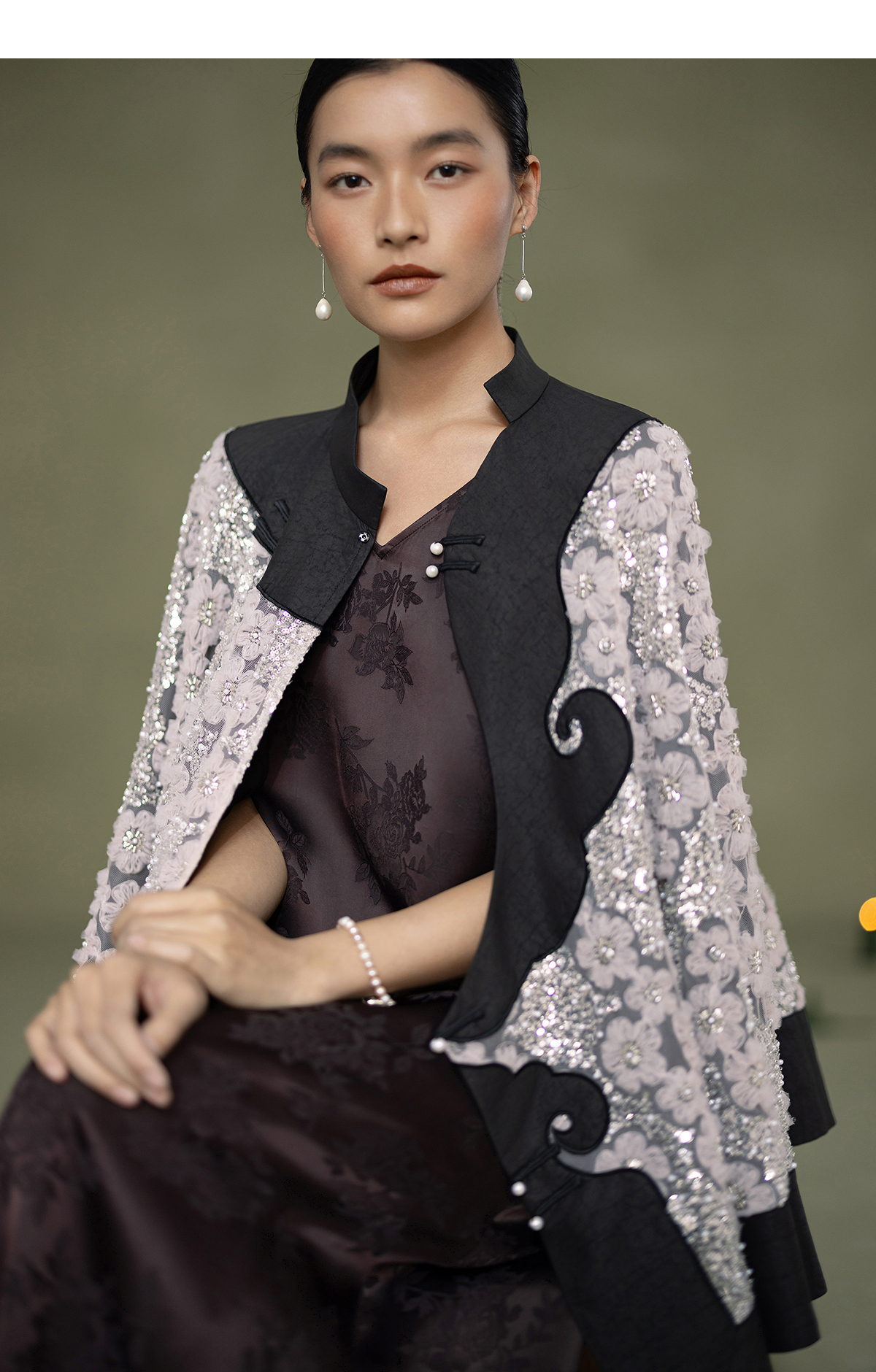 【林栖设计小店】法式刺绣|花朵珠片拼香云纱2026早春新款改良氅衣1961099