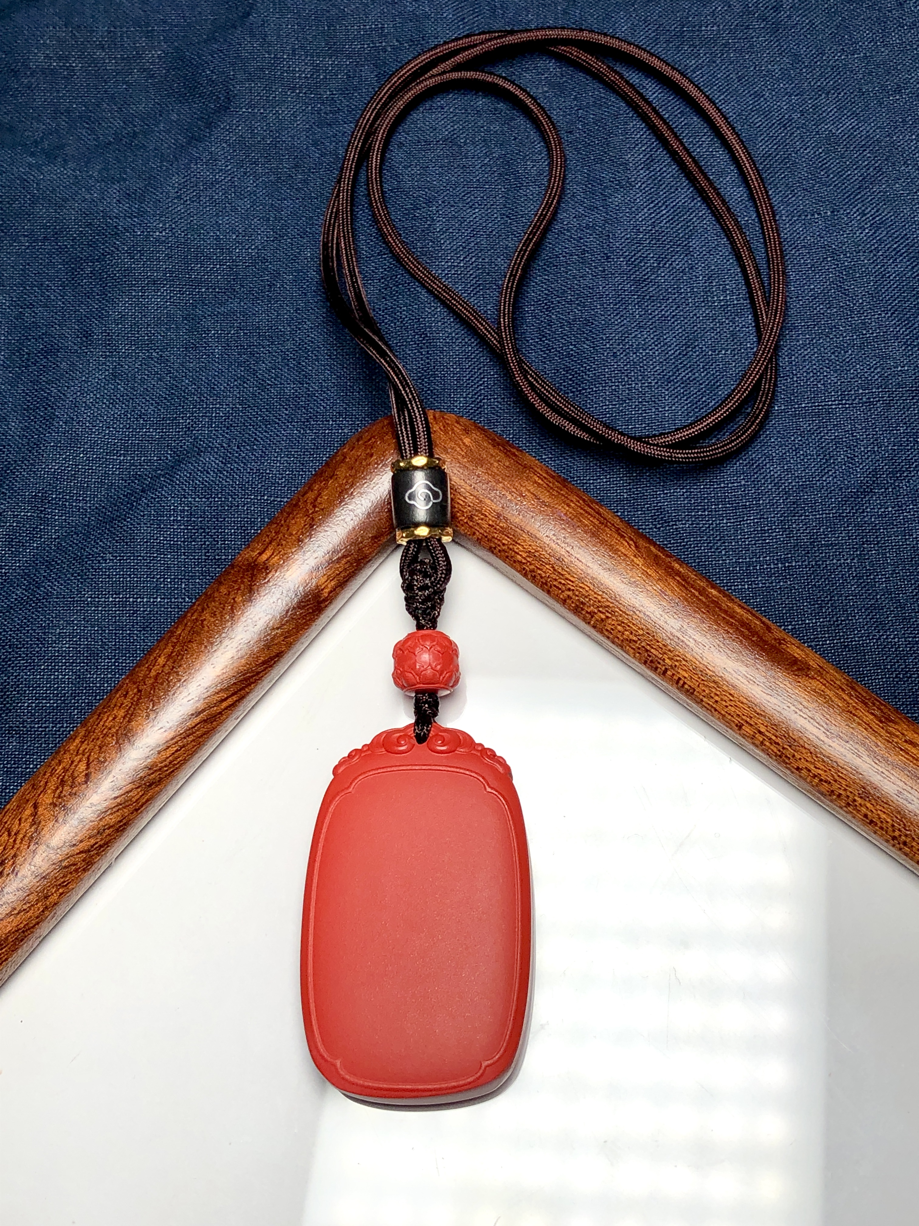 关于朱砂工艺:店里所有朱砂均为天然朱砂粉、朱砂晶体颗粒聚合而成。因朱砂产品不属于宝石级别,受人工成本、天然材质、制作工艺的影响,达不到玉器的精细程度,部分会带有天然原石里的小黑点、气泡孔,介意者慎拍~