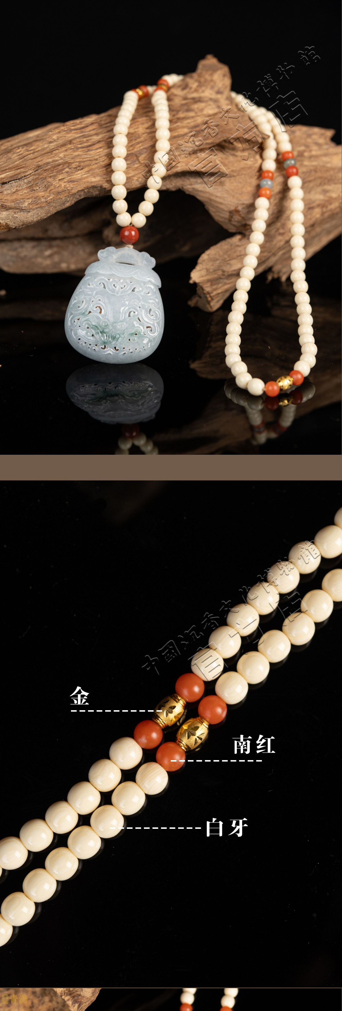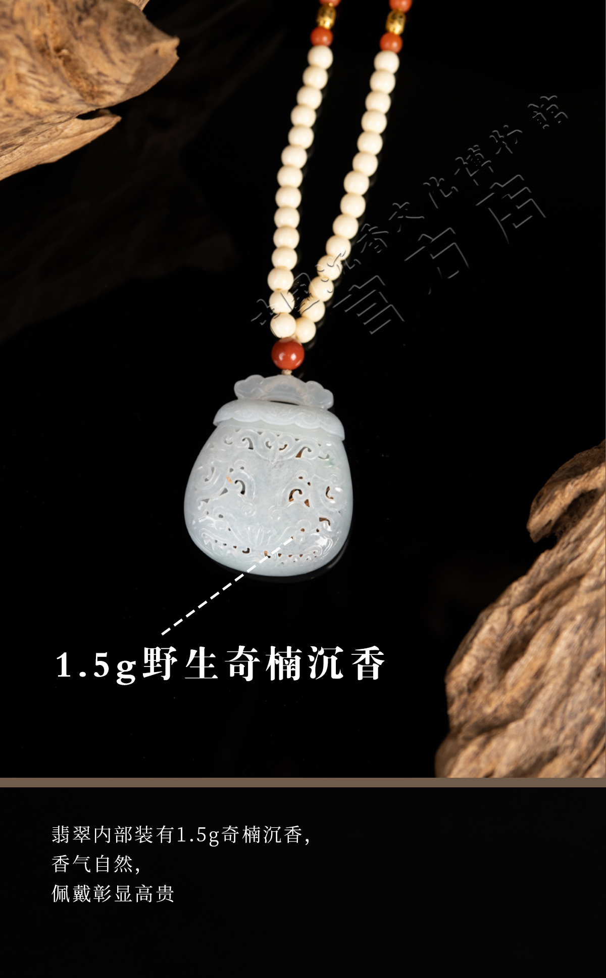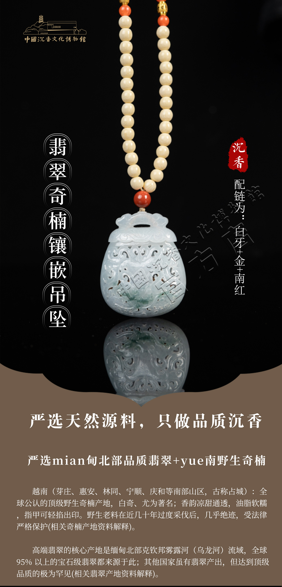 野生奇楠翡翠镶嵌吊坠(牙)