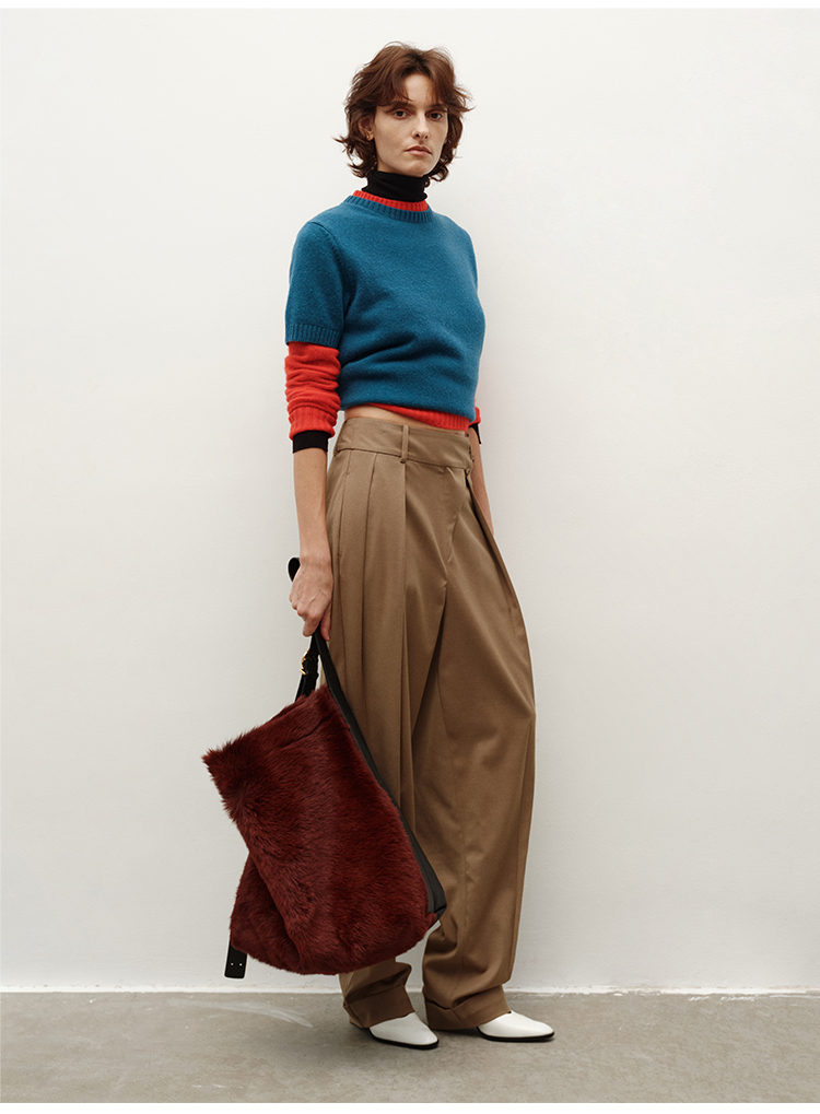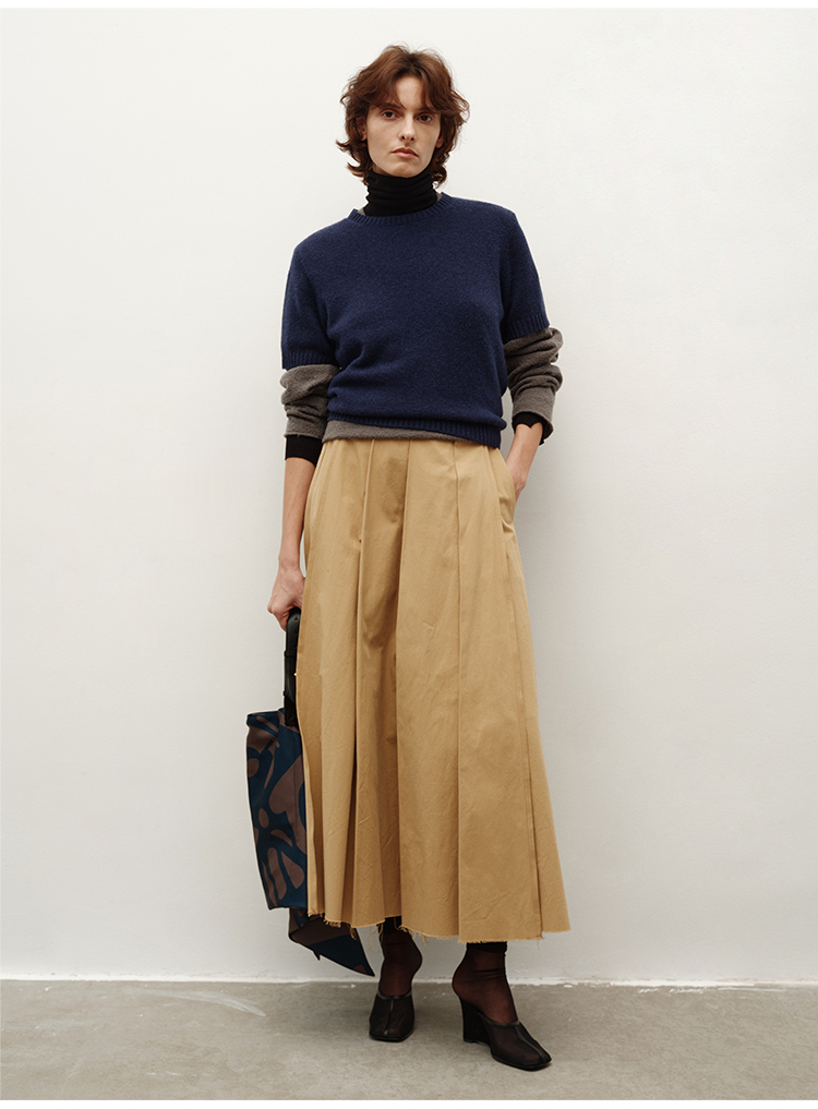 HIDEMI夜灰色简约不对称设计感一粒扣阔腿裤
