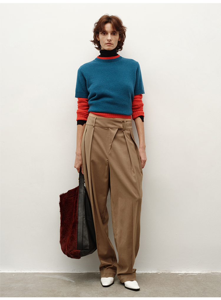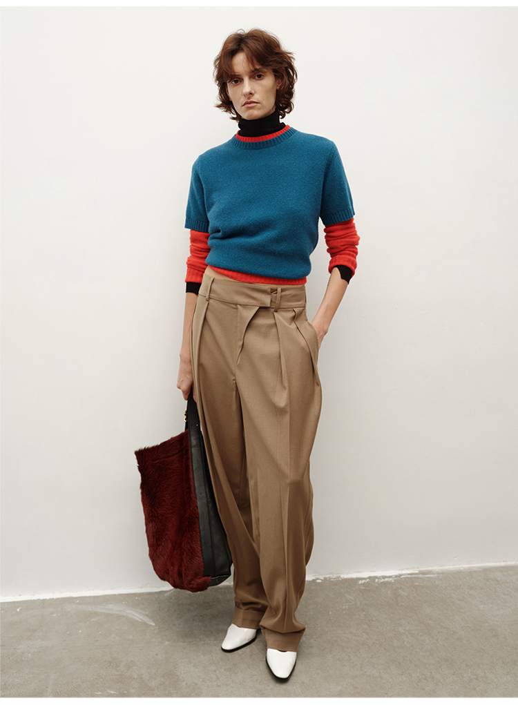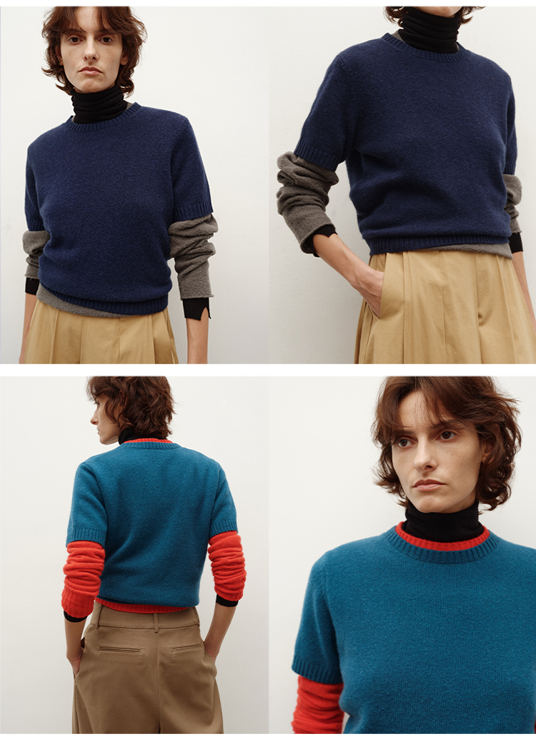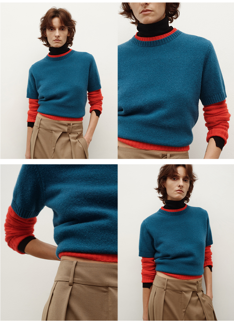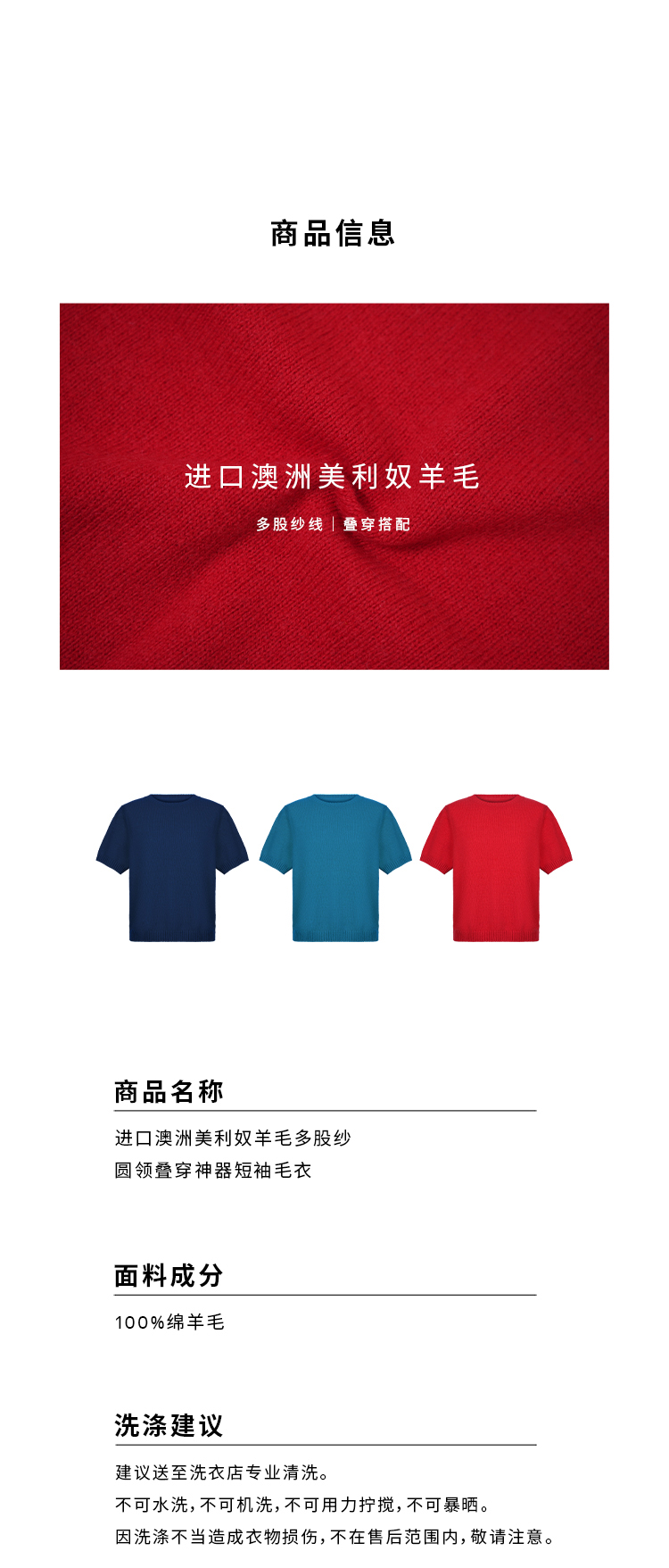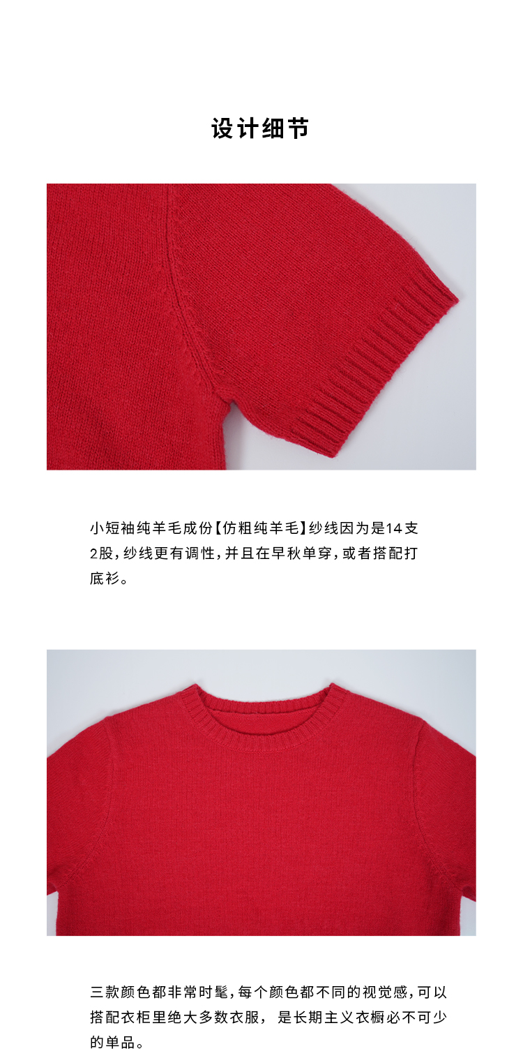 HIDEMI【董生活同款】进口澳洲美利奴羊毛多股纱圆领叠穿神器短袖毛衣